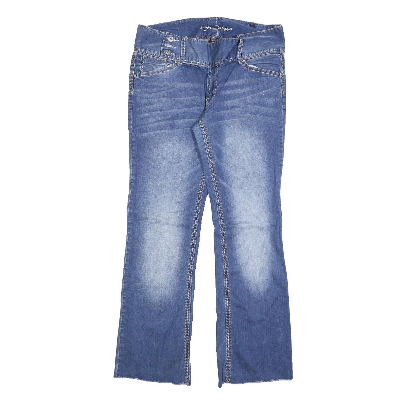 ARYIA Womens Blue Regular Bootcut Denim Light W32 L30 Detailed Stitching Zip