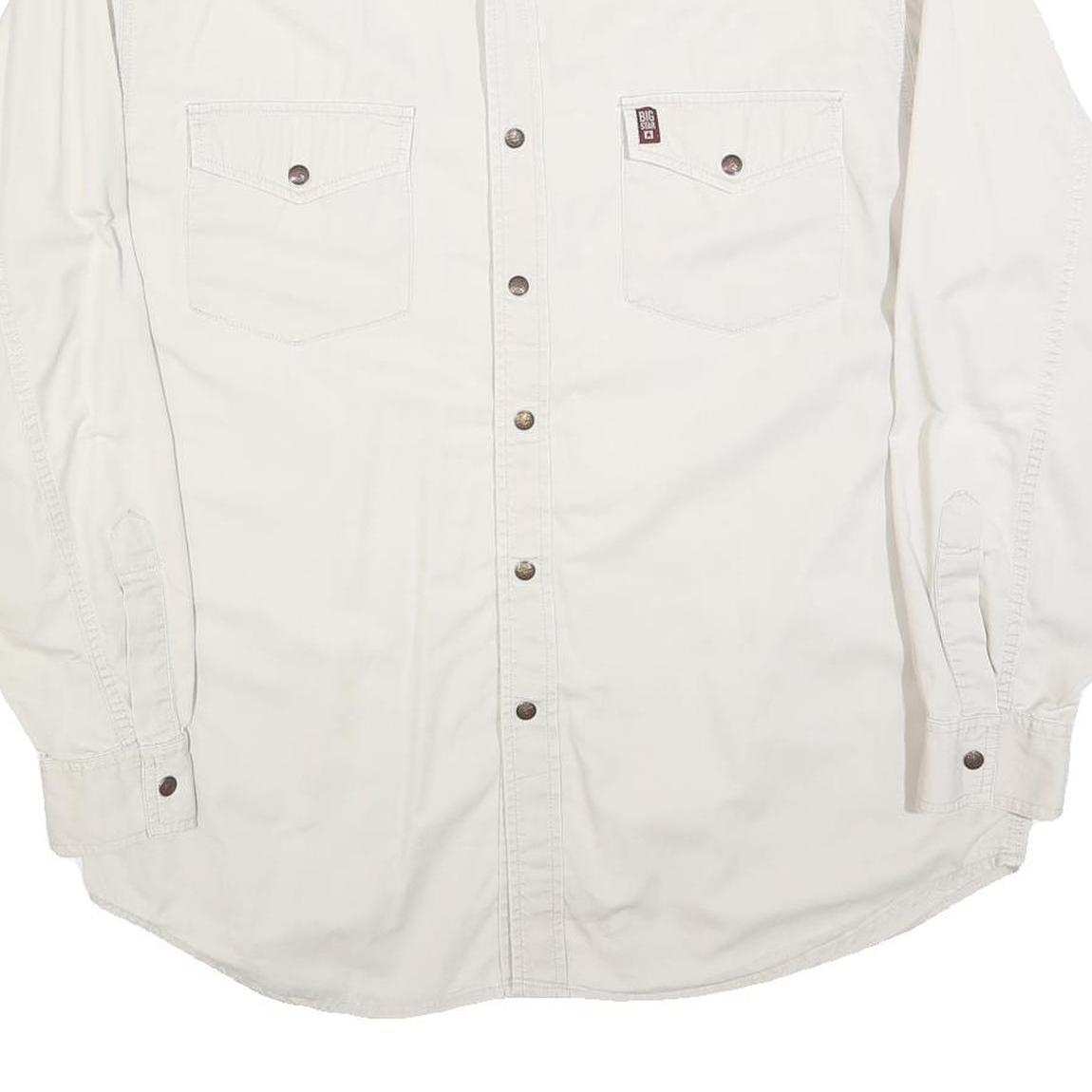 BIG STAR Mens White Shirt M Cotton Blend Button Long Sleeve Casual Pocket