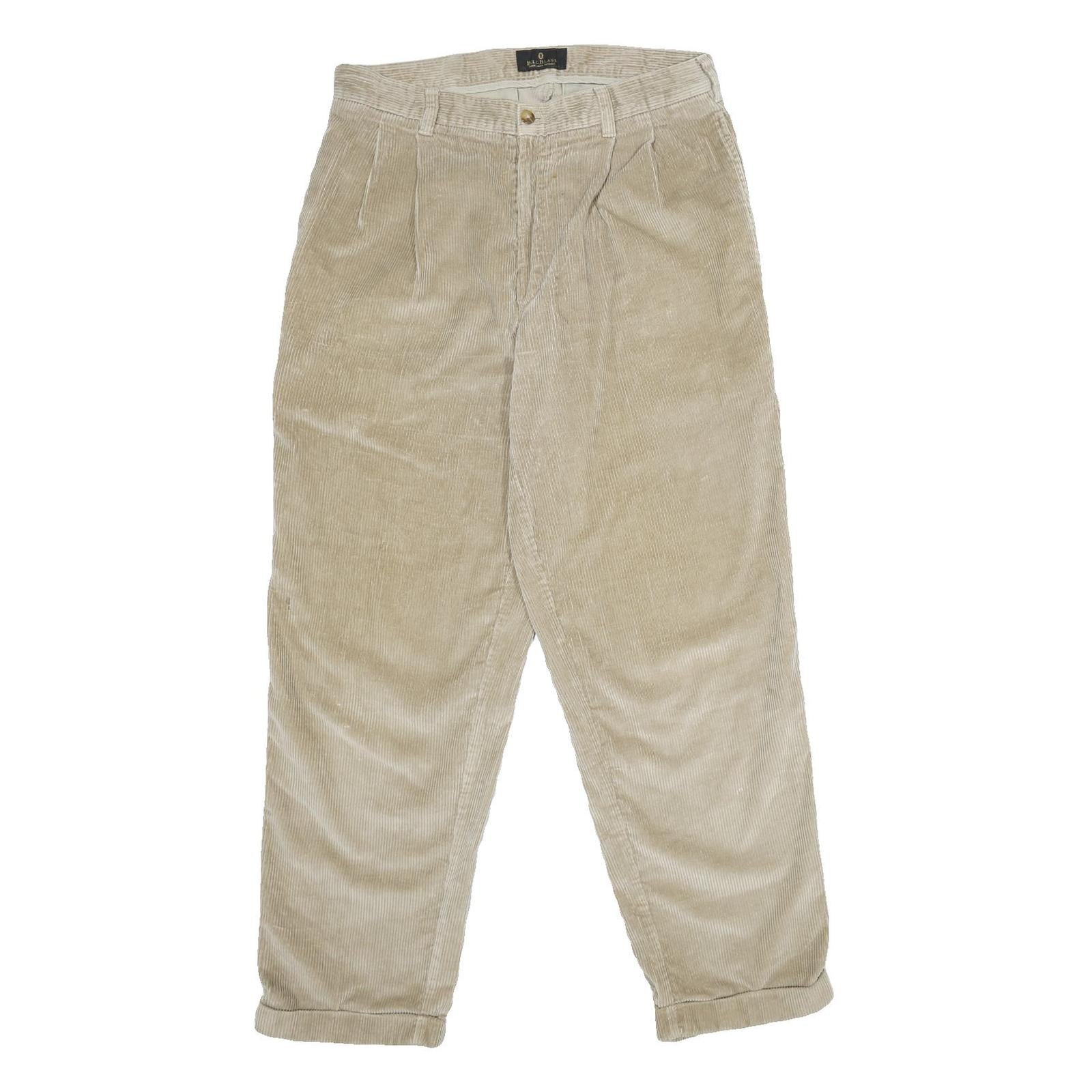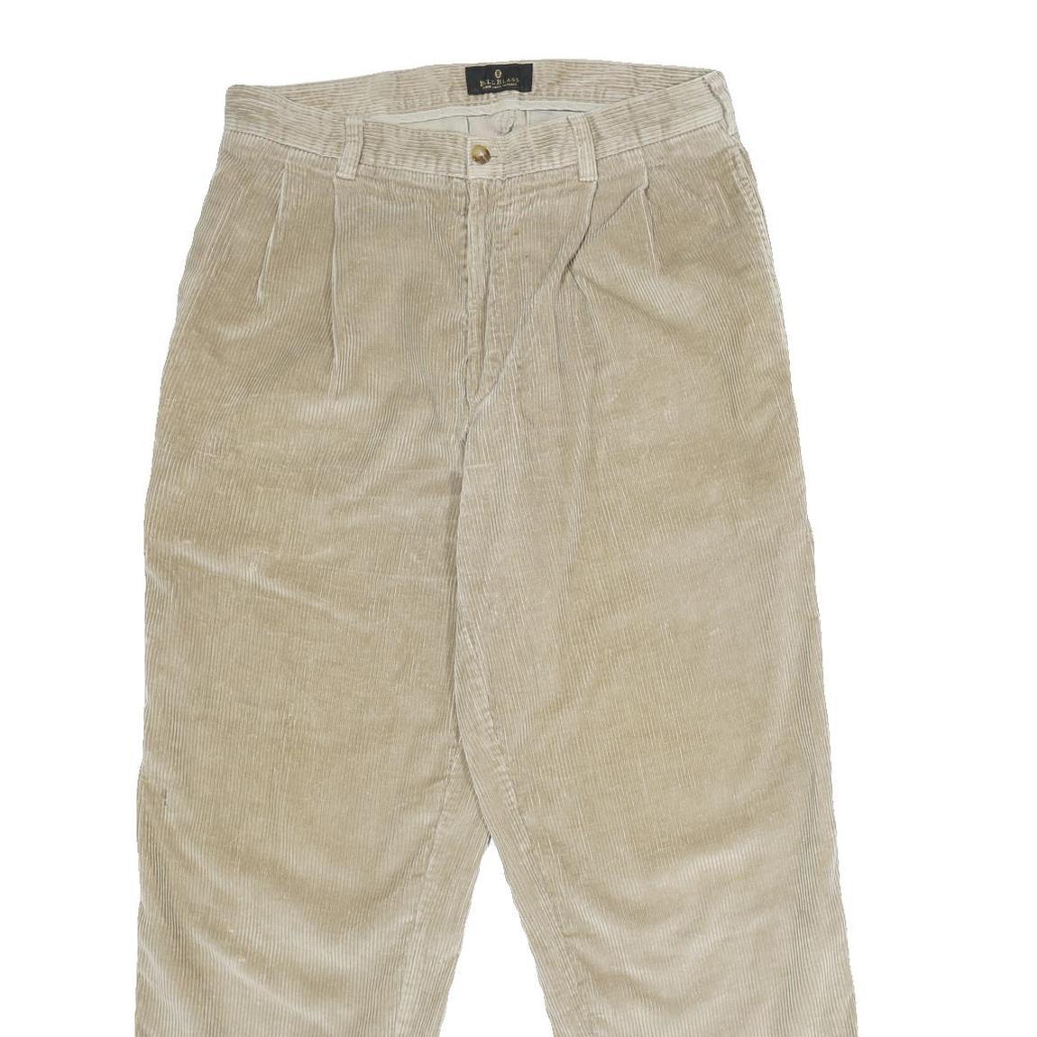 These Bill Blass trousers are made from soft cotton fabric in a beige colour, featuring a fine corduroy texture that adds a classic vintage touch. The trousers have a traditional straight leg fit with a classic style suitable for everyday wear.