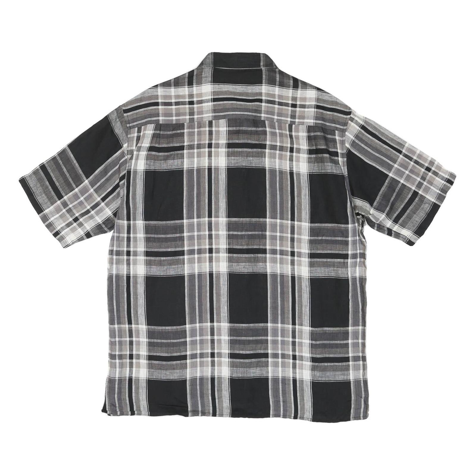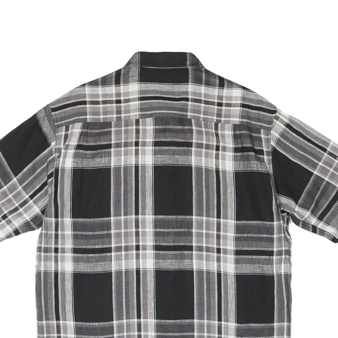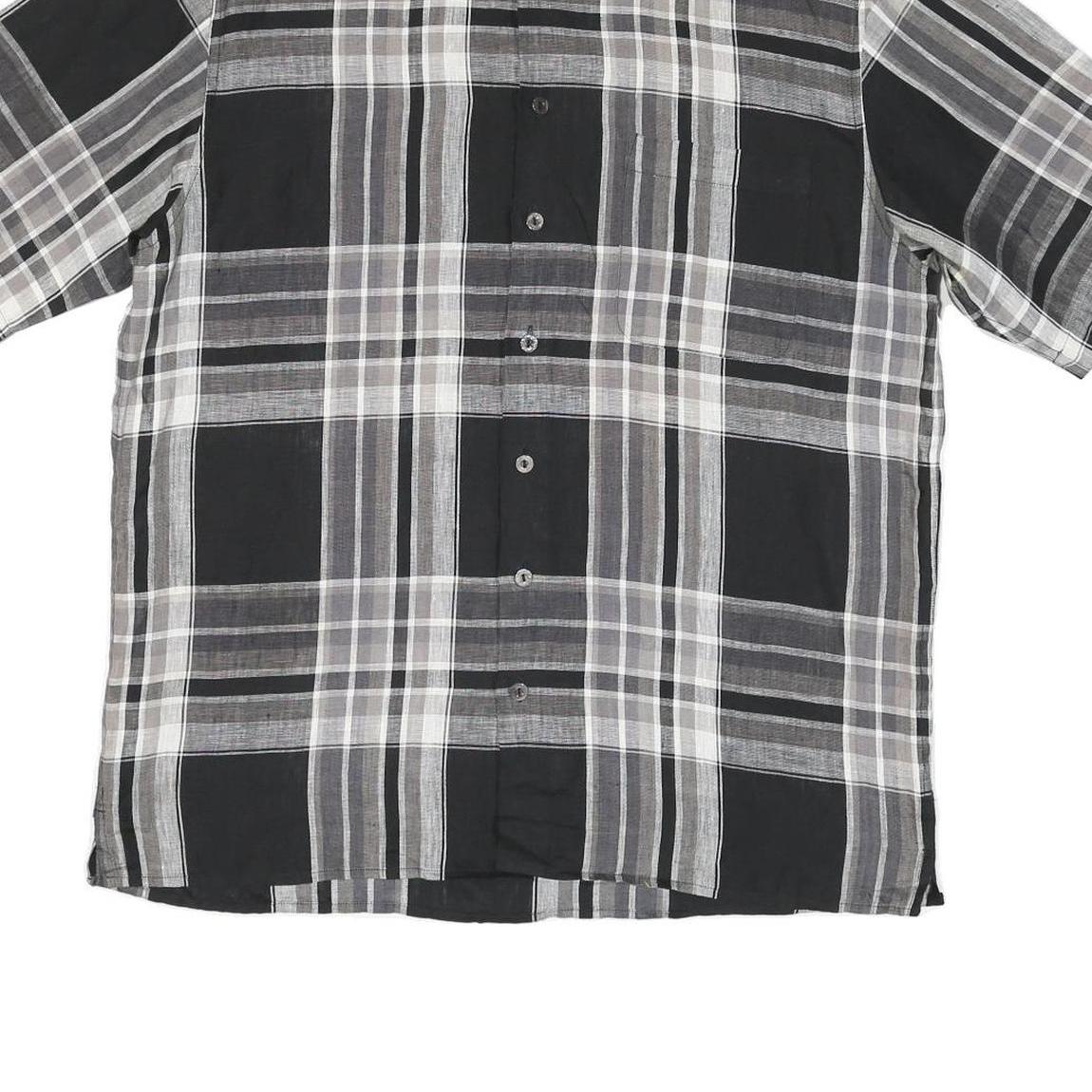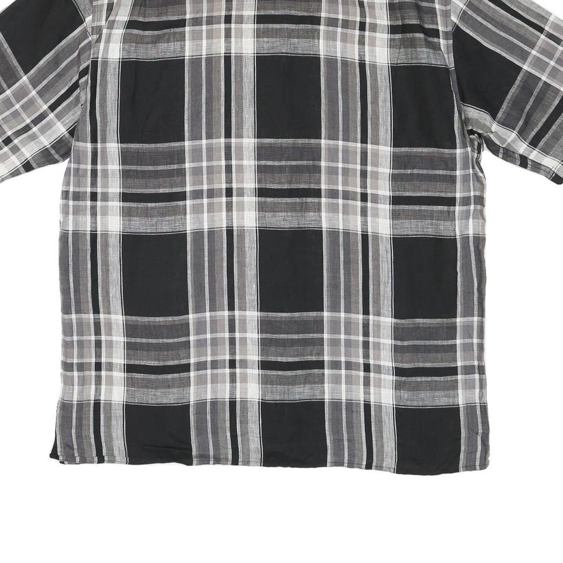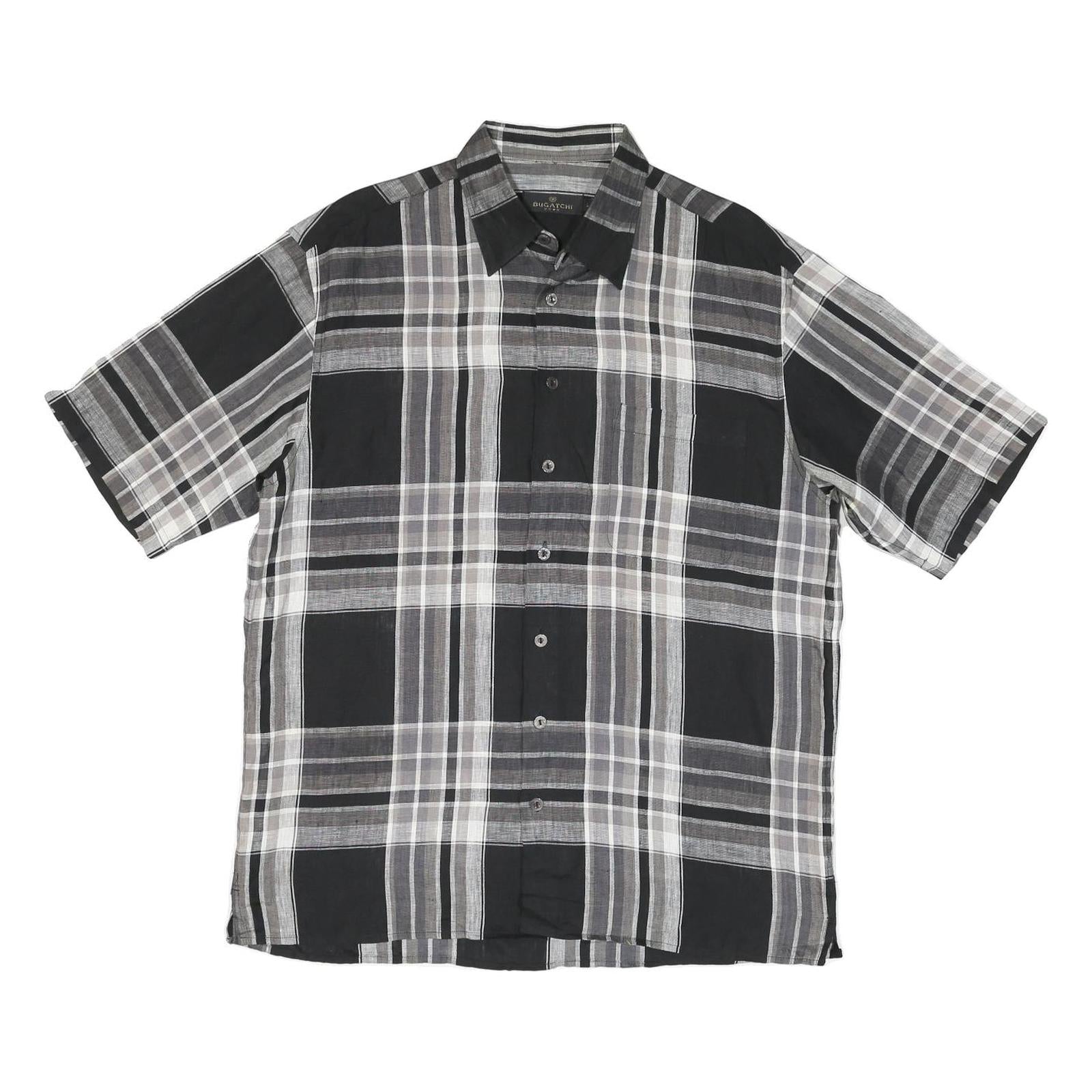 BUGATCHI Mens Black & Grey Check Shirt L Cotton Blend Casual Short Sleeve Button
