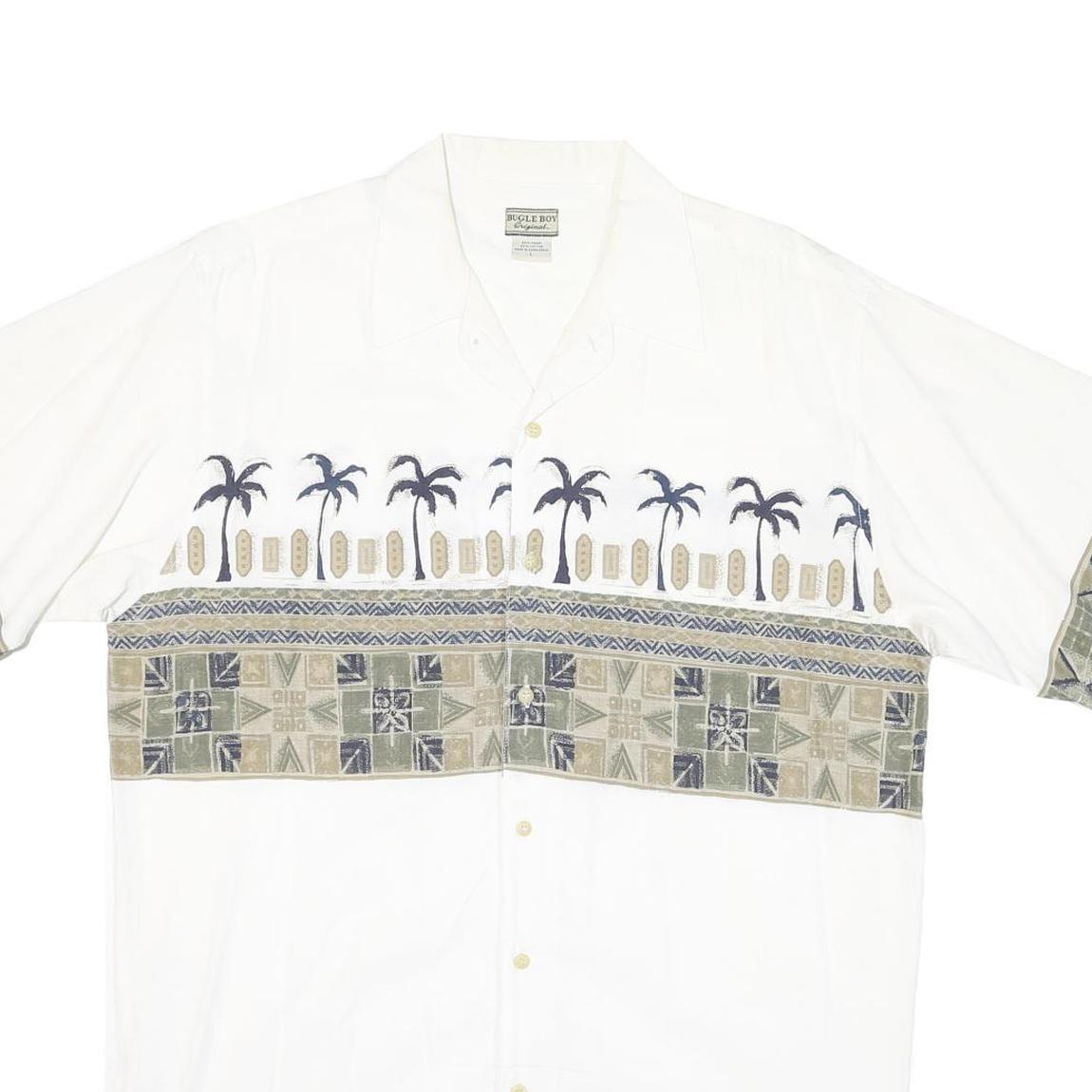 BUGLE BOY Mens White Green Tropical Print Cotton Blend Shirt L Casual Summer