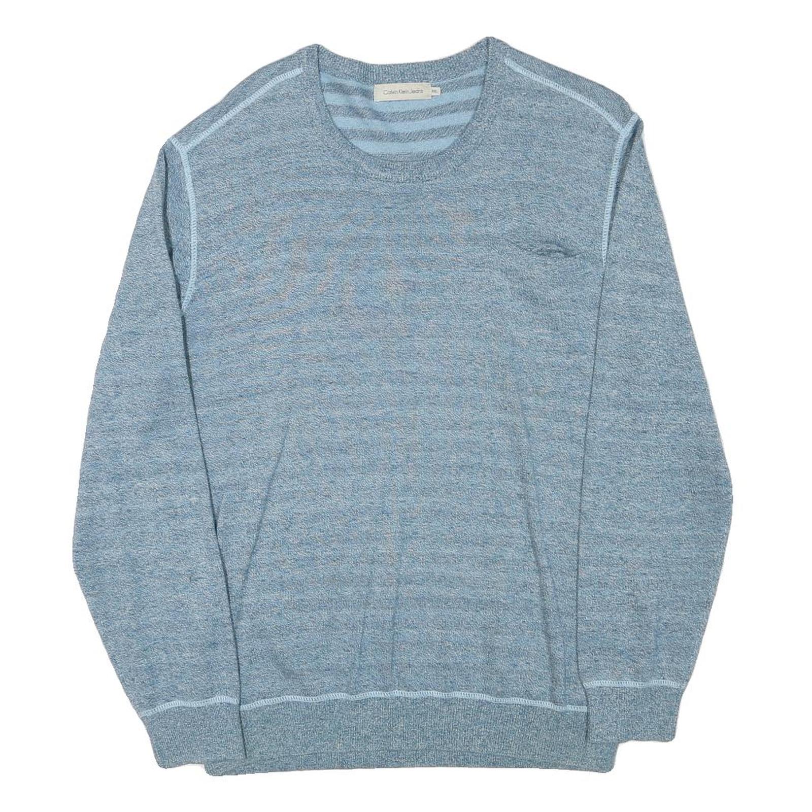 CALVIN KLEIN JEANS Mens Blue Plain Jumper Crew Neck Basic Knit 2XL Cotton Blend