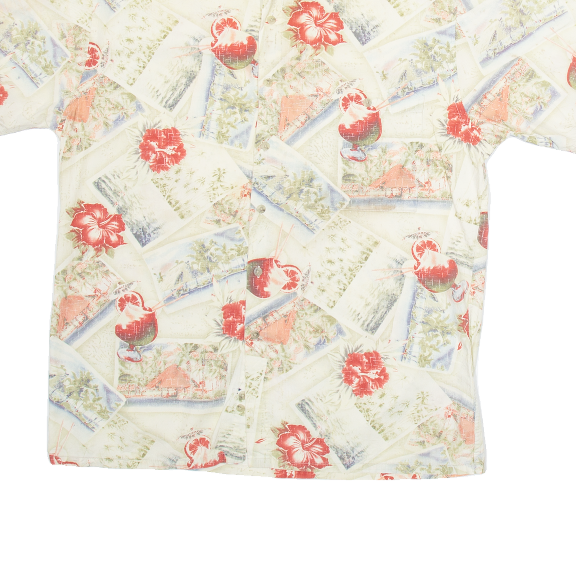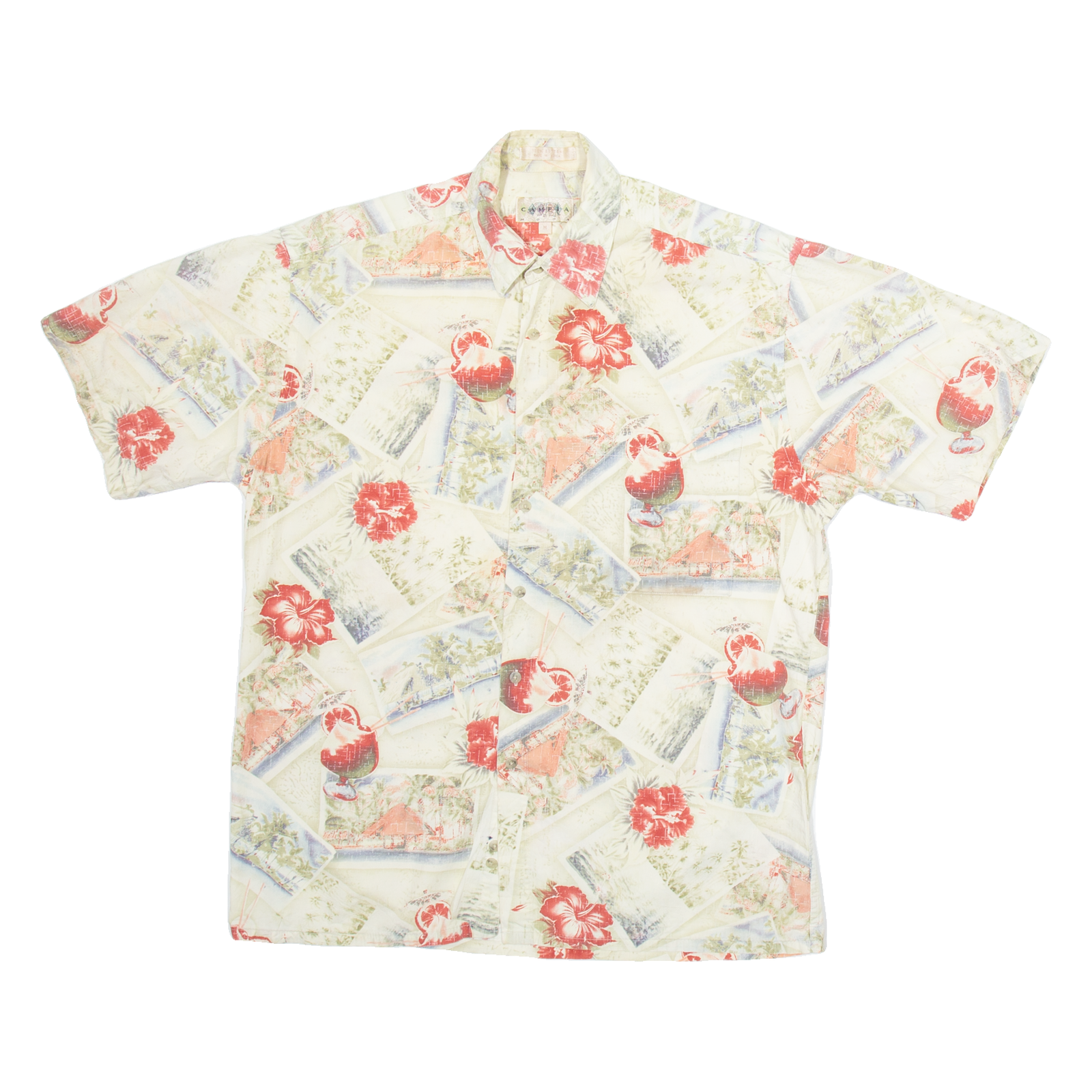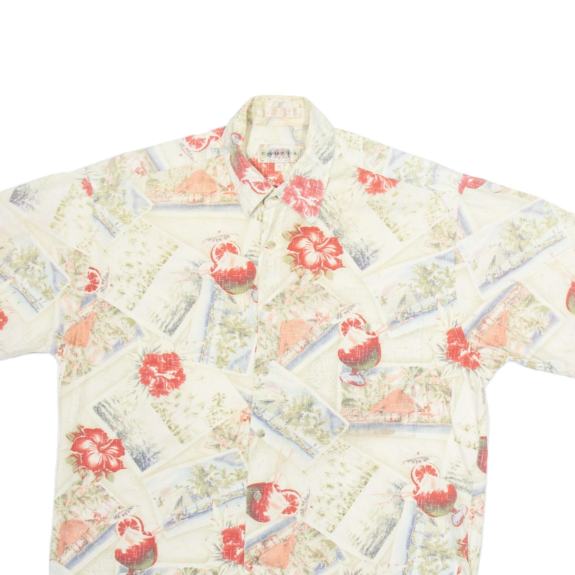 CAMPIA Mens Hawaiian Shirt Beige Floral M