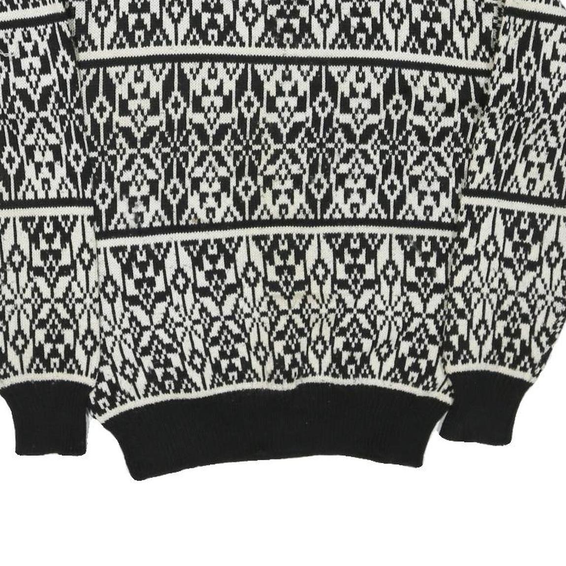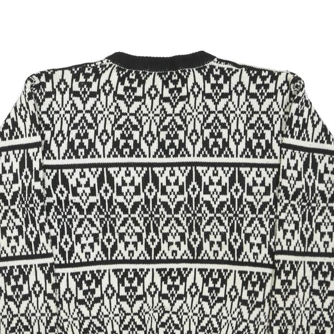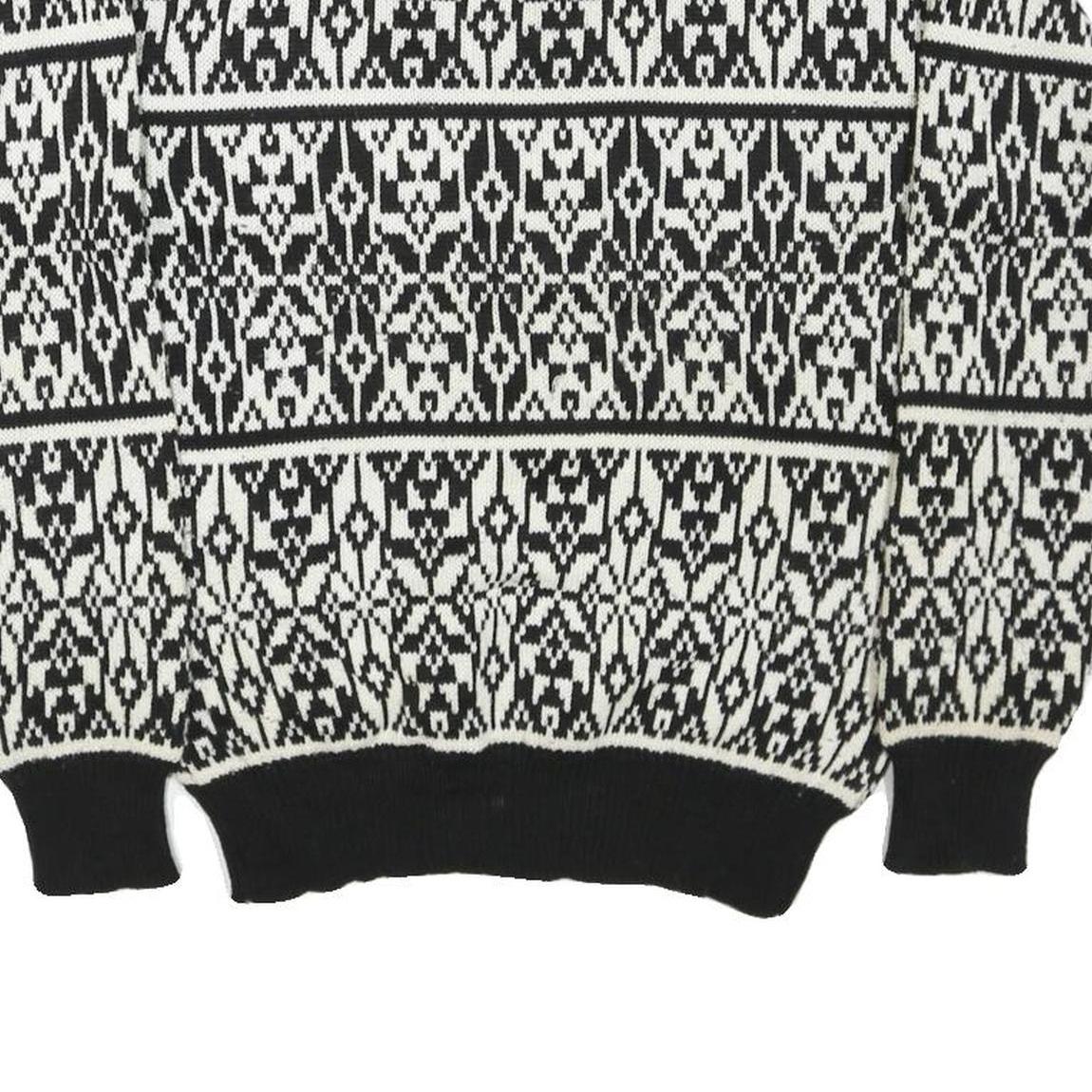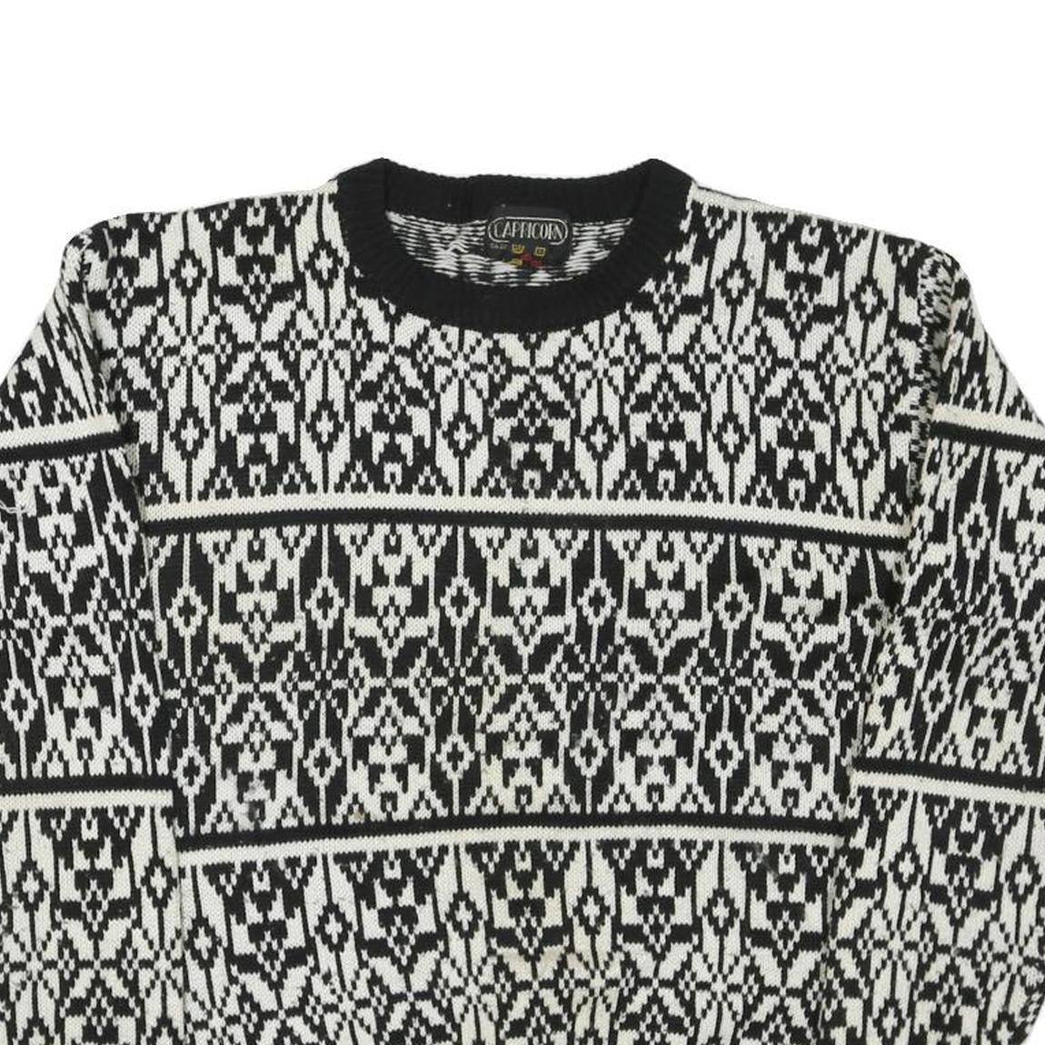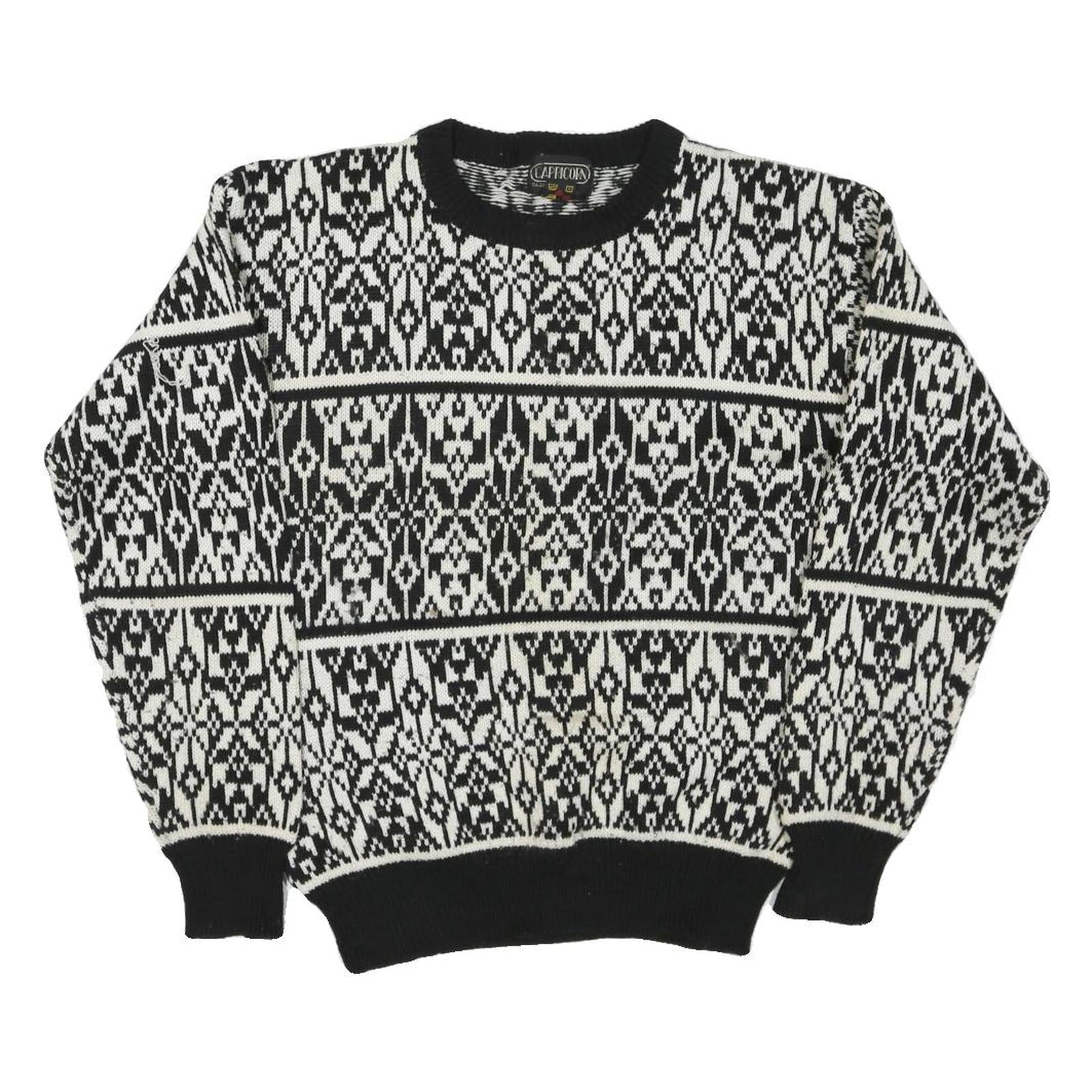 CAPRICORN Womens Black & White Patterned Jumper Round Neck Basic Knit S Acrylic
