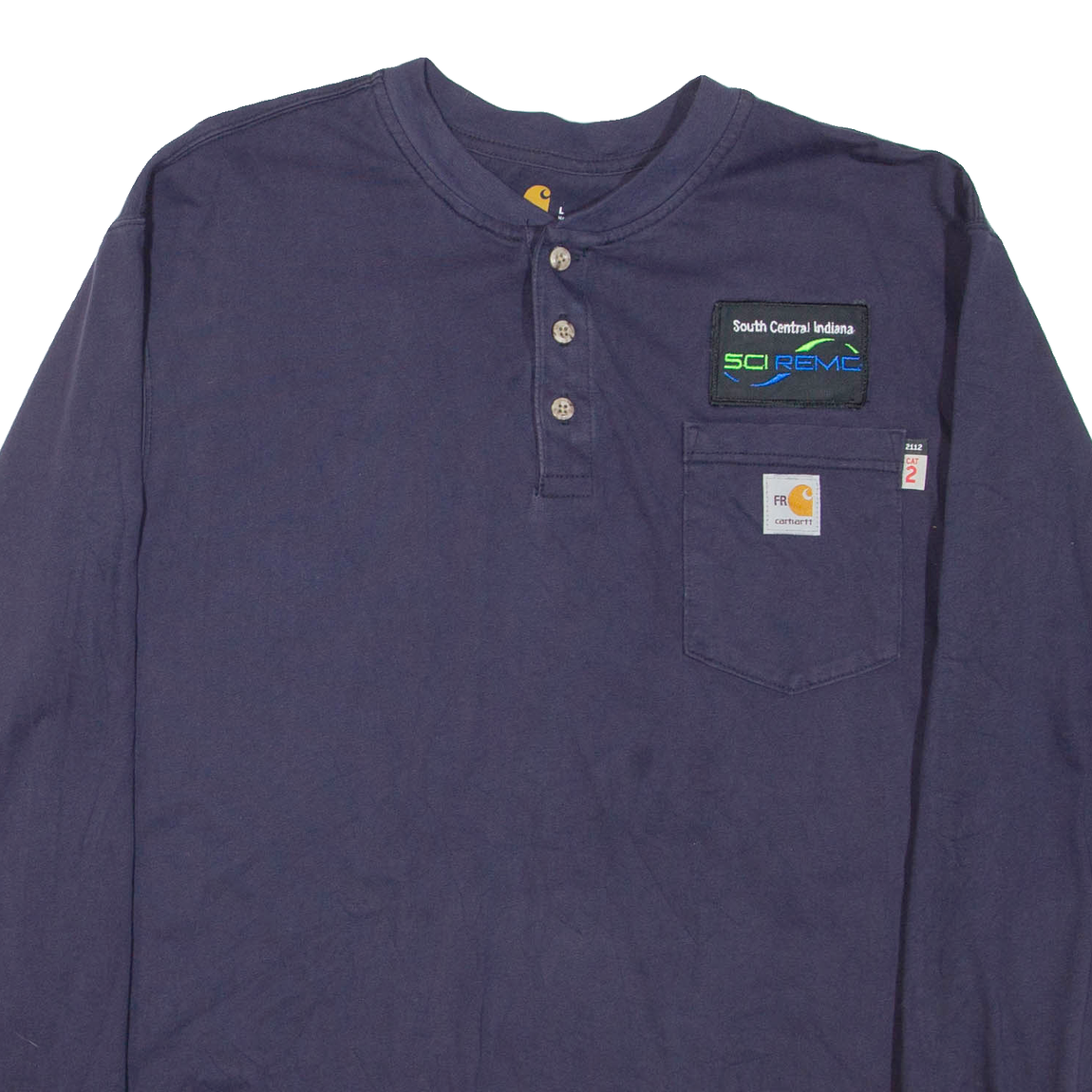 CARHARTT Mens T-Shirt Blue Long Sleeve Button Neck L