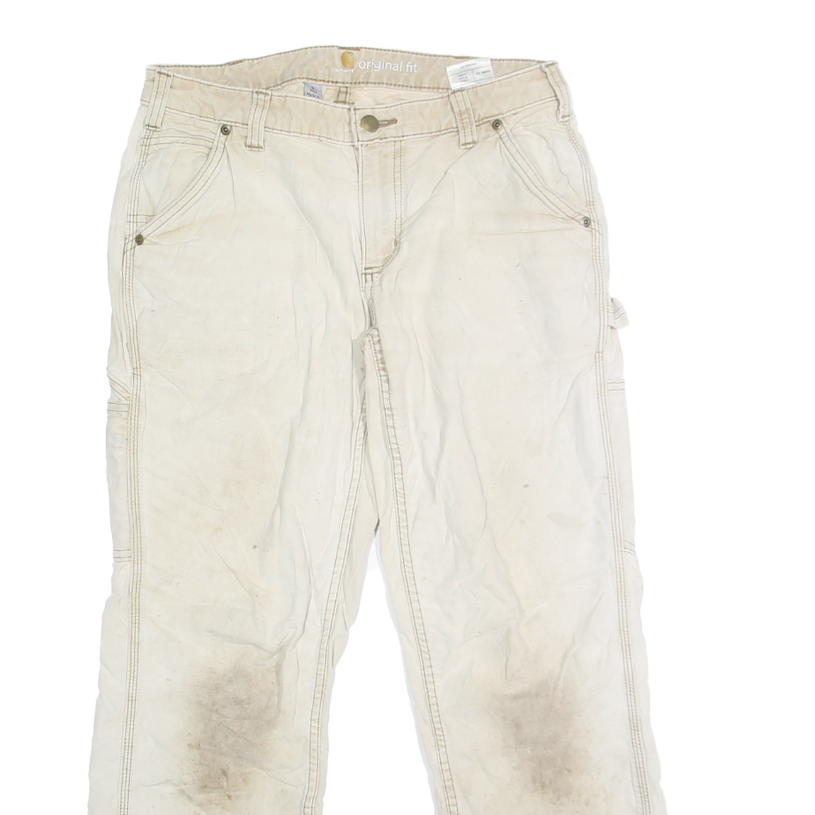 Please note, the trousers have visible signs of wear including dirt marks and light staining on the front, consistent with fair pre-loved condition. Ideal for practical use or casual styling with a workwear edge.