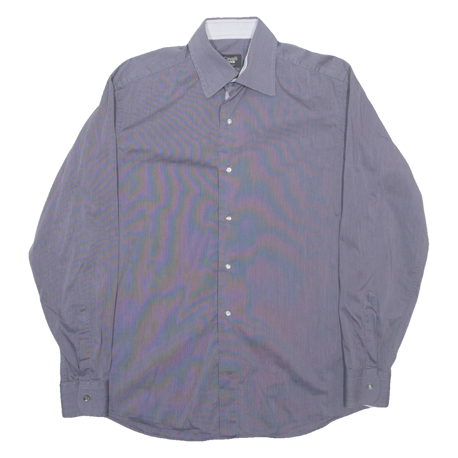 CAVALLI RACE Mens Shirt Grey Striped Long Sleeve L
