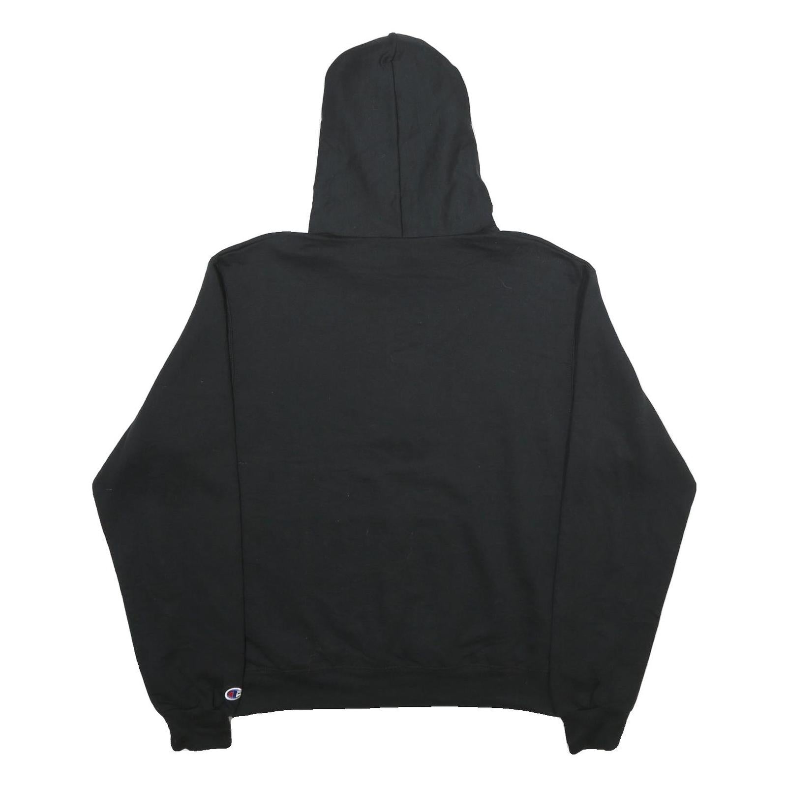 The fabric is soft and robust, typical of Champion's quality sportswear, offering both warmth and breathability. This medium-sized hoodie has long sleeves with ribbed cuffs and a ribbed hem for a secure fit. The Champion logo is subtly embroidered on the sleeve cuff near the waistband, adding an authentic branded touch. The relaxed fit is ideal for casual wear or sporty layering.