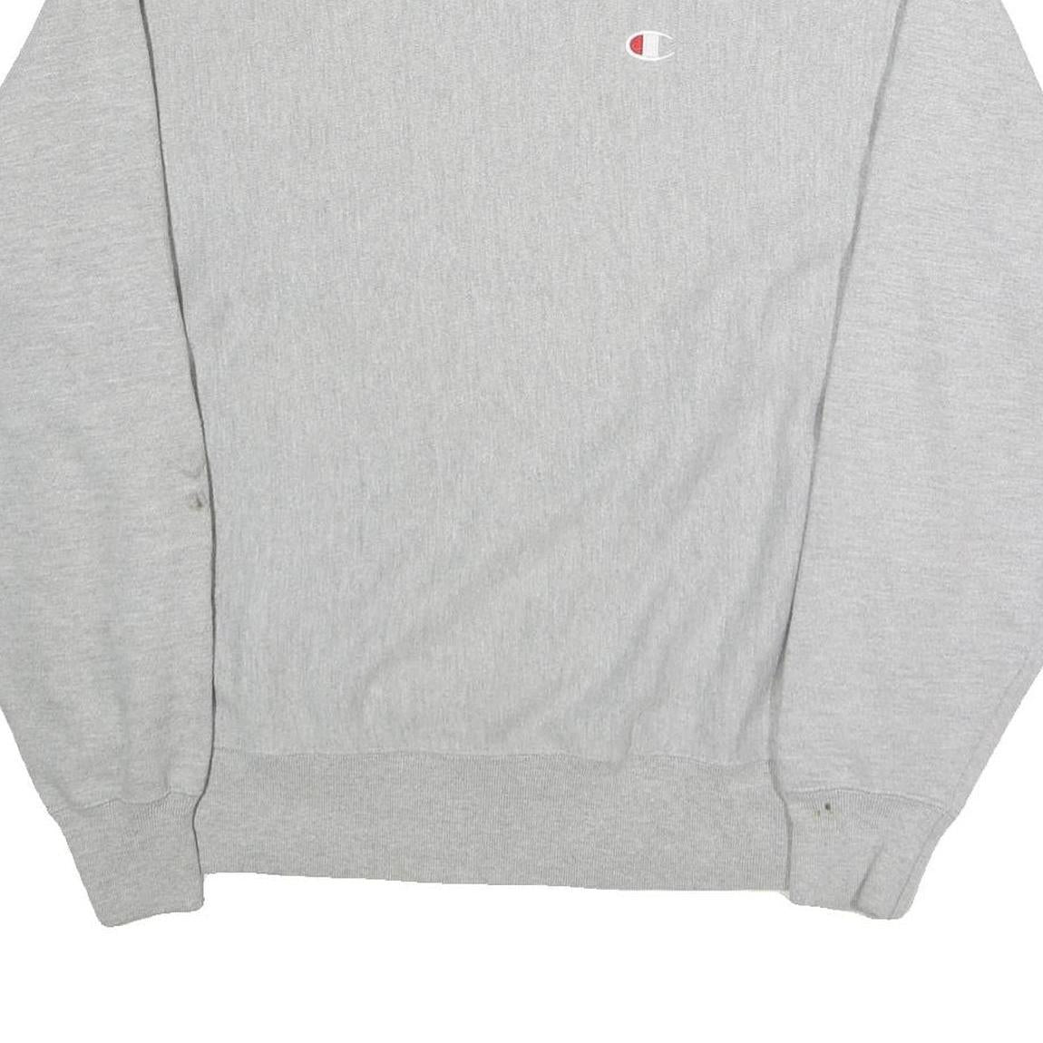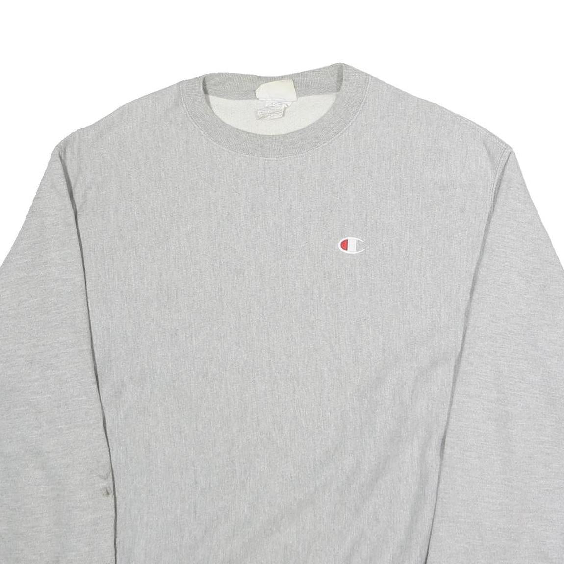 CHAMPION Mens Grey Crew Neck L Sweatshirt Cotton Blend Pullover Logo Embroidered