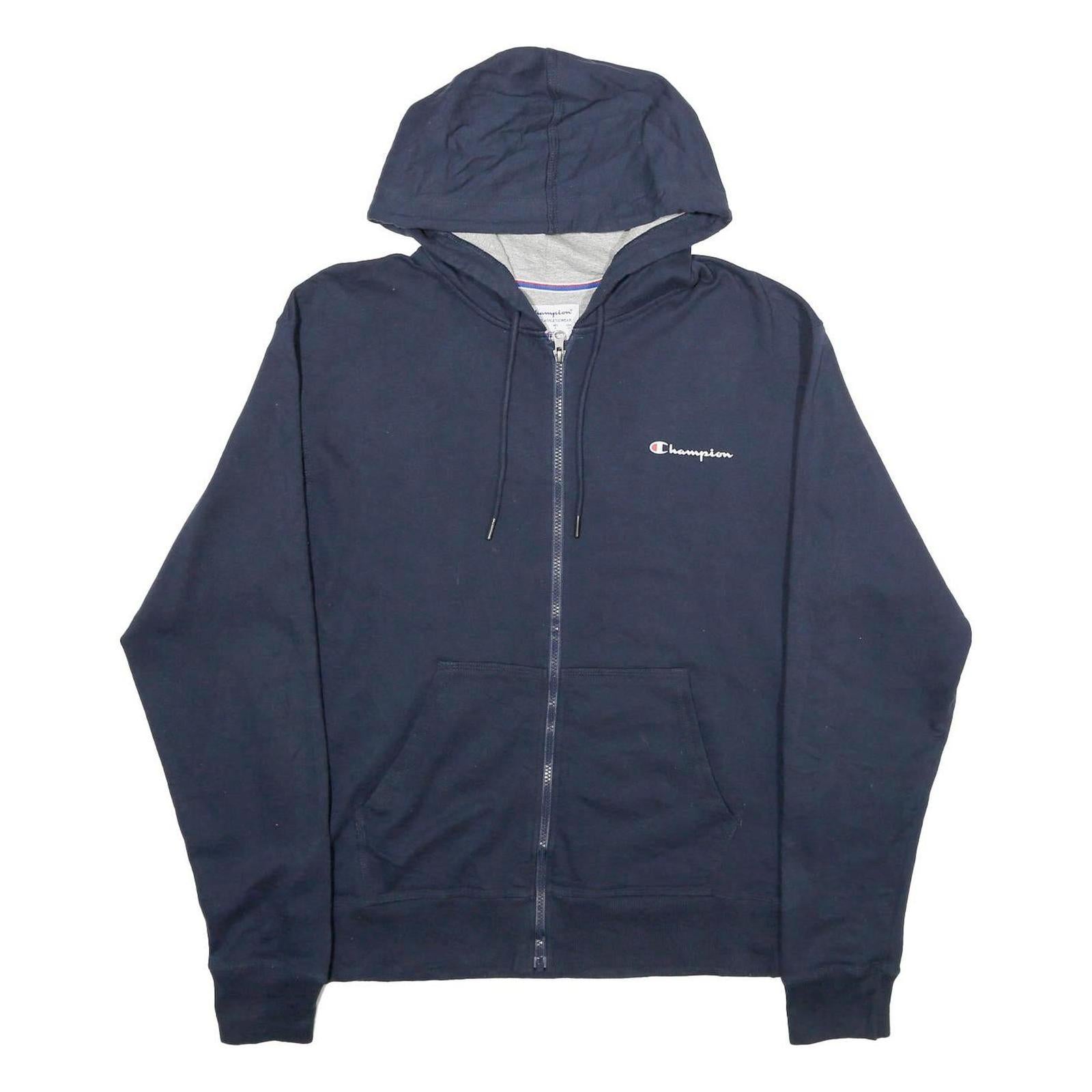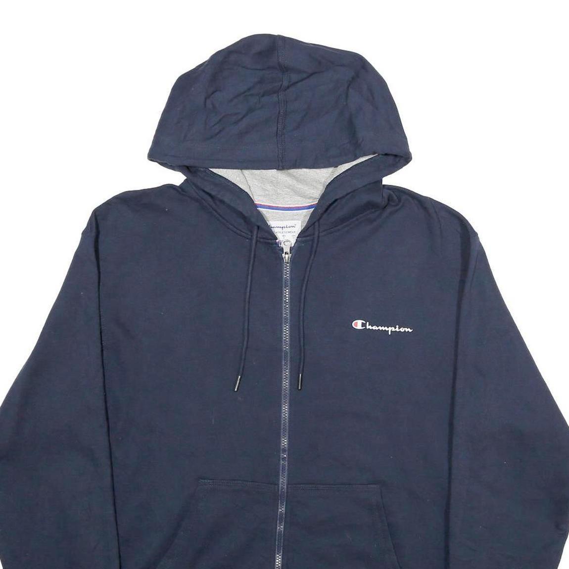CHAMPION Mens Navy Blue Zip Hoodie M Cotton Blend Slim Fit Casual