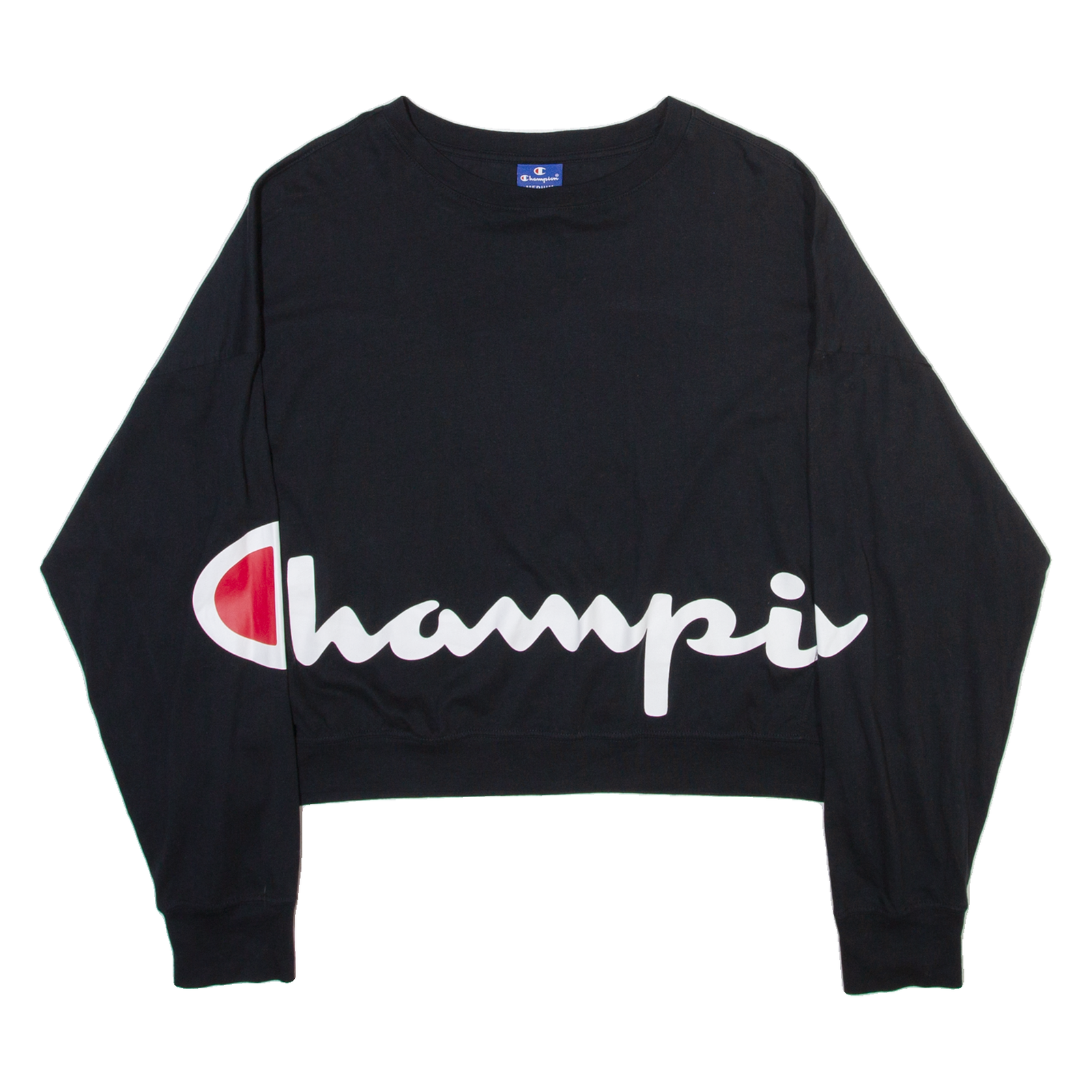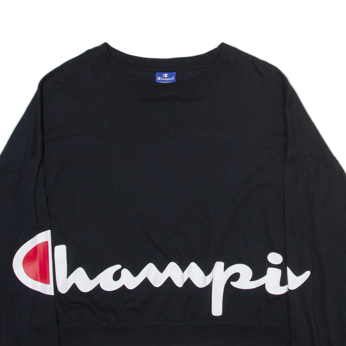 CHAMPION Womens T-Shirt Black Long Sleeve Crew Neck M