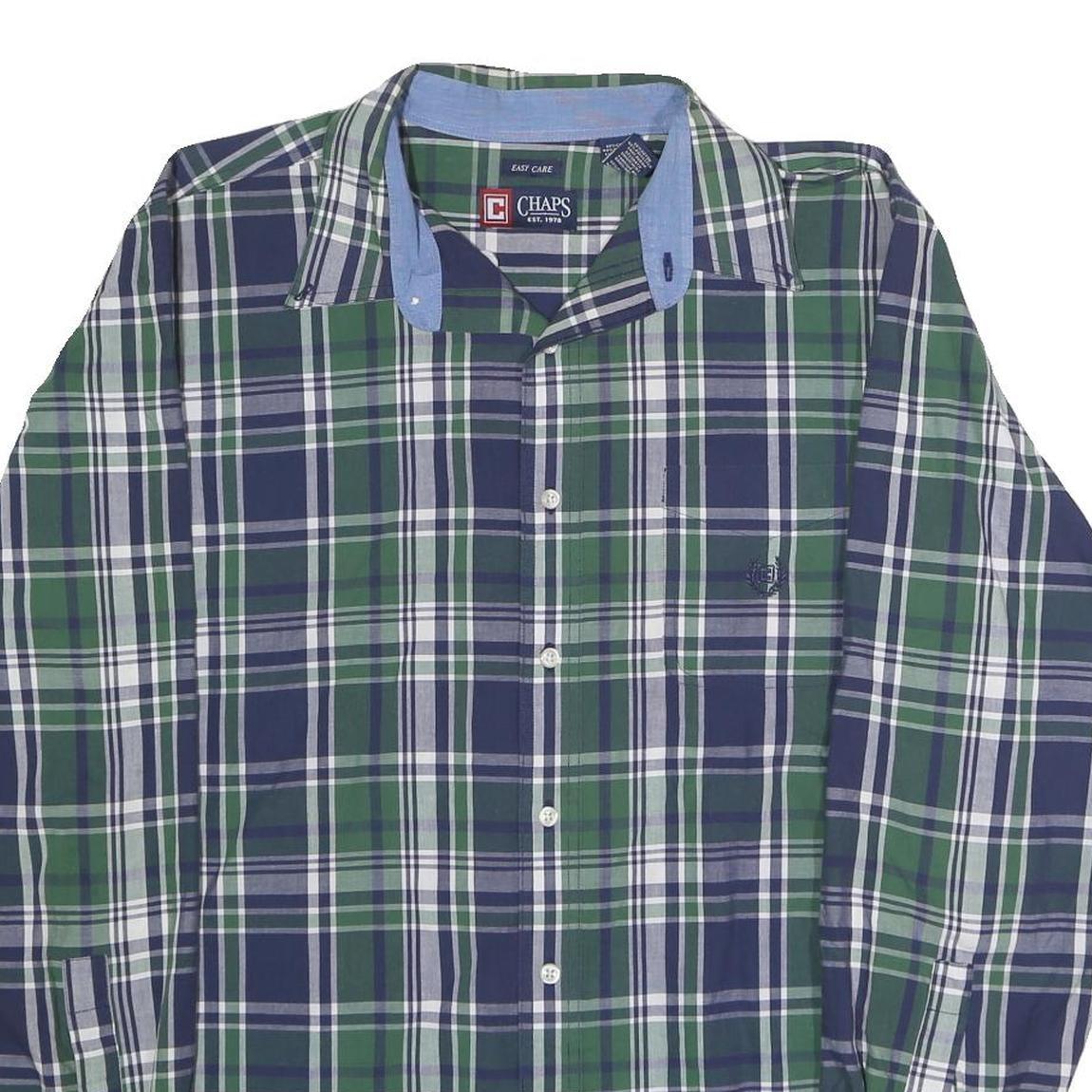 CHAPS Mens Blue & Green Checked Shirt XL Button Cotton Blend Casual