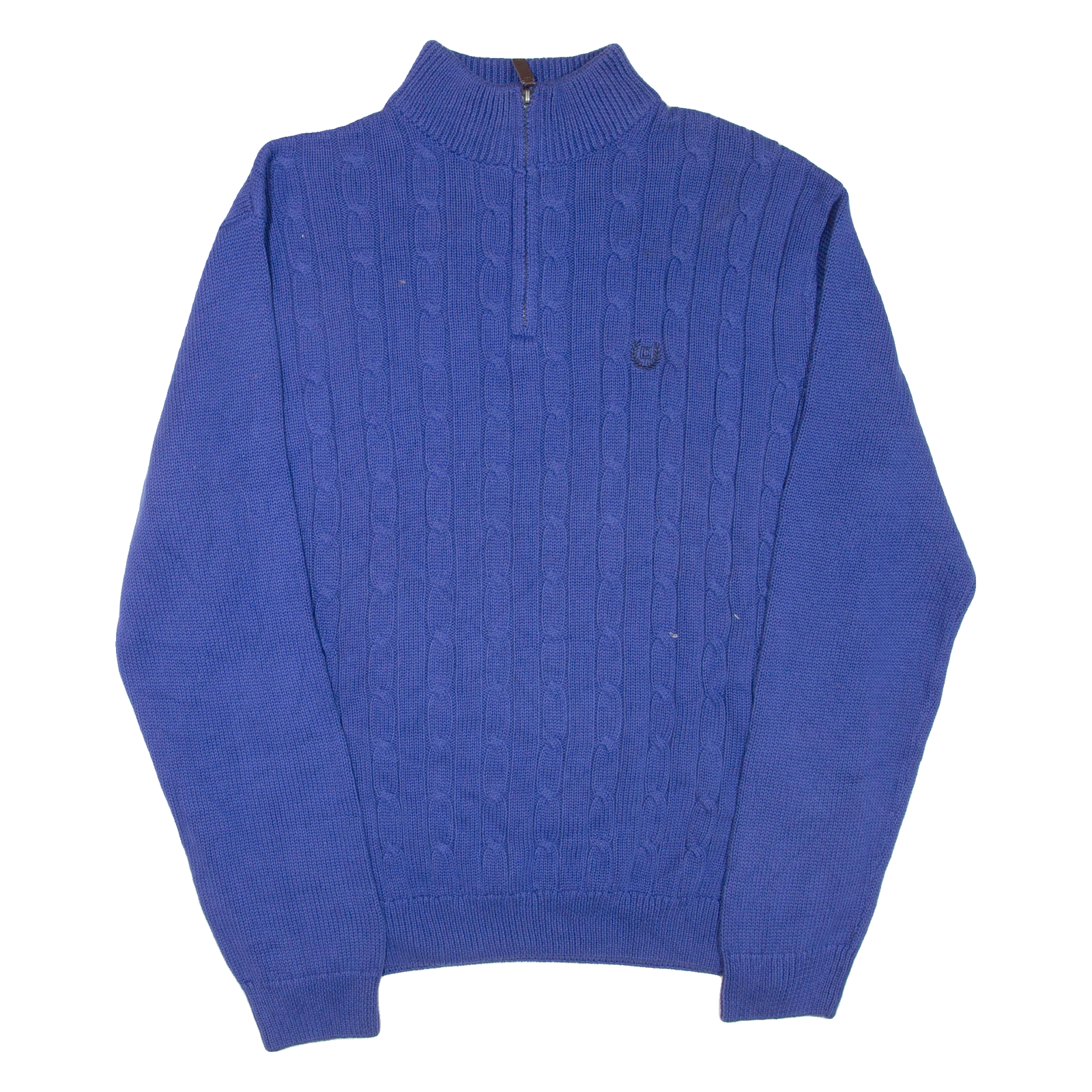 CHAPS Mens Heavy Knit Jumper Blue 1/4 Zip Tight Knit L