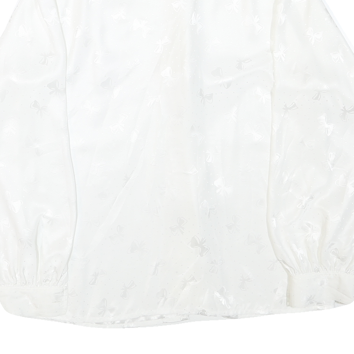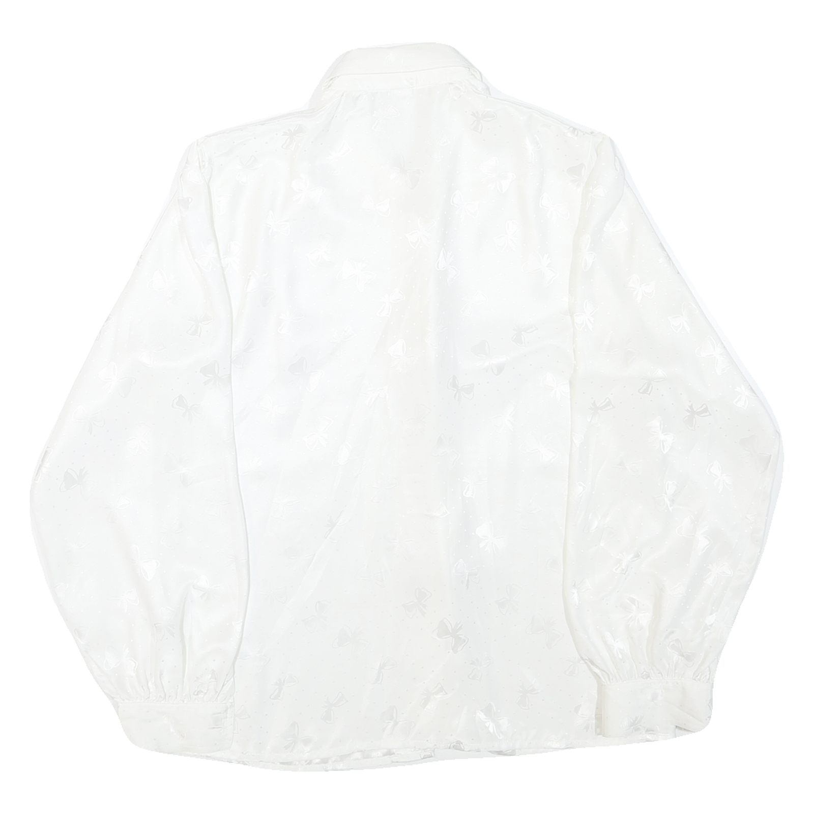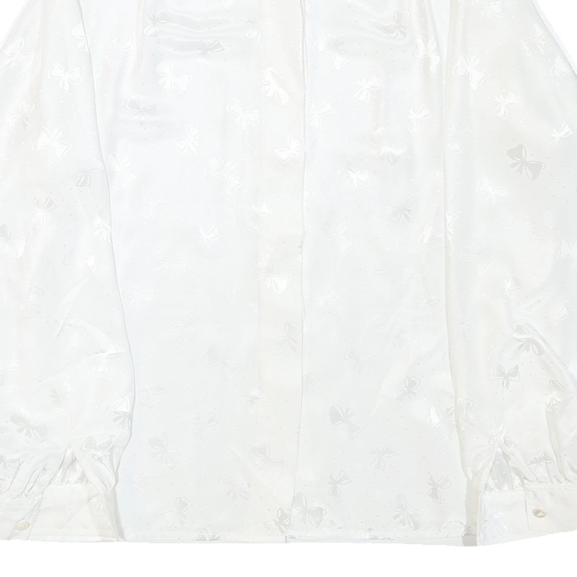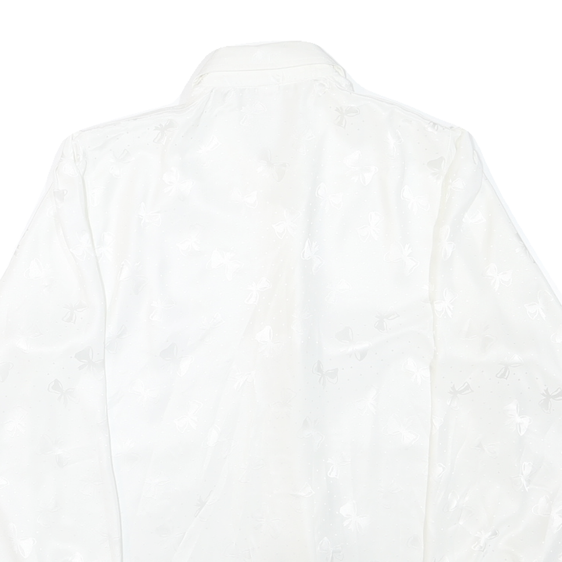 This DEL MOD womens blouse is crafted from a smooth polyester blend fabric in a clean white colour. The fabric features an all-over subtle bow print with a slightly shiny finish, adding an understated decorative touch to the plain base.