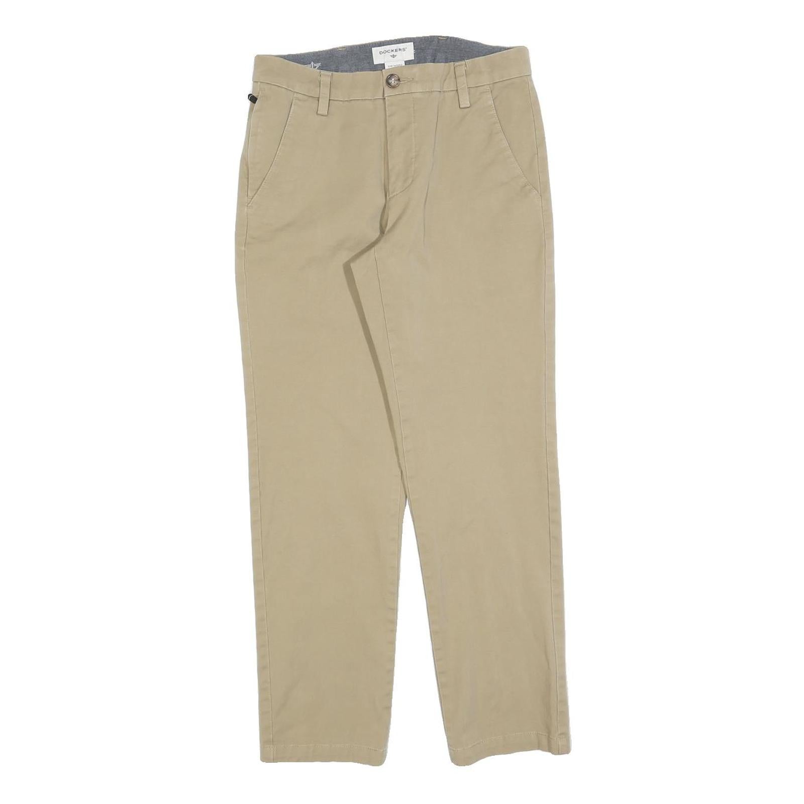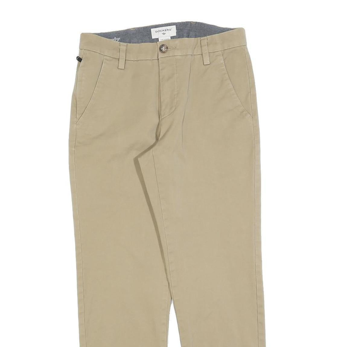 DOCKERS Mens Cotton Blend Beige Slim Straight Trousers W28 L27 Classic Zip