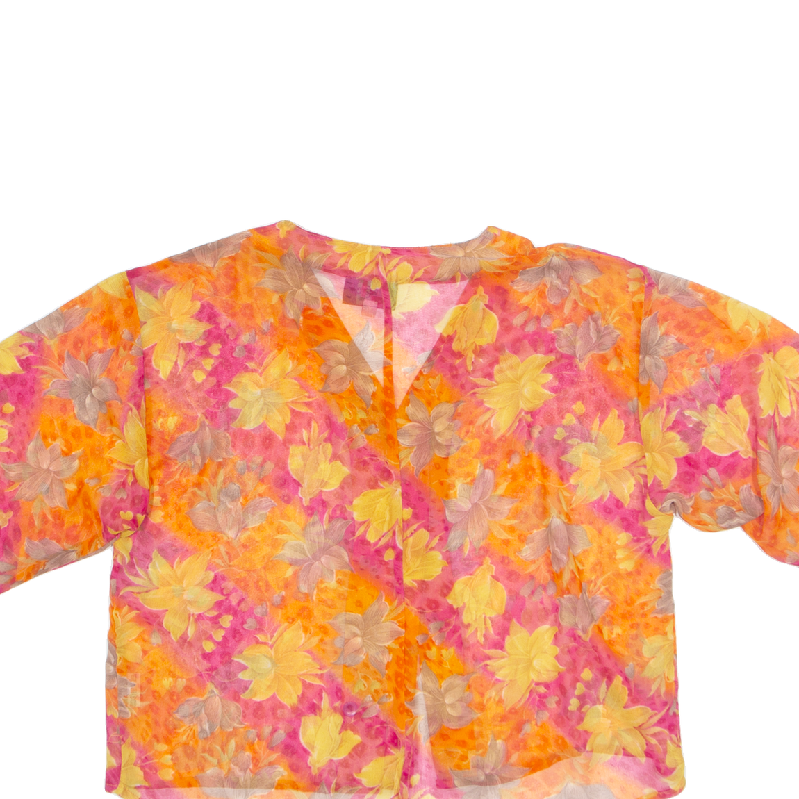EDUCARE Sheer Womens Printed Blouse Orange V-Neck Viscose Floral M