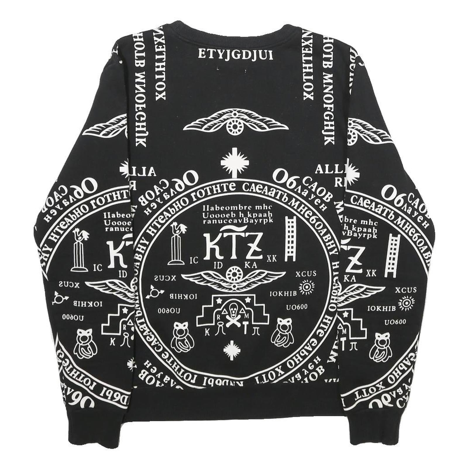 The fit is regular and comfortable, with ribbed hems and cuffs providing a neat finish. The cotton fabric offers a soft and breathable feel, making this sweatshirt ideal for casual wear or street style. There is no visible branding aside from the detailed printed graphics that add a unique edge to the garment.