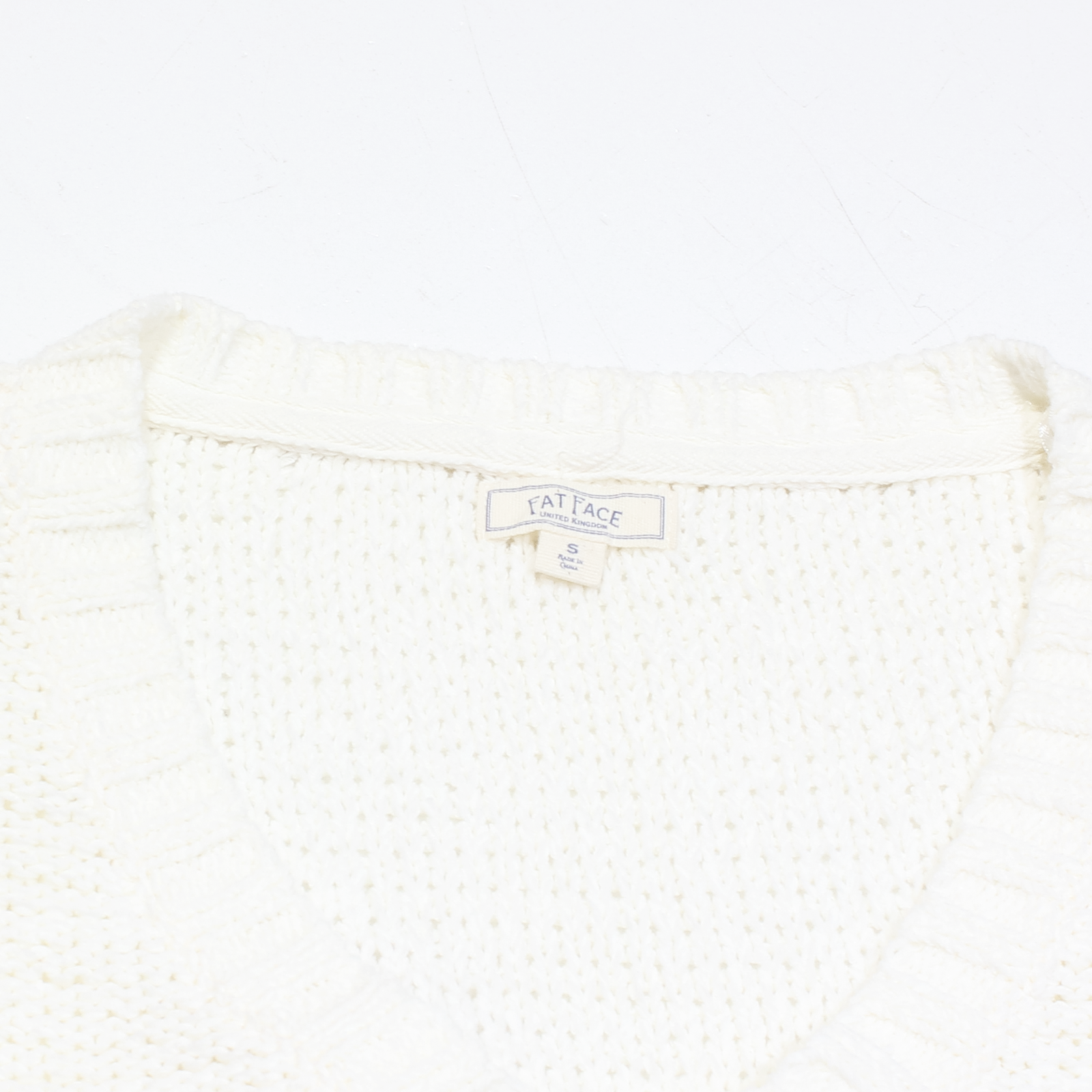 FAT FACE Oversized Womens Jumper Cream V-Neck Chunky Knit Short Sleeve S