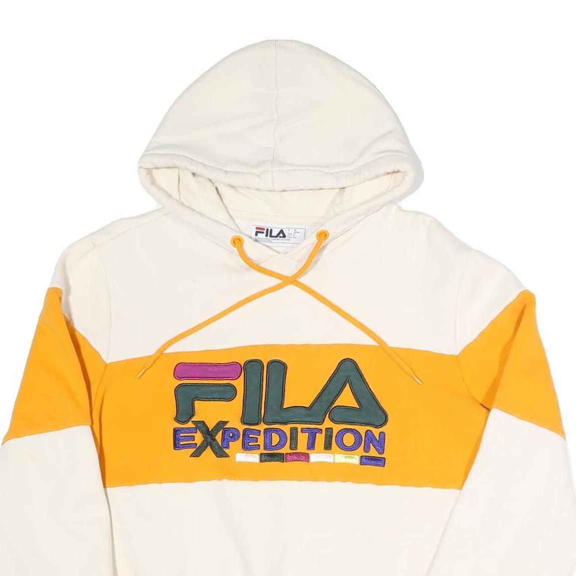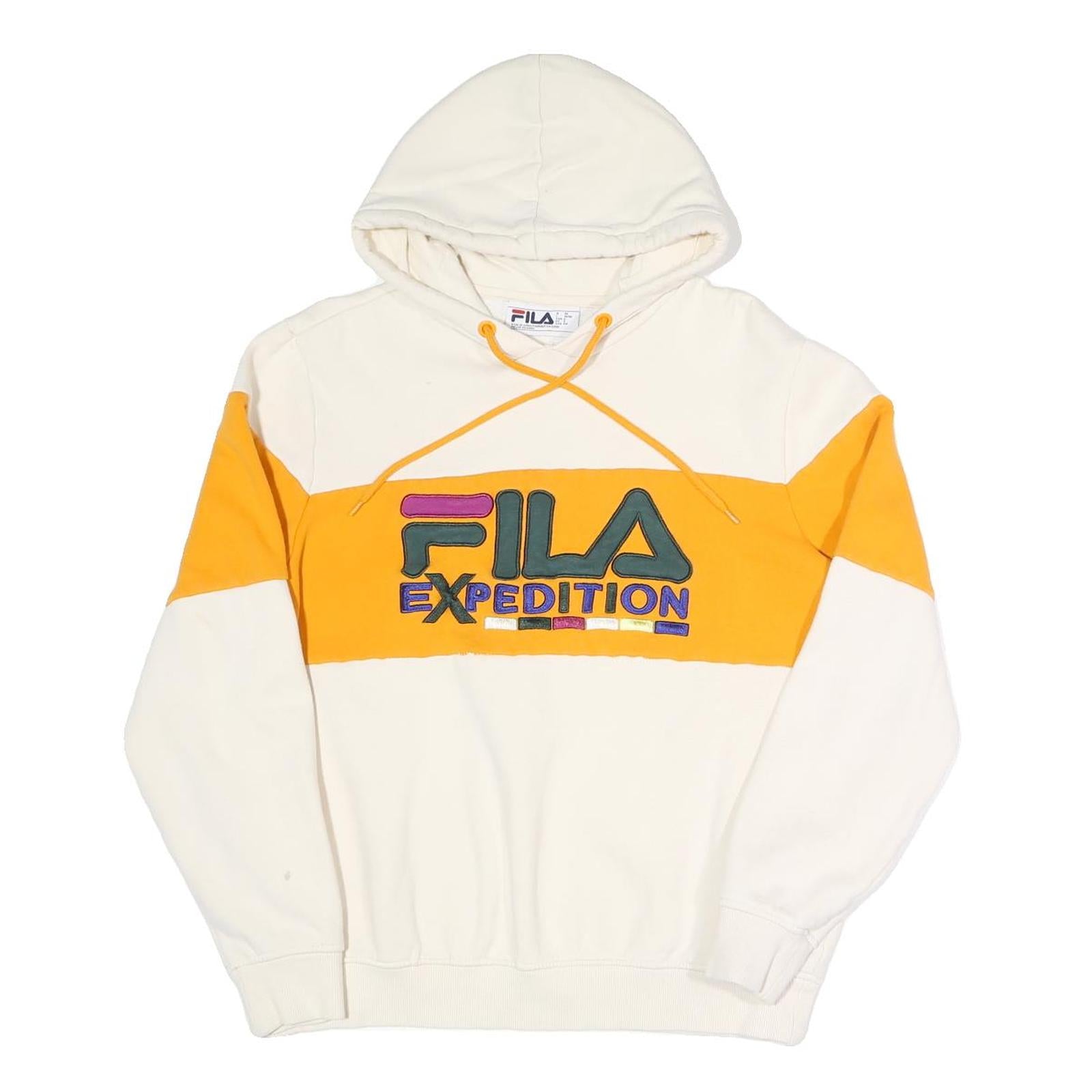 FILA Womens Cream & Yellow Expedition Hoodie S Casual Cotton Blend Pullover