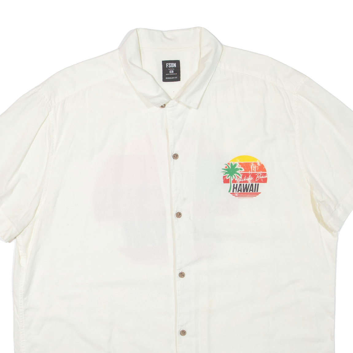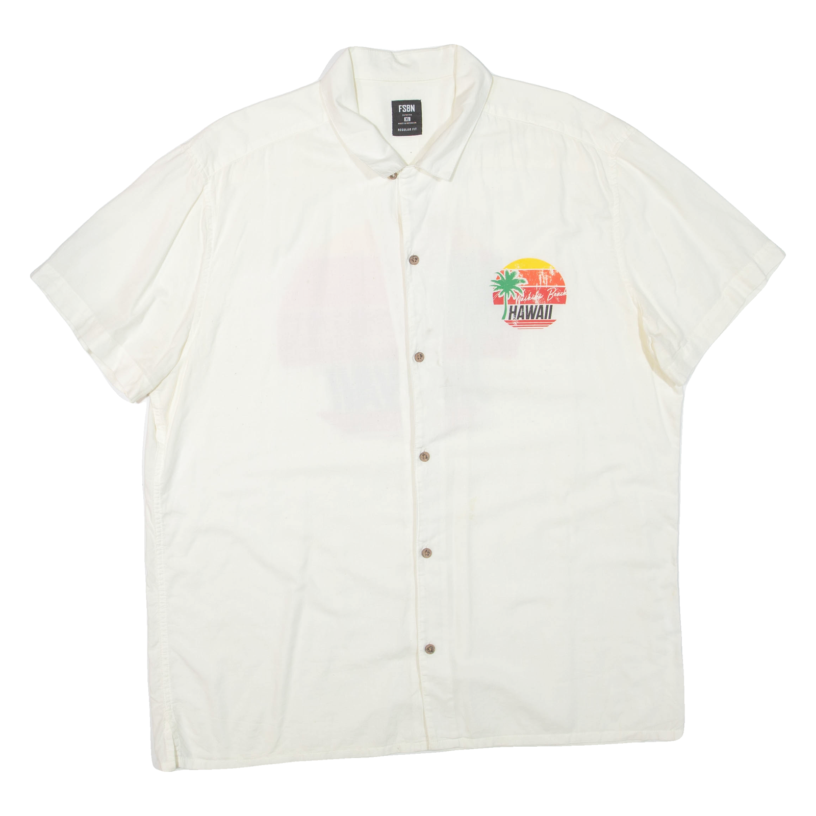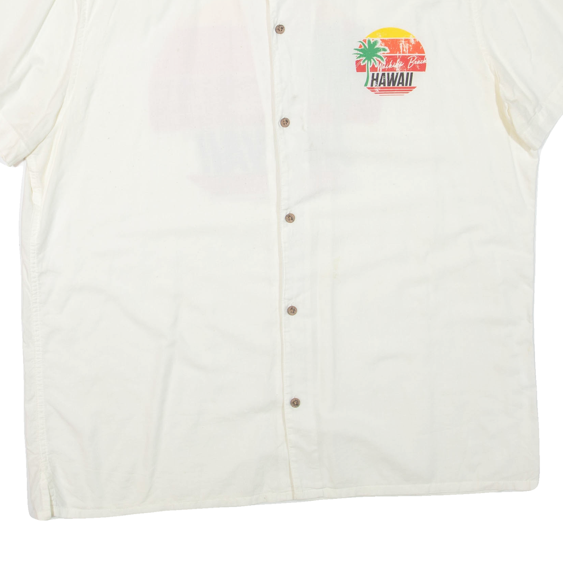 FSBN Waikiki Beach Hawaii Mens Hawaiian Shirt Cream XL