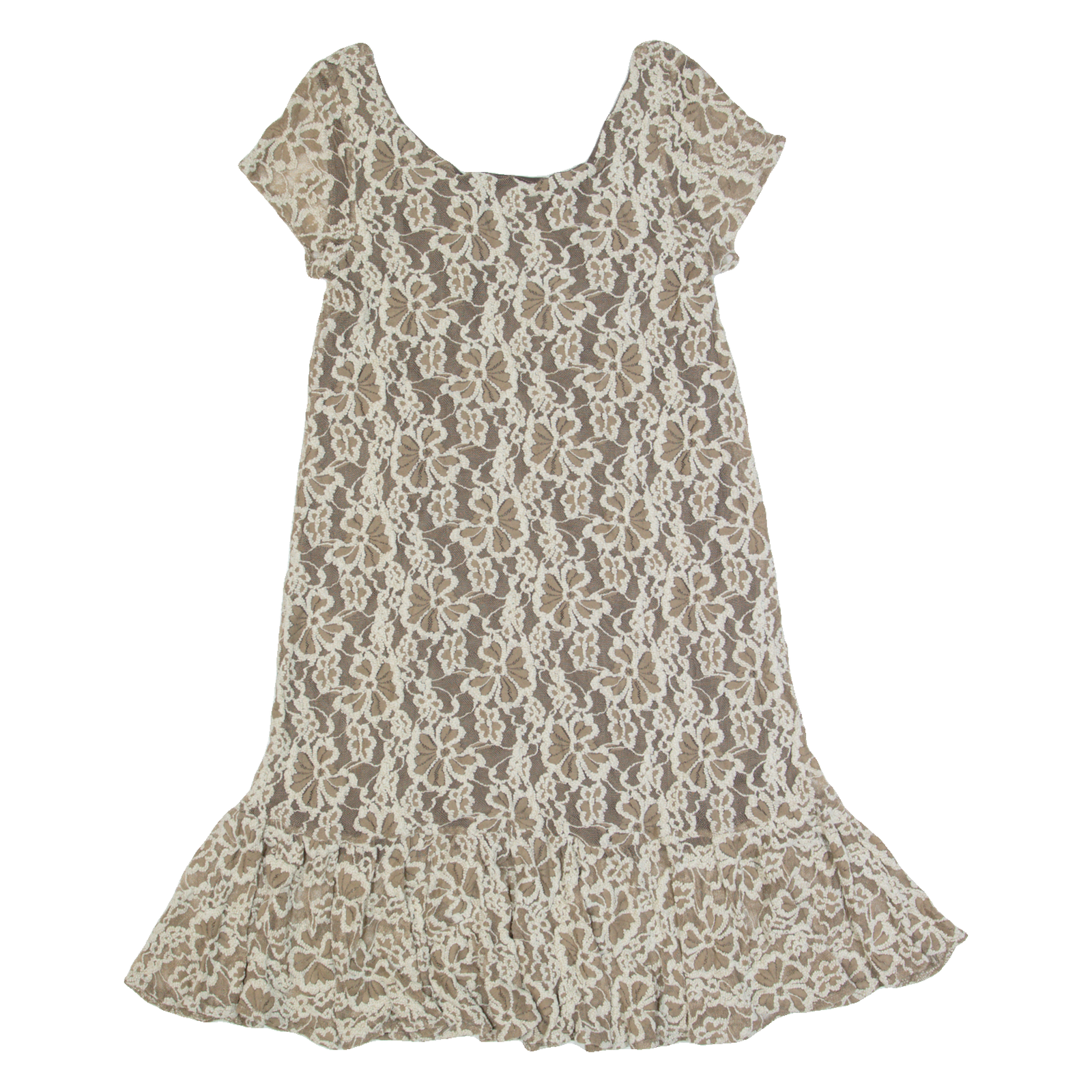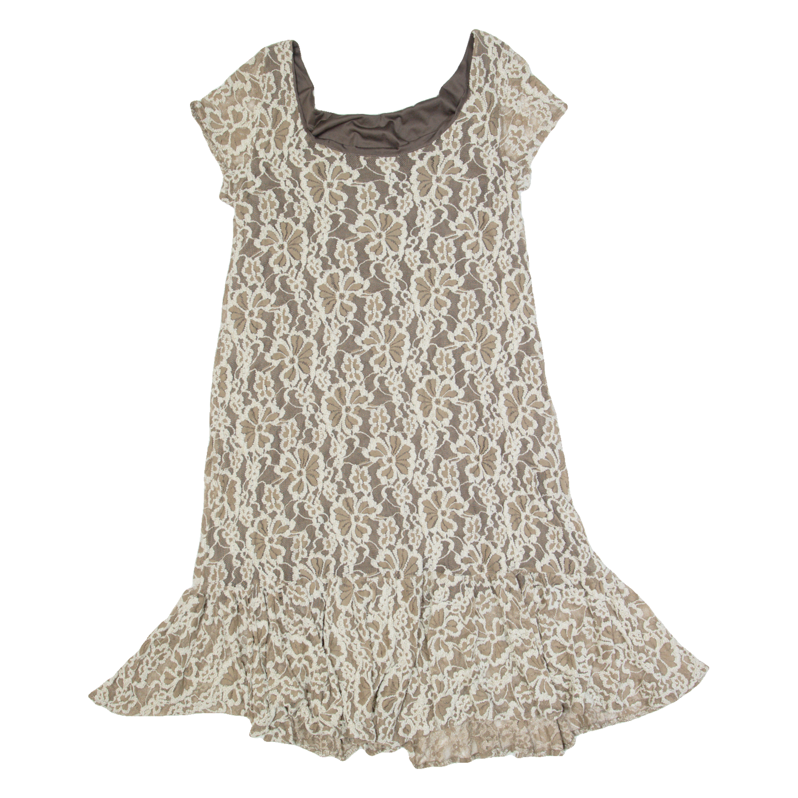 GANNI Womens Day Dress Brown Lace Short Sleeve Midi XS