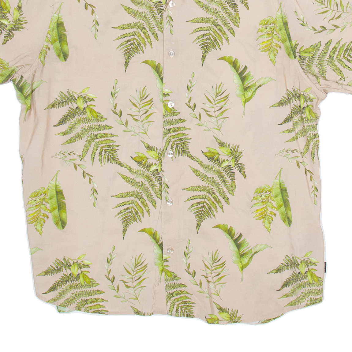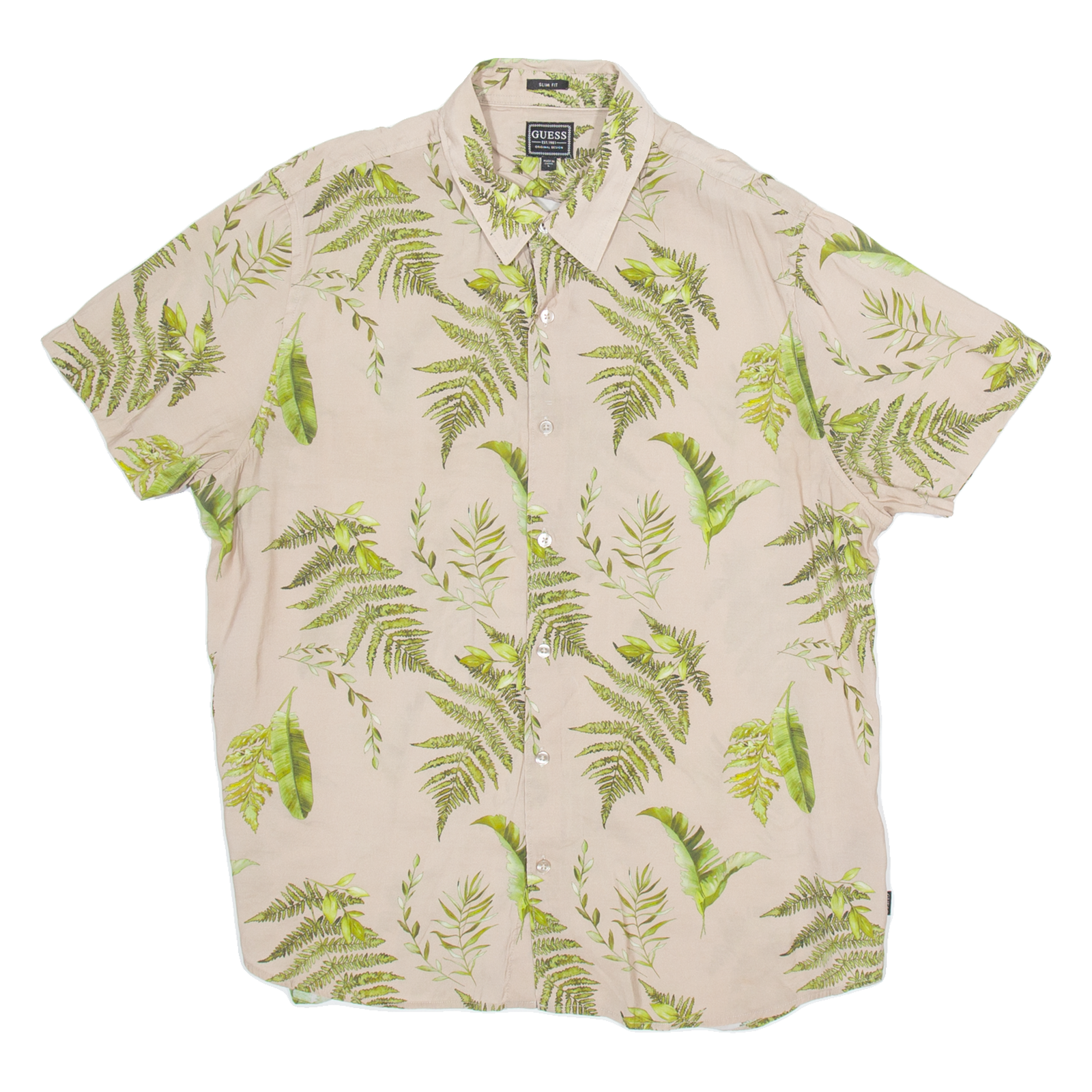 GUESS Slim Fit Mens Hawaiian Shirt Brown Floral L