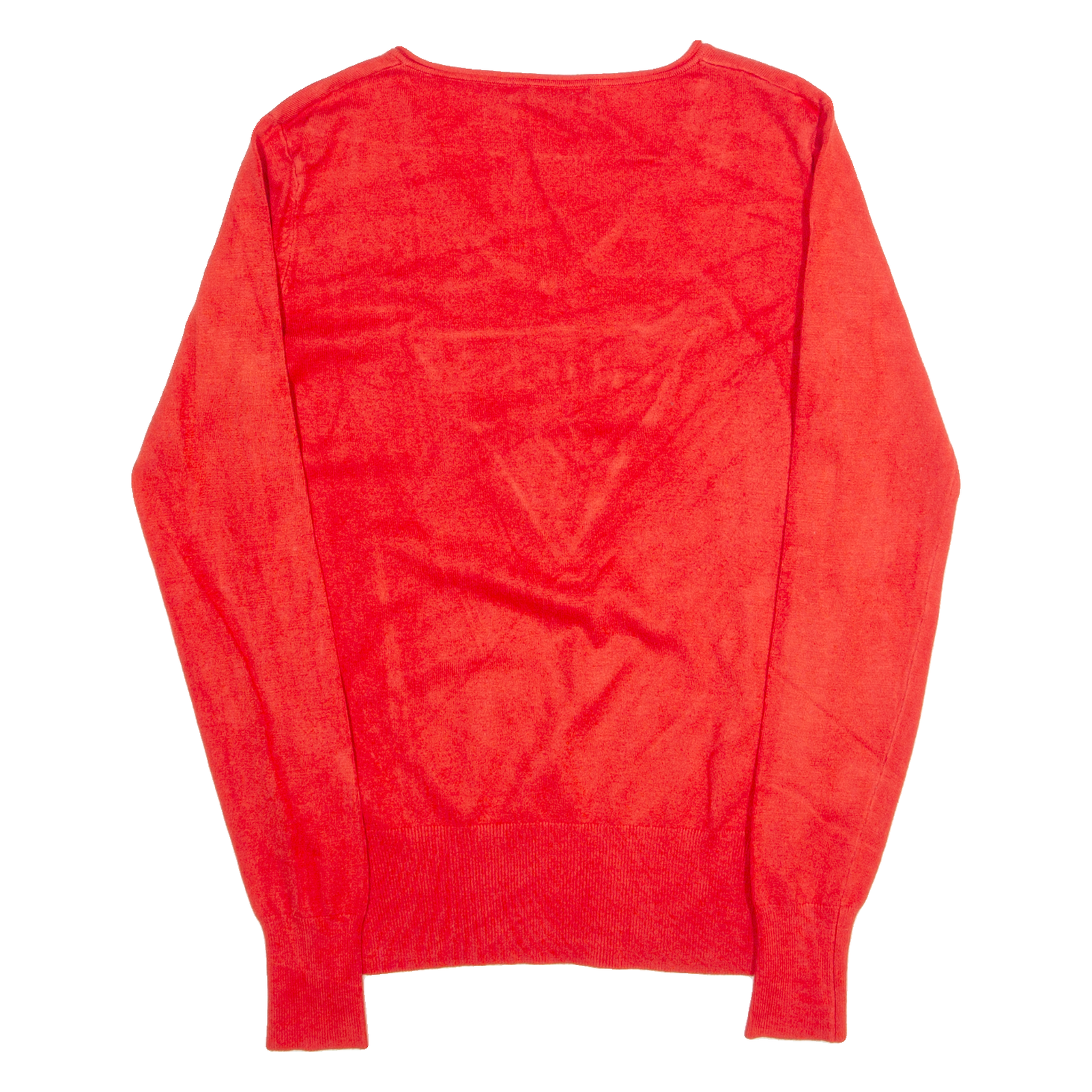 GUESS Womens Jumper Red V-Neck Tight Knit S