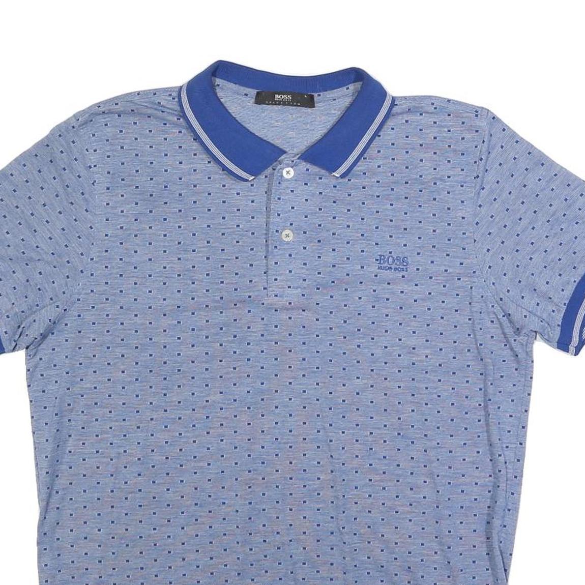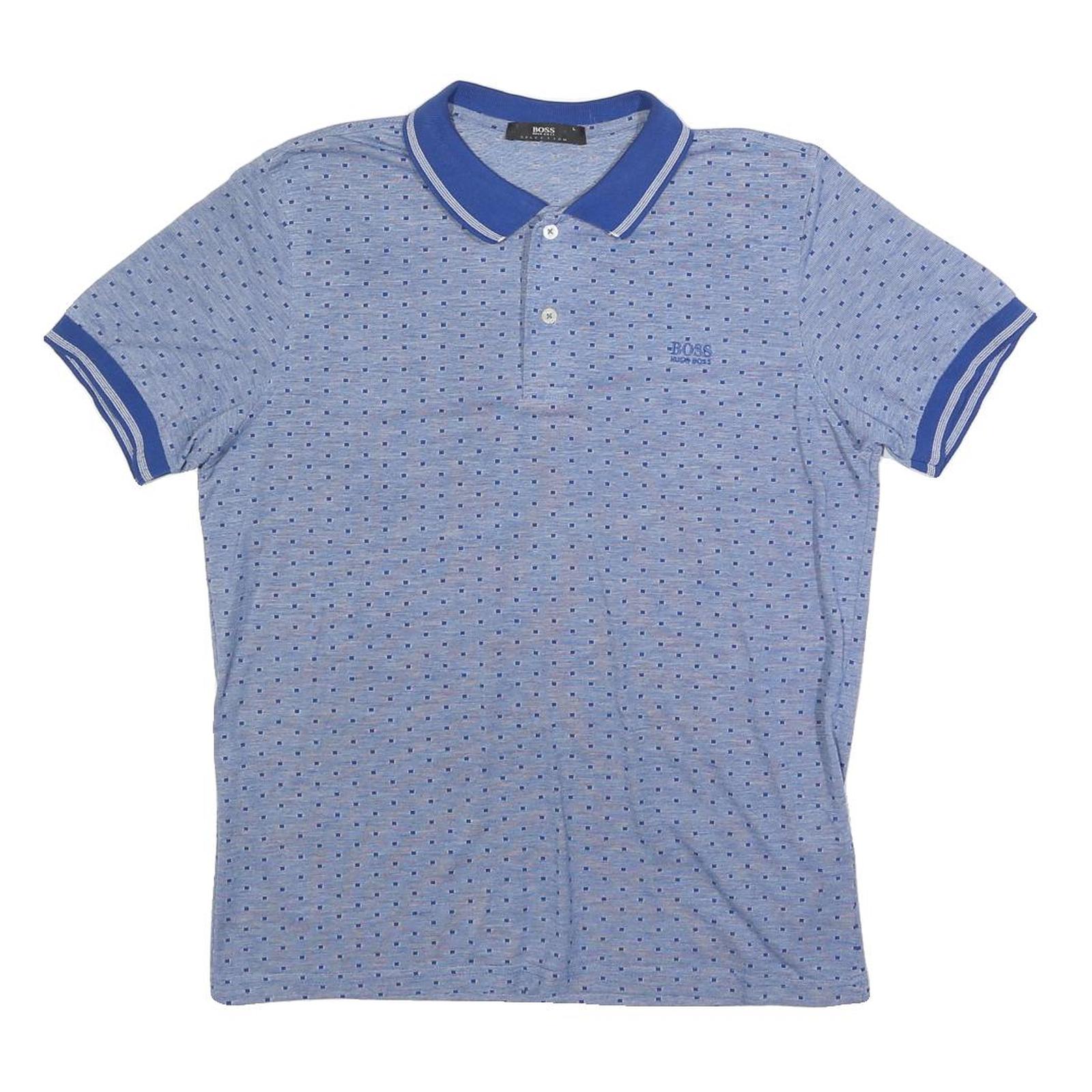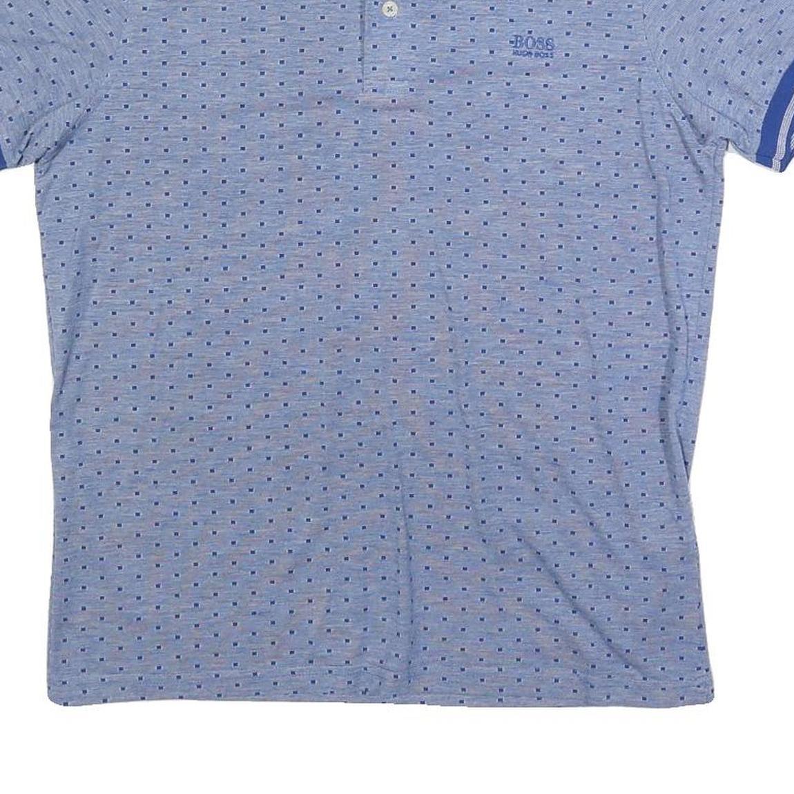 HUGO BOSS Boys Blue Short Sleeve Printed Polo Shirt L Cotton Blend