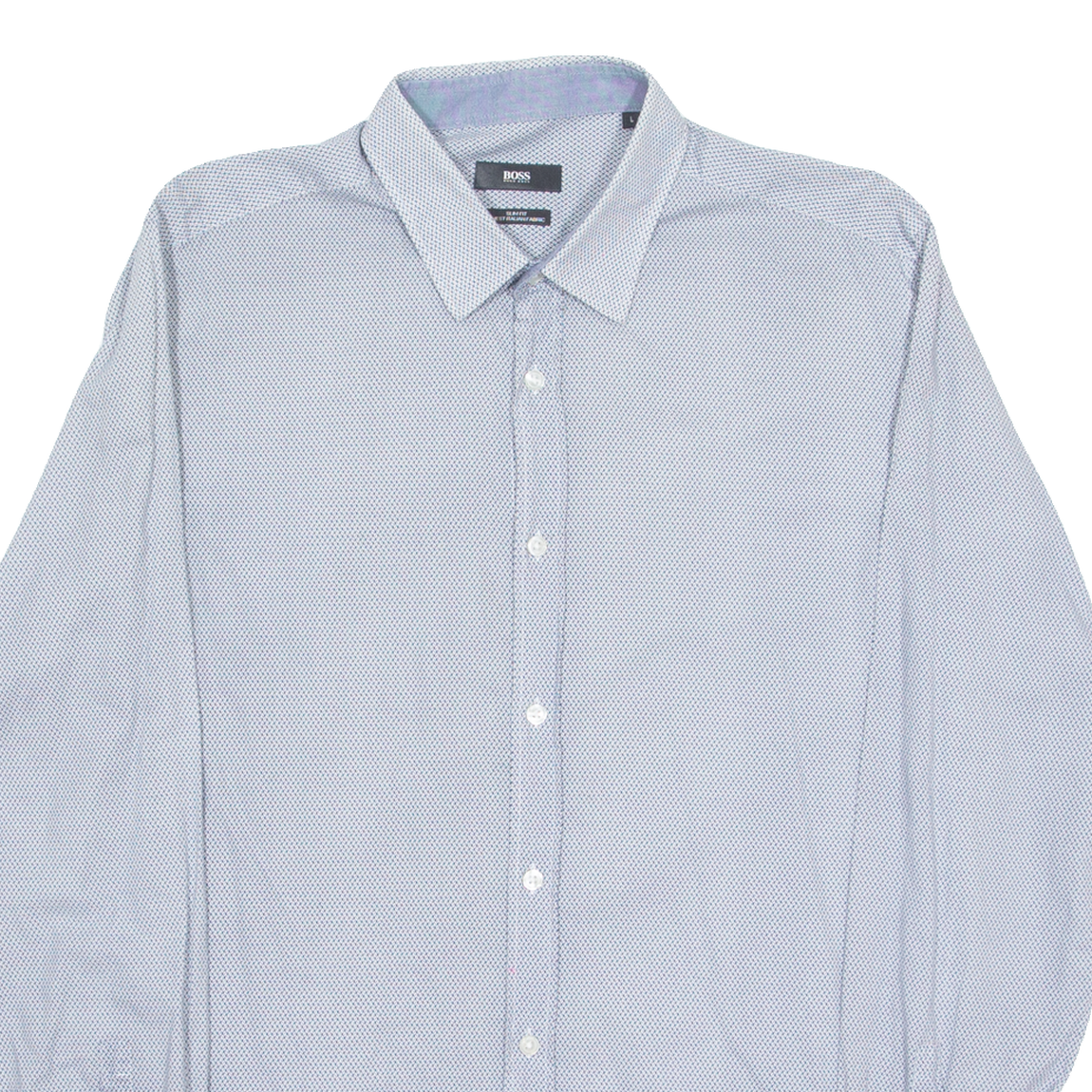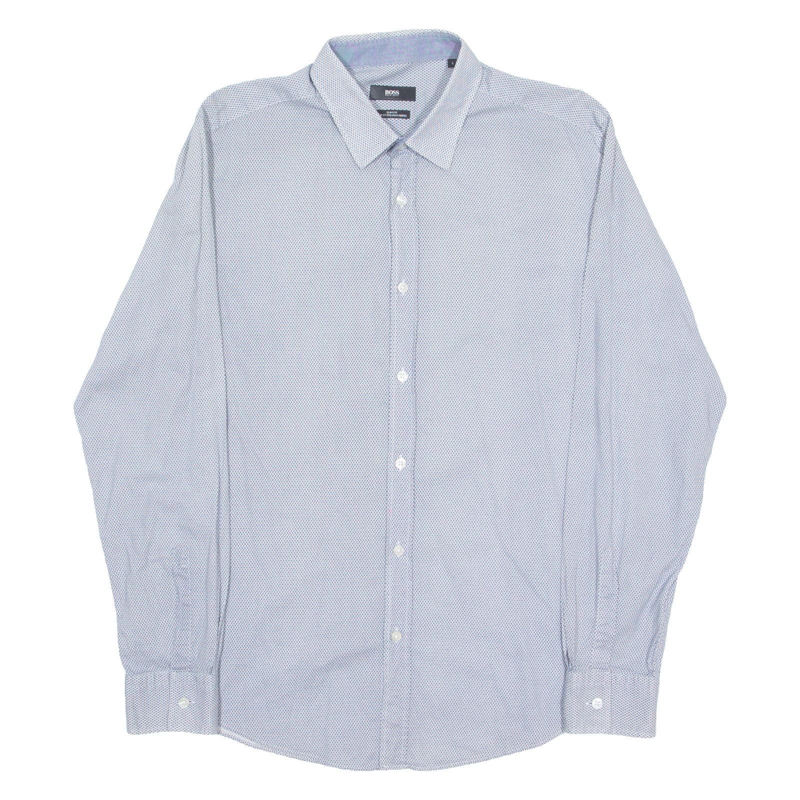 HUGO BOSS Slim Fit Mens Shirt Blue Geometric Long Sleeve L