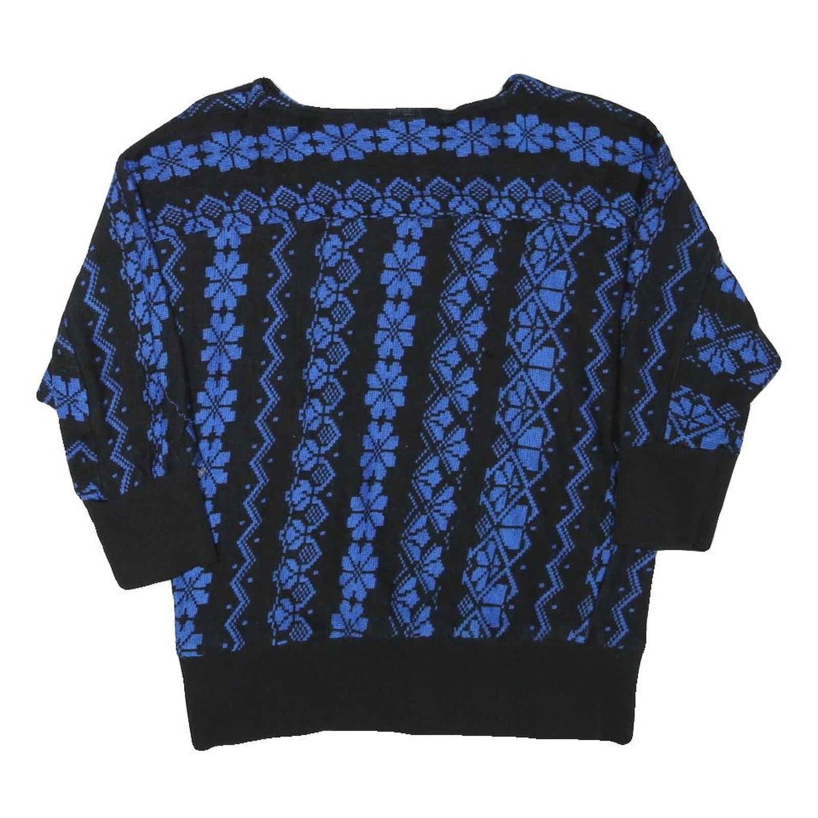 JOHN PHILIPS Womens Black & Blue Patterned Jumper Round Neck Basic Knit Size M