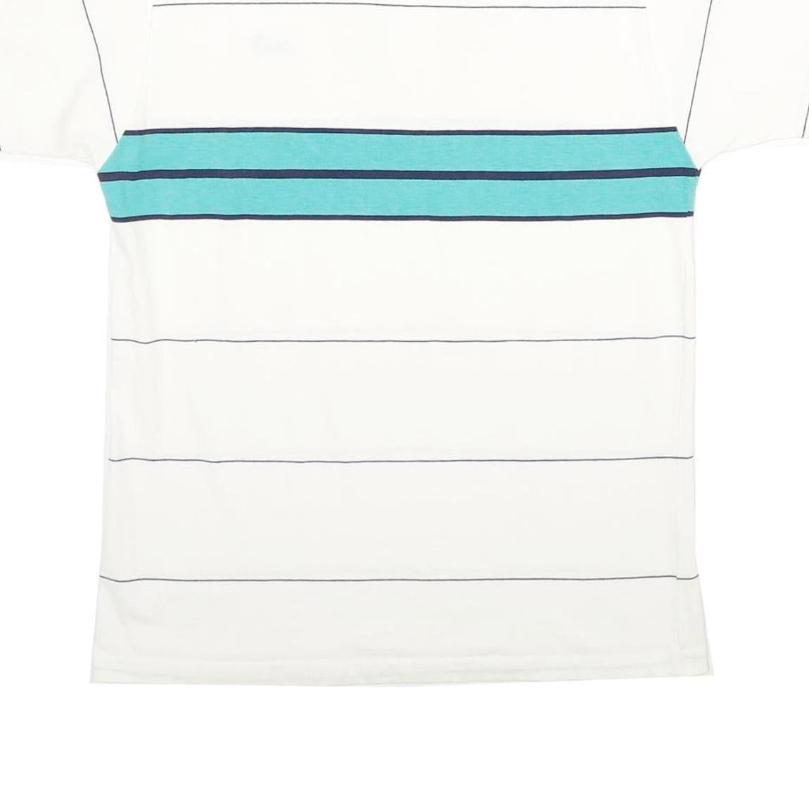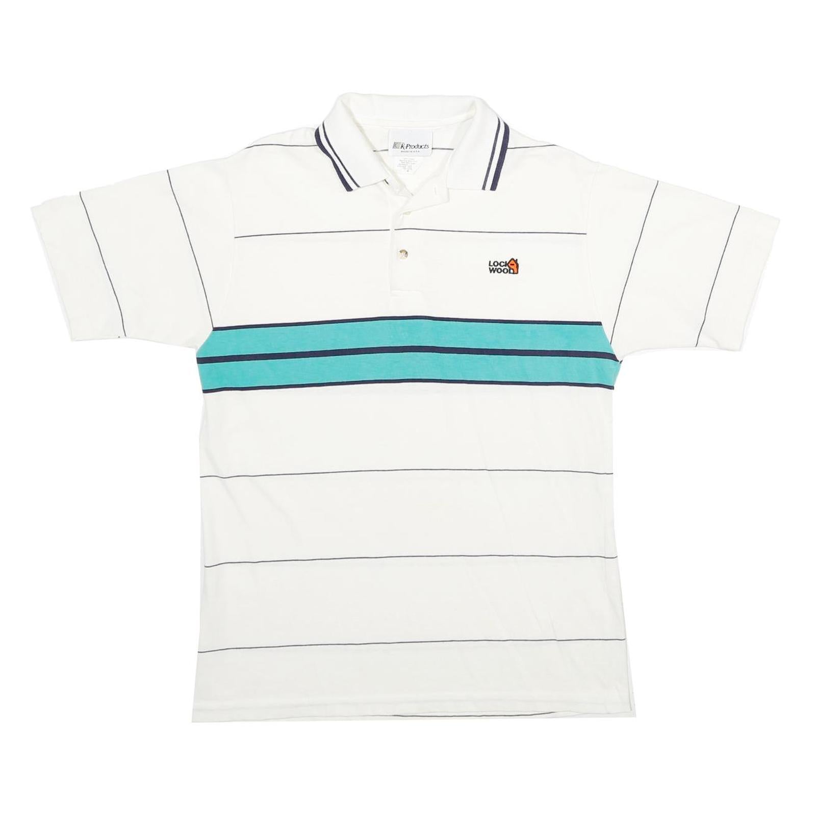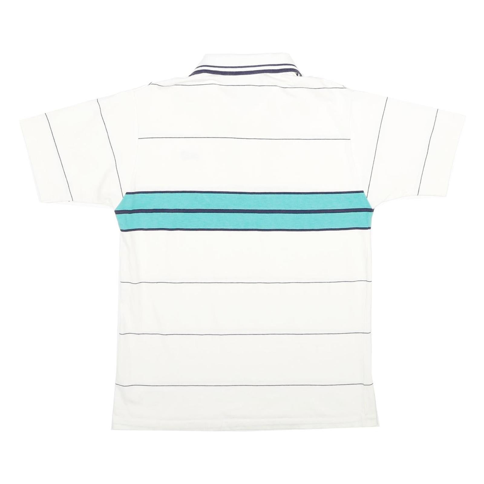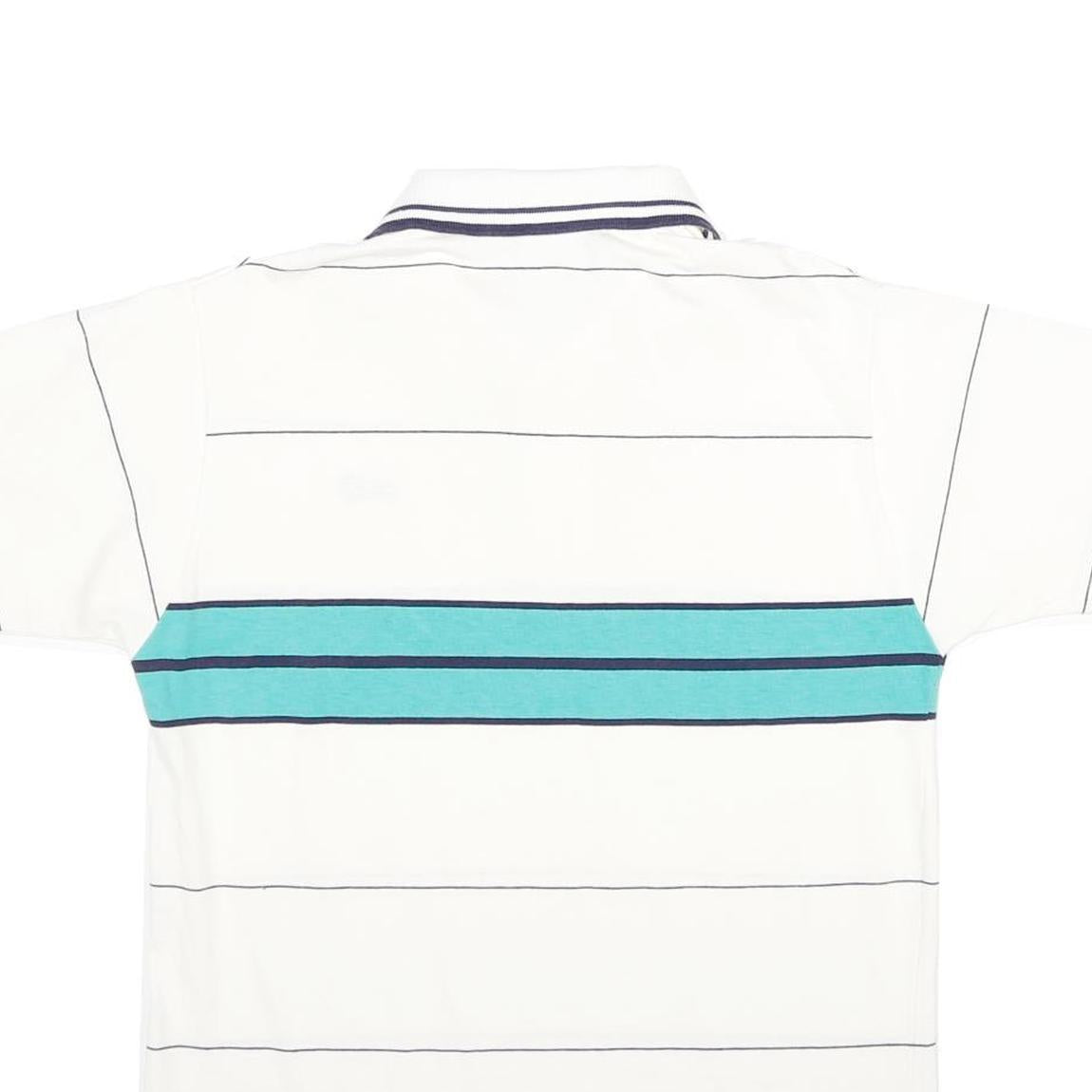 K-PRODUCTS Mens White & Teal Striped Short Sleeve Polo Shirt M Logo Embroidered