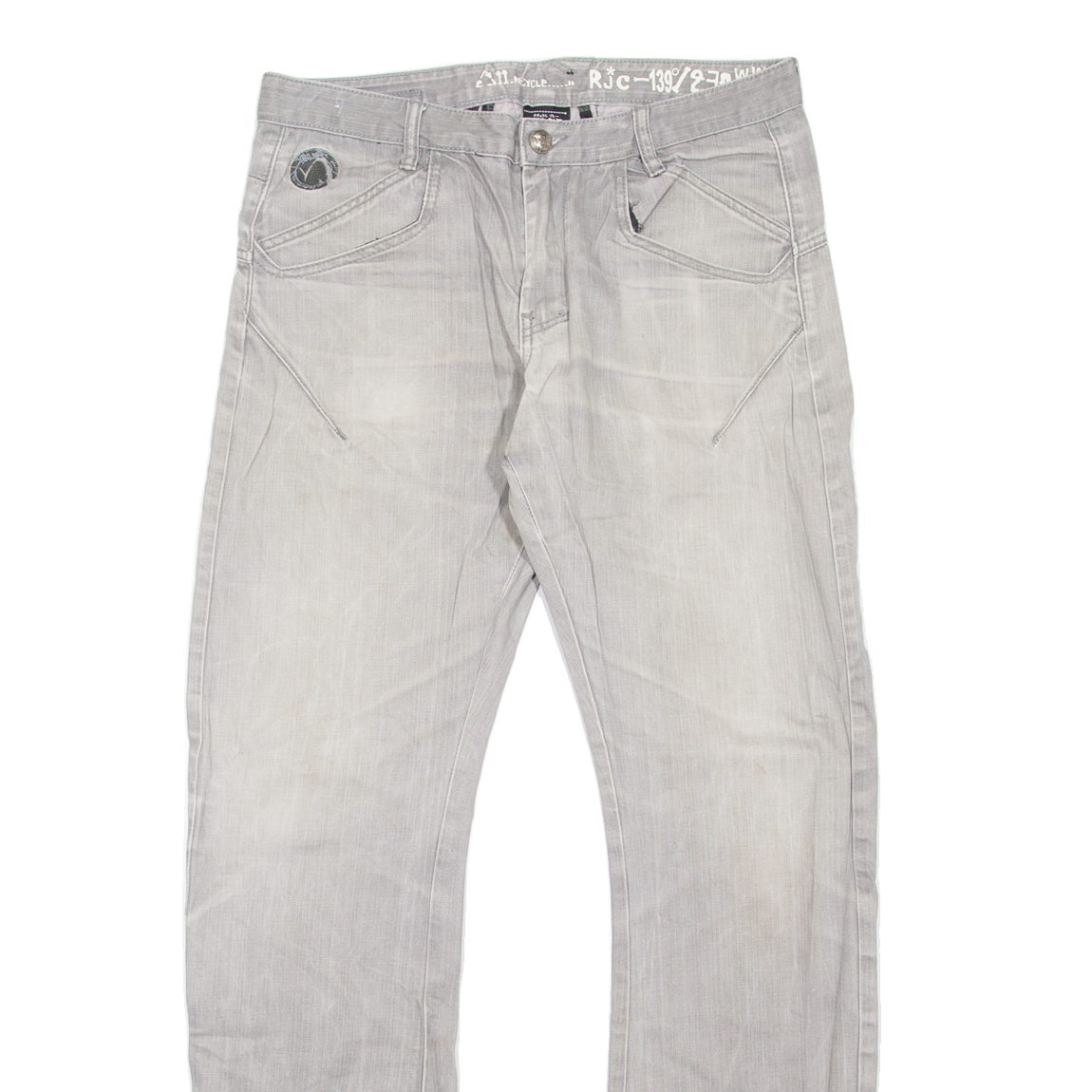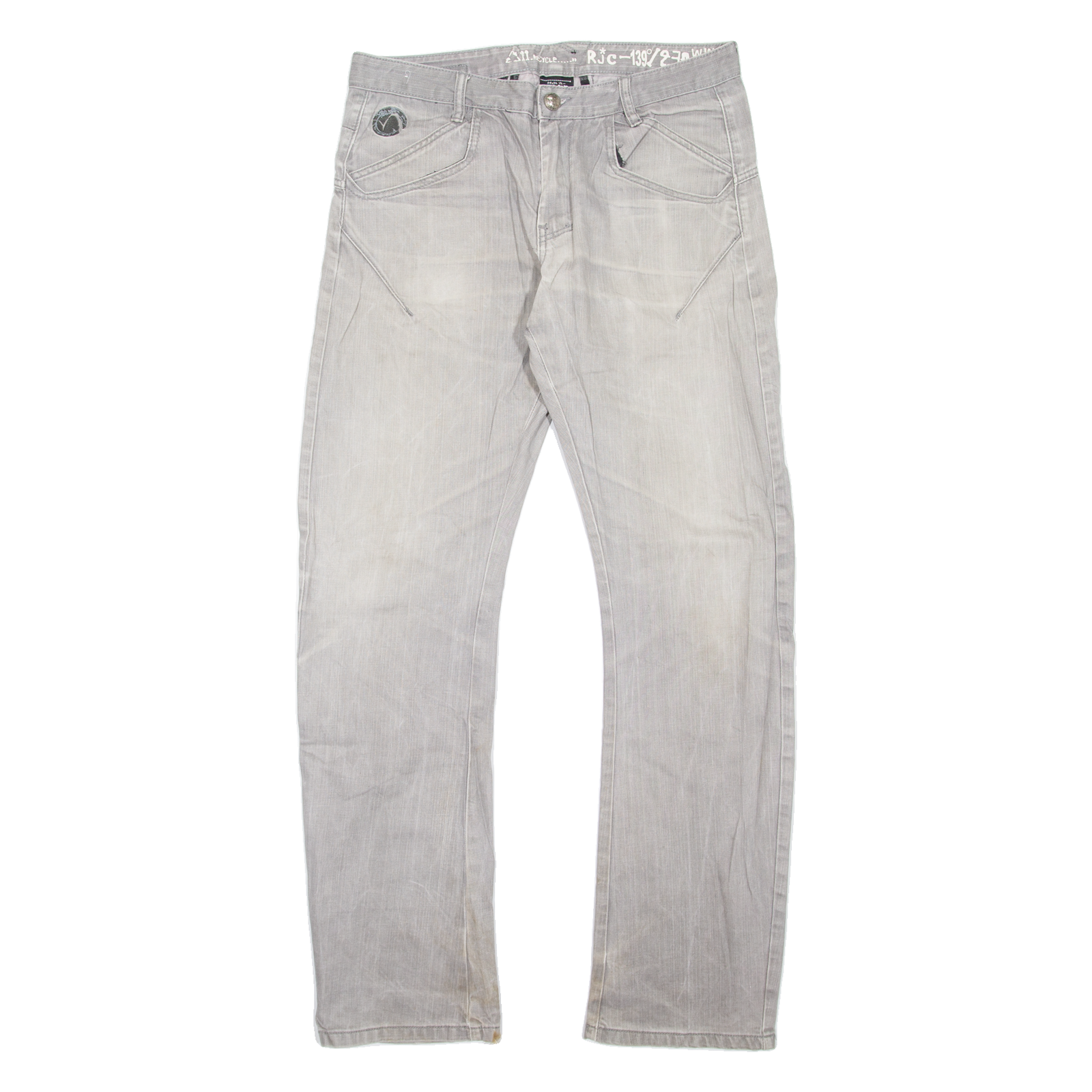 KORSE Mens Jeans Grey Regular Straight Stone Wash W34 L32