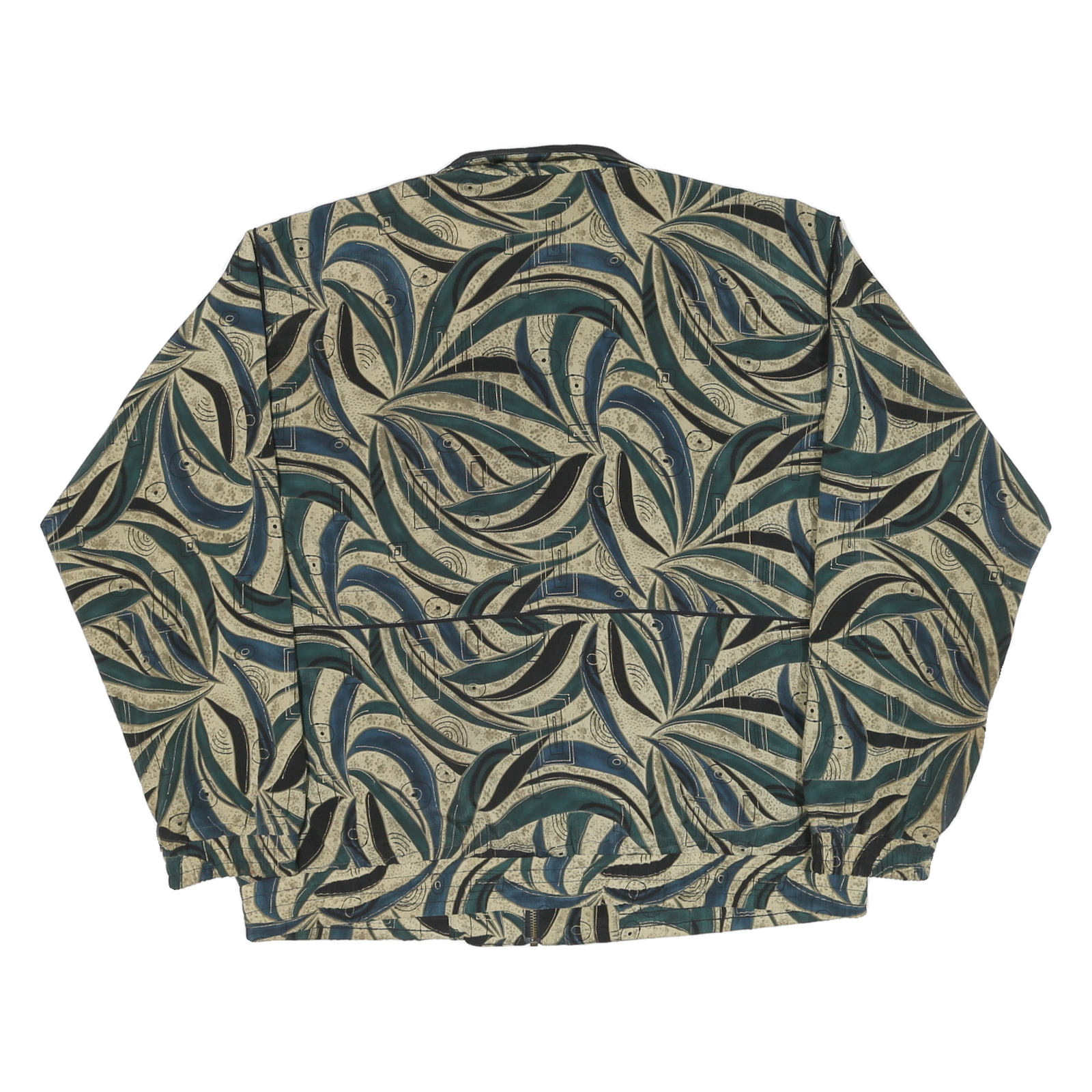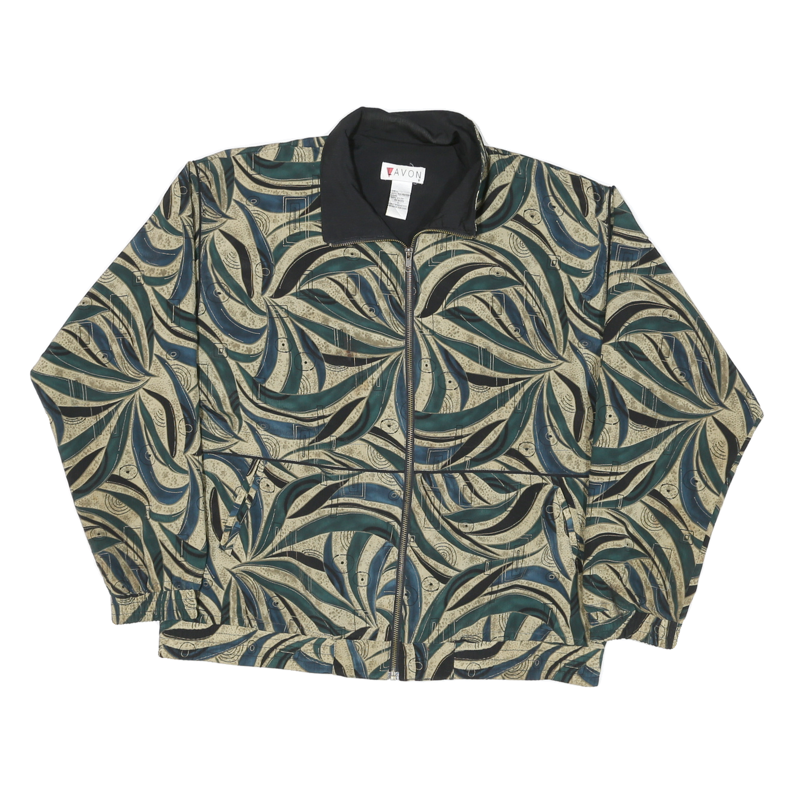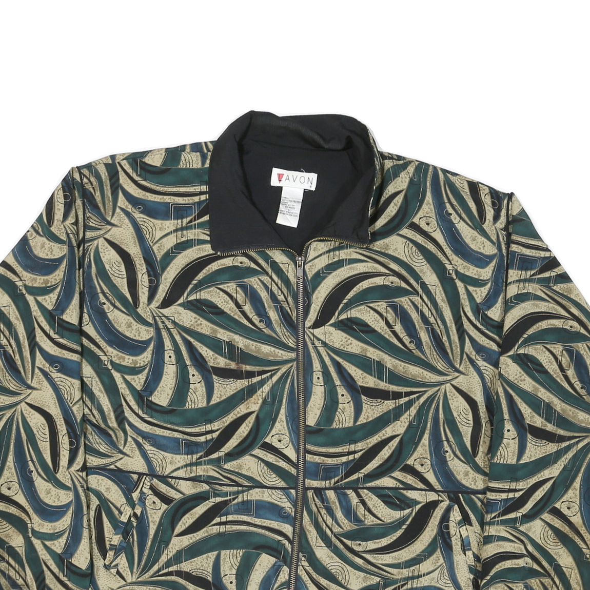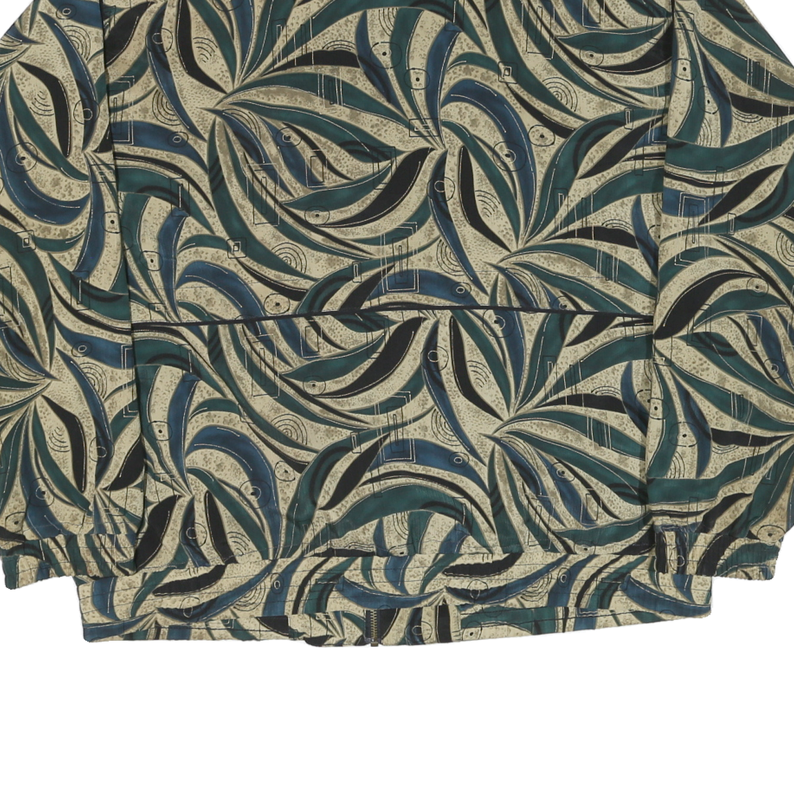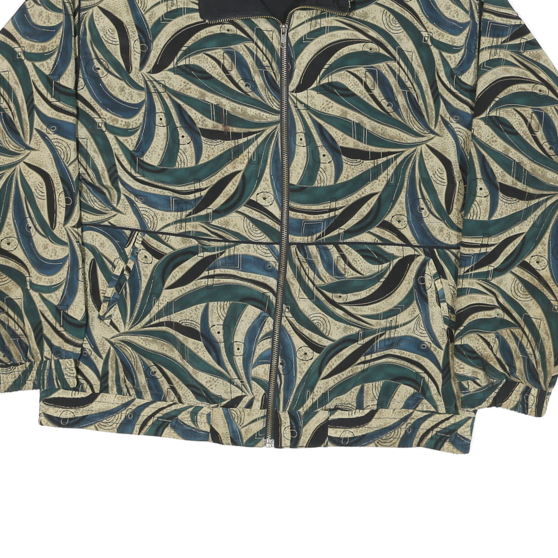 LAVON Womens Green Beige Abstract Pattern Nylon Jacket L Zip Classic Fit