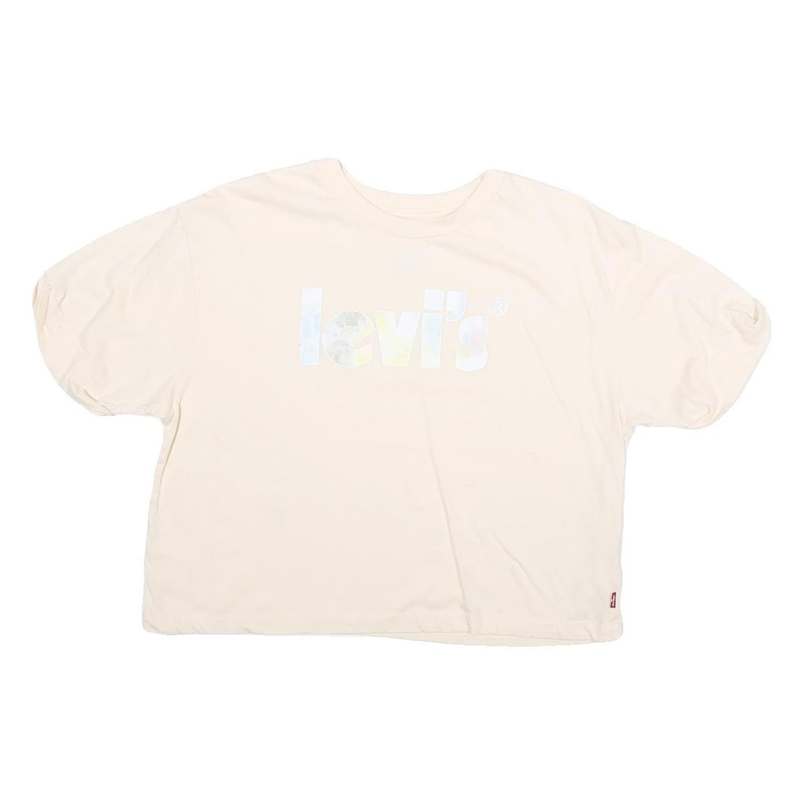 LEVI'S Girls Cream White Short Sleeve Crop T-Shirt XL Crew Neck Cotton