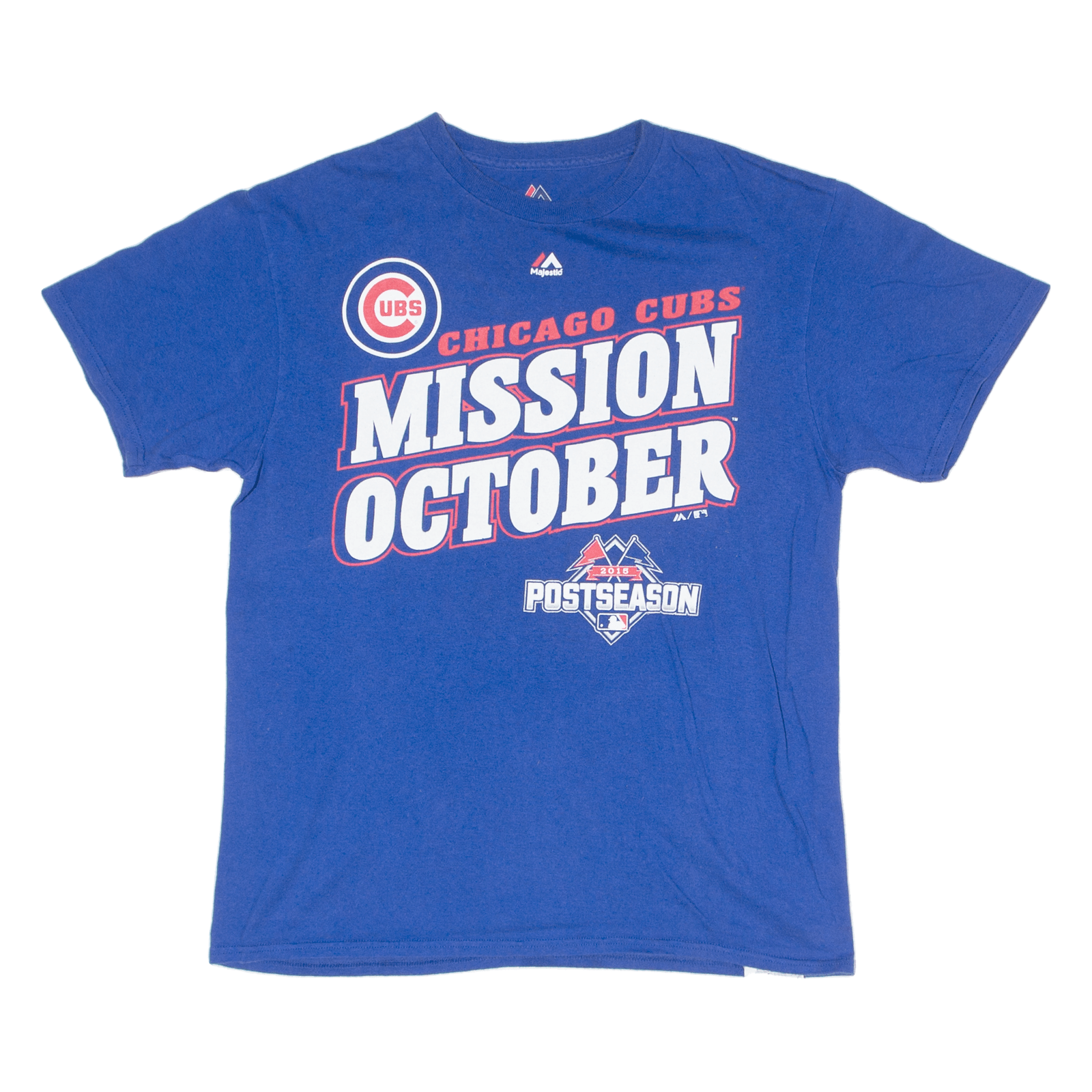 MAJESTIC Chicago Cubs Mission October 2015 Post Season Mens T-Shirt Blue USA M