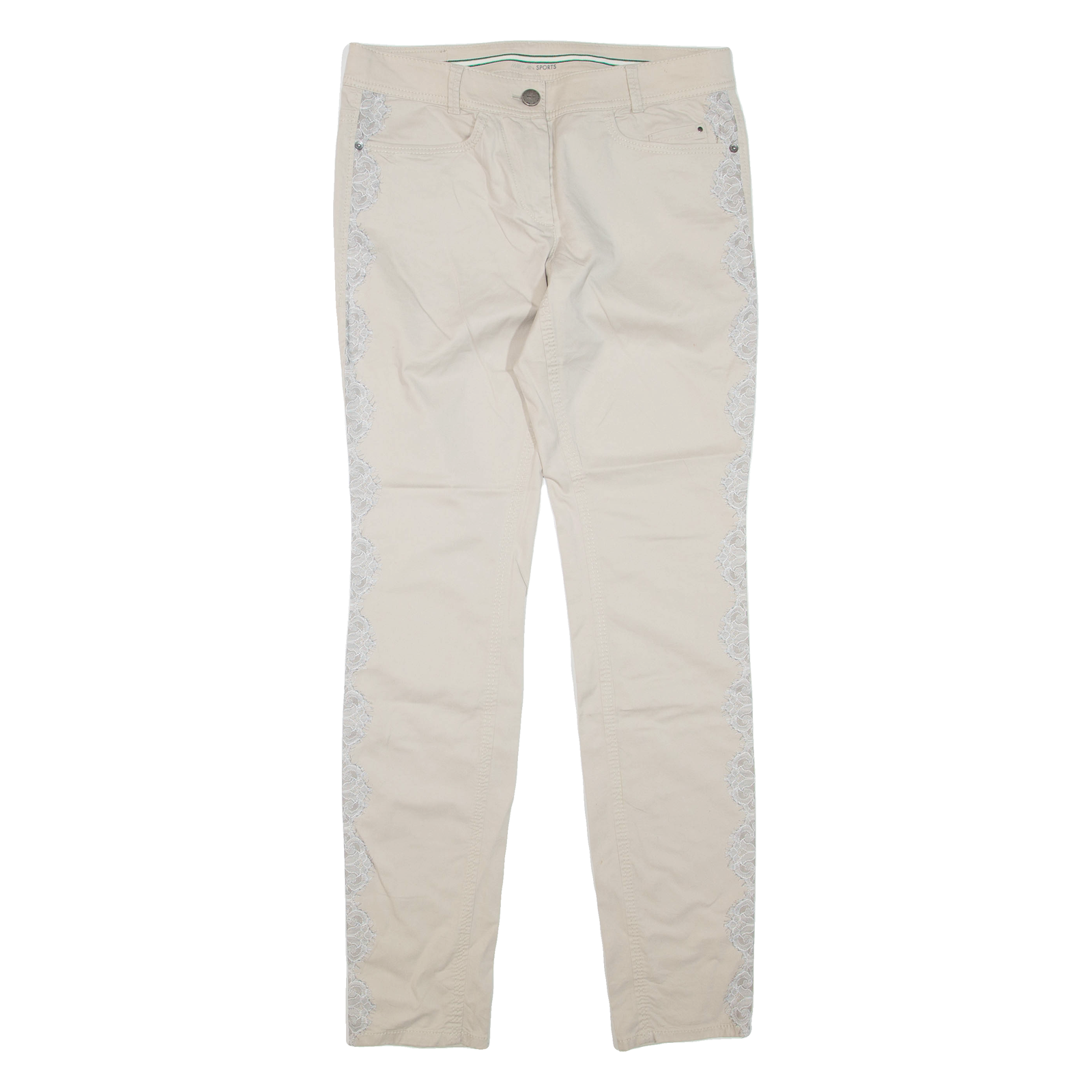 We understand that clothing sizes can vary depending on the brand, style, and age of the item. Therefore, along with providing the size stated in the label, we hand measure all our items to give you the exact measurements. Unless stated otherwise all measurements are taken with the item un-stretched.