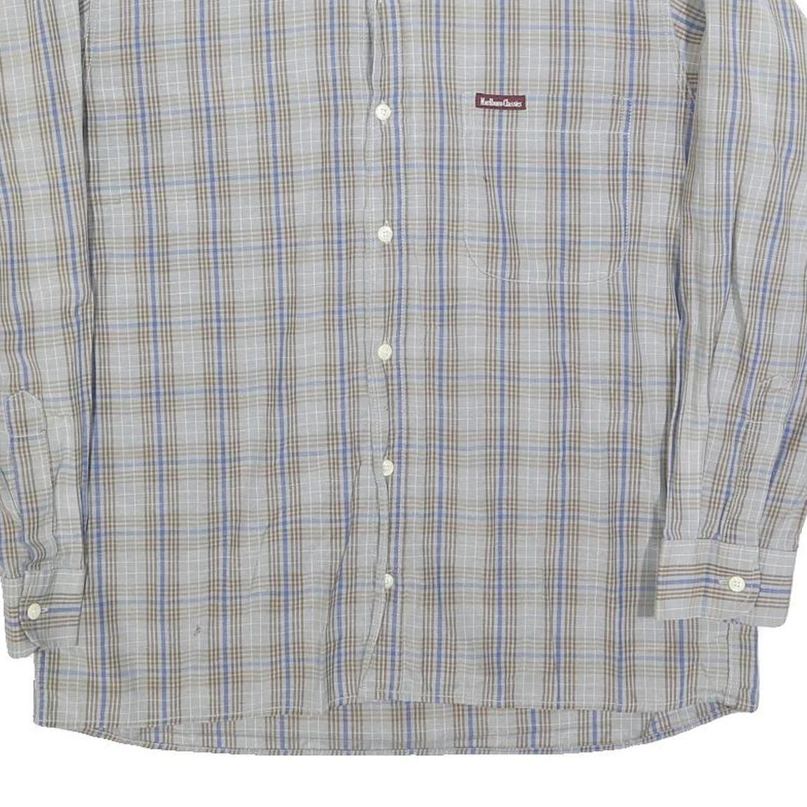 MARLBORO Mens Blue & Brown Check Shirt M Button-Down Collar Long Sleeve Casual