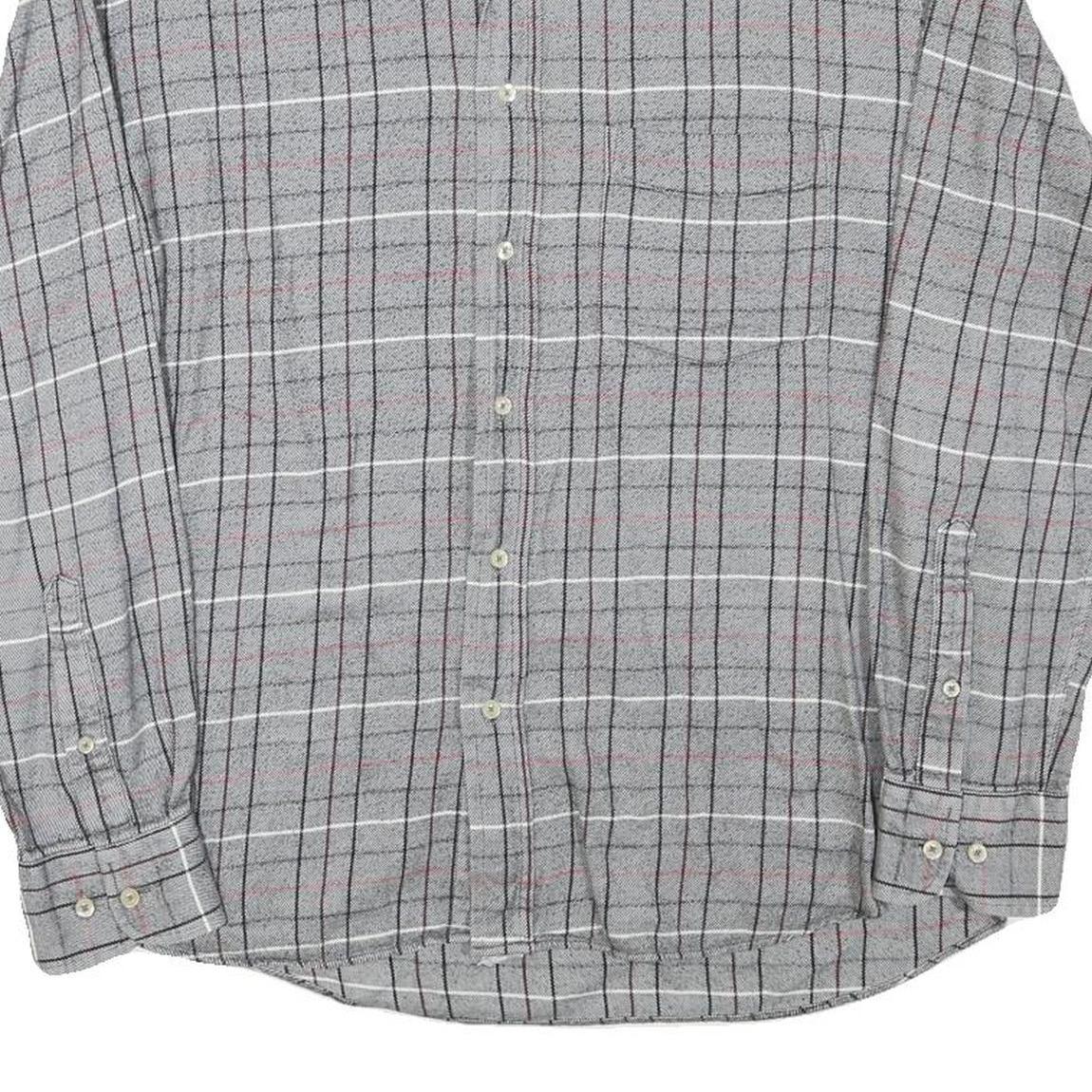 MCNEAL Mens Grey & White Check Shirt L Button-Down Collar Long Sleeve Cotton