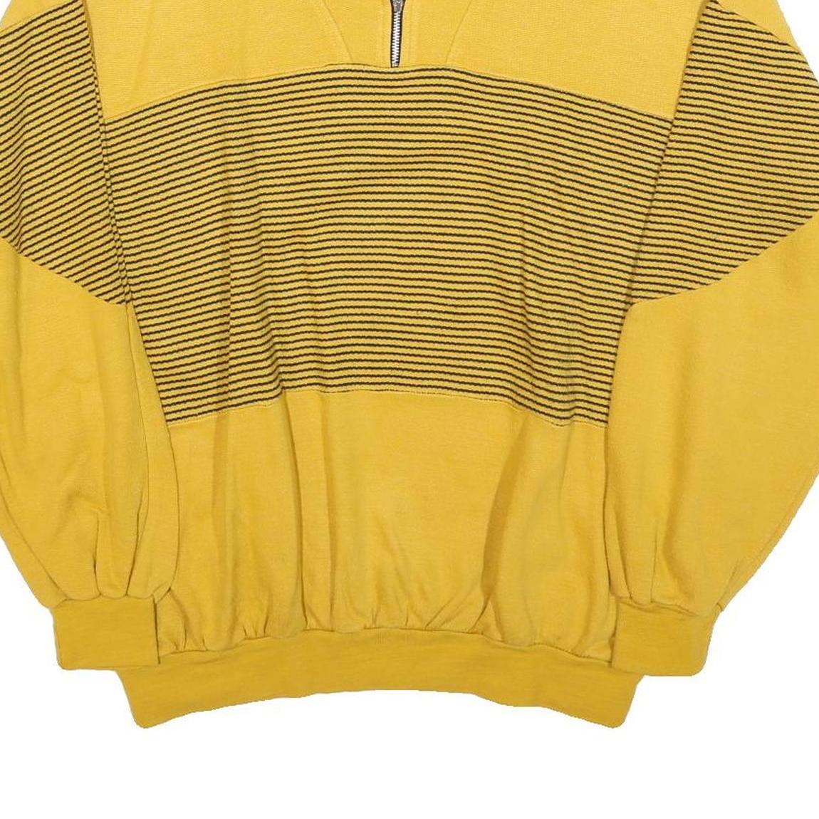 Mens Yellow Patterned Pullover Basic Knit L Half Zip Jumper Cotton Blend