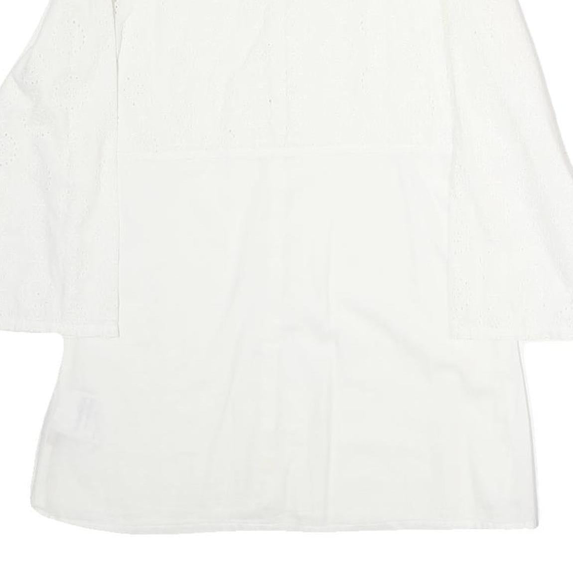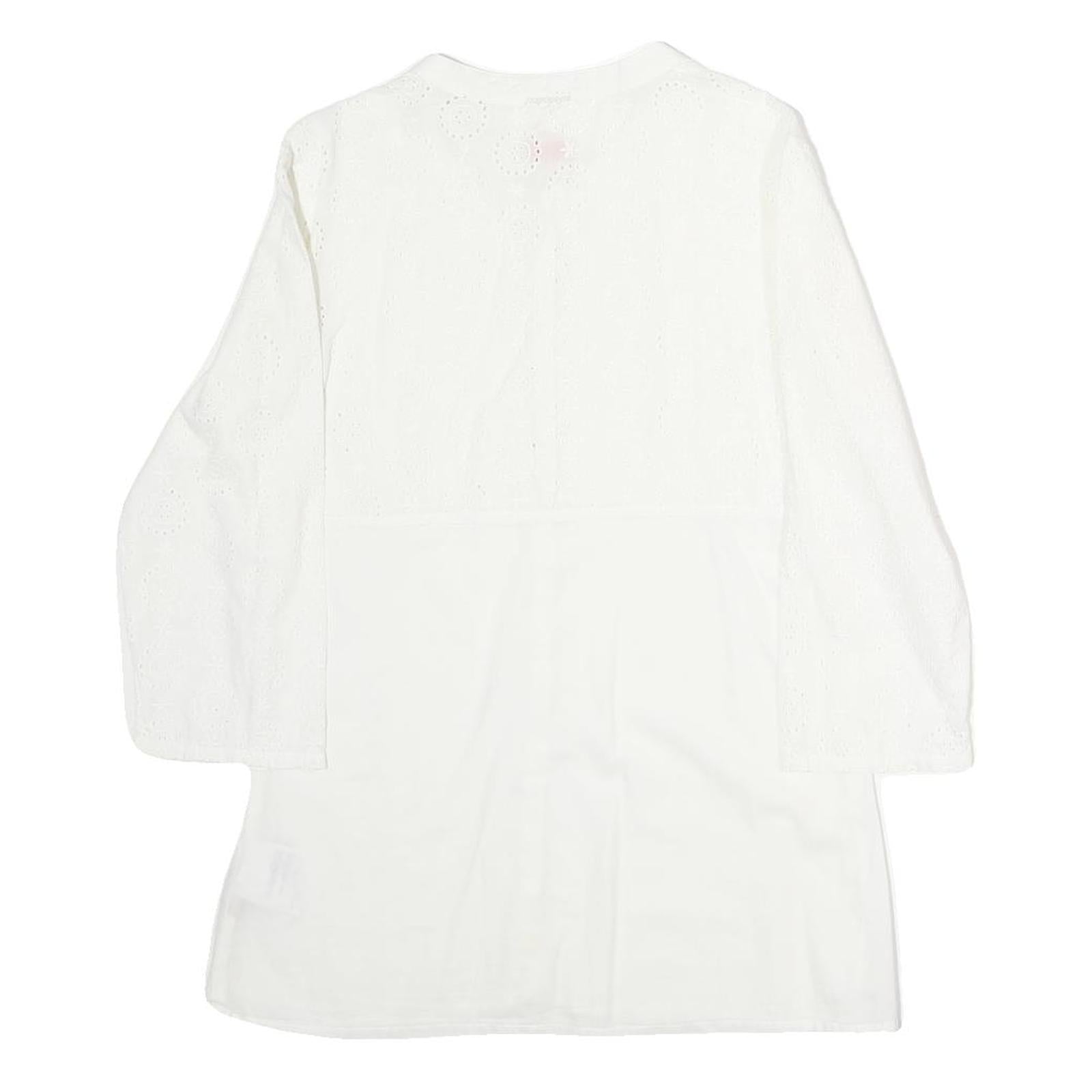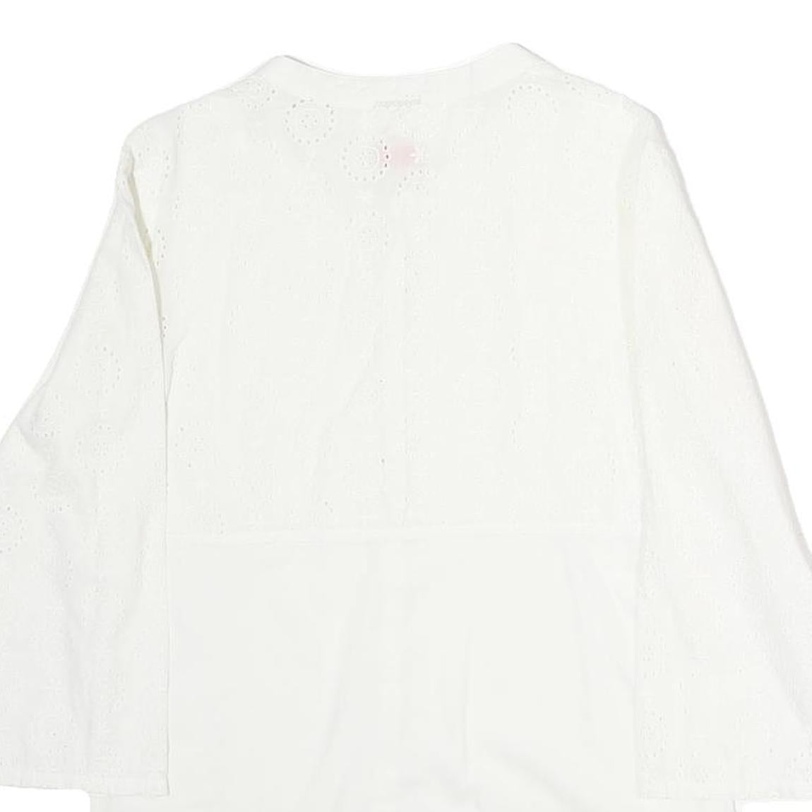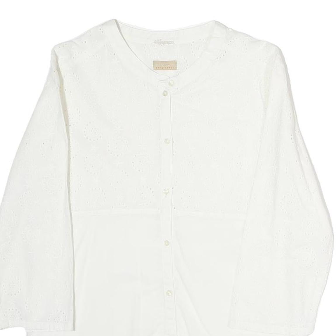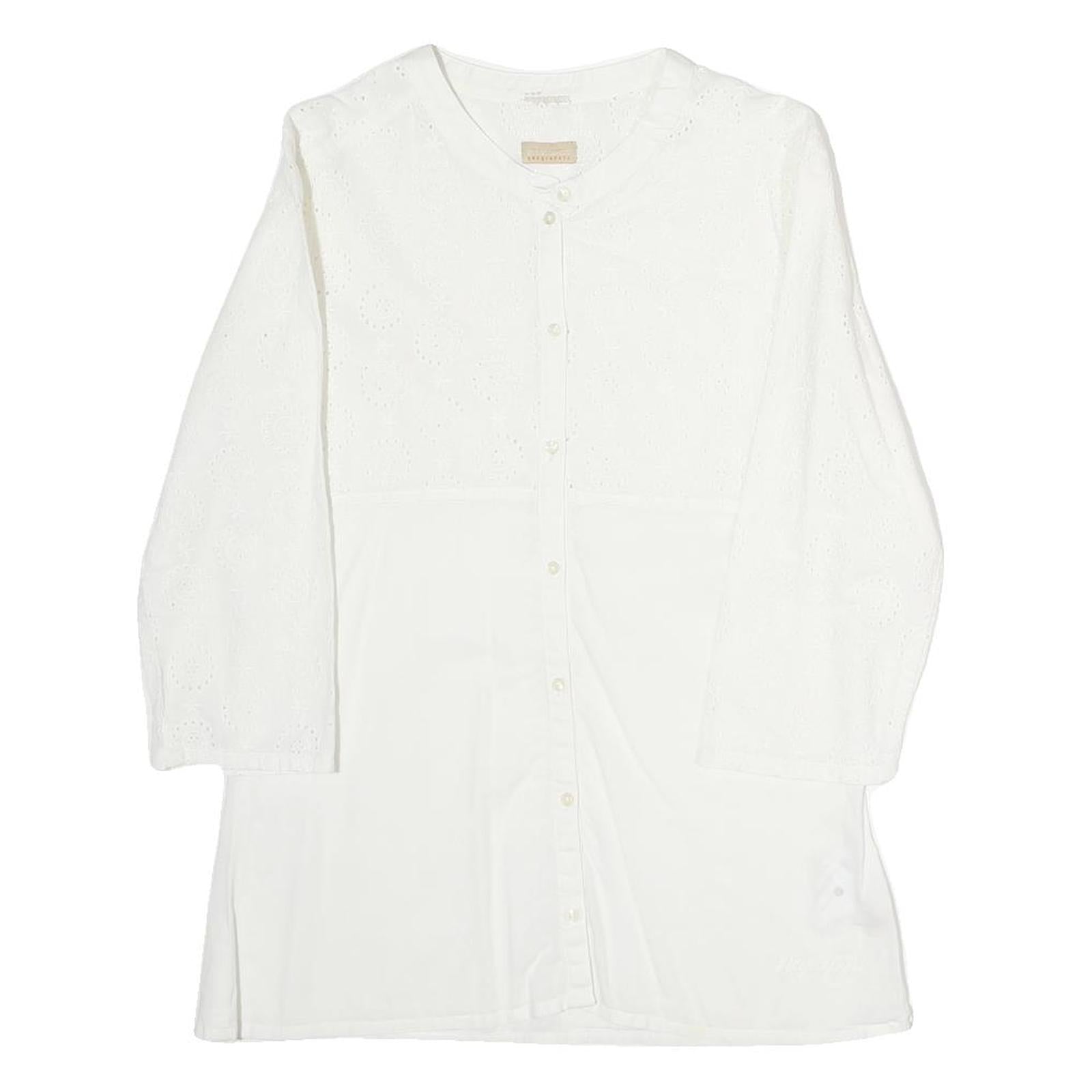 NAPAJIRI Womens White Cotton Blend Printed Top Long Sleeve Button Neck L
