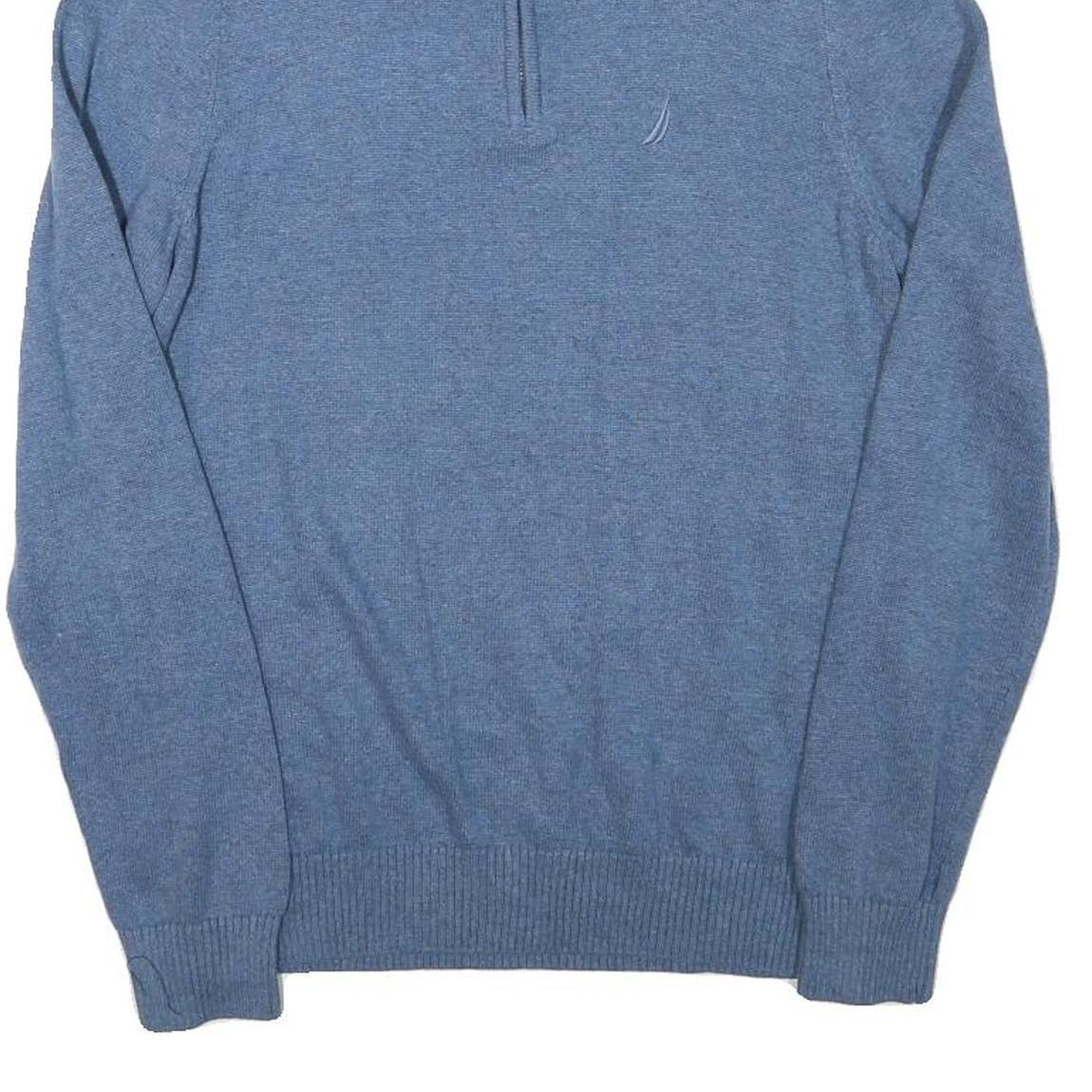 NAUTICA Mens Blue Plain Cotton Blend Pullover Jumper Zip Neck S Lightweight