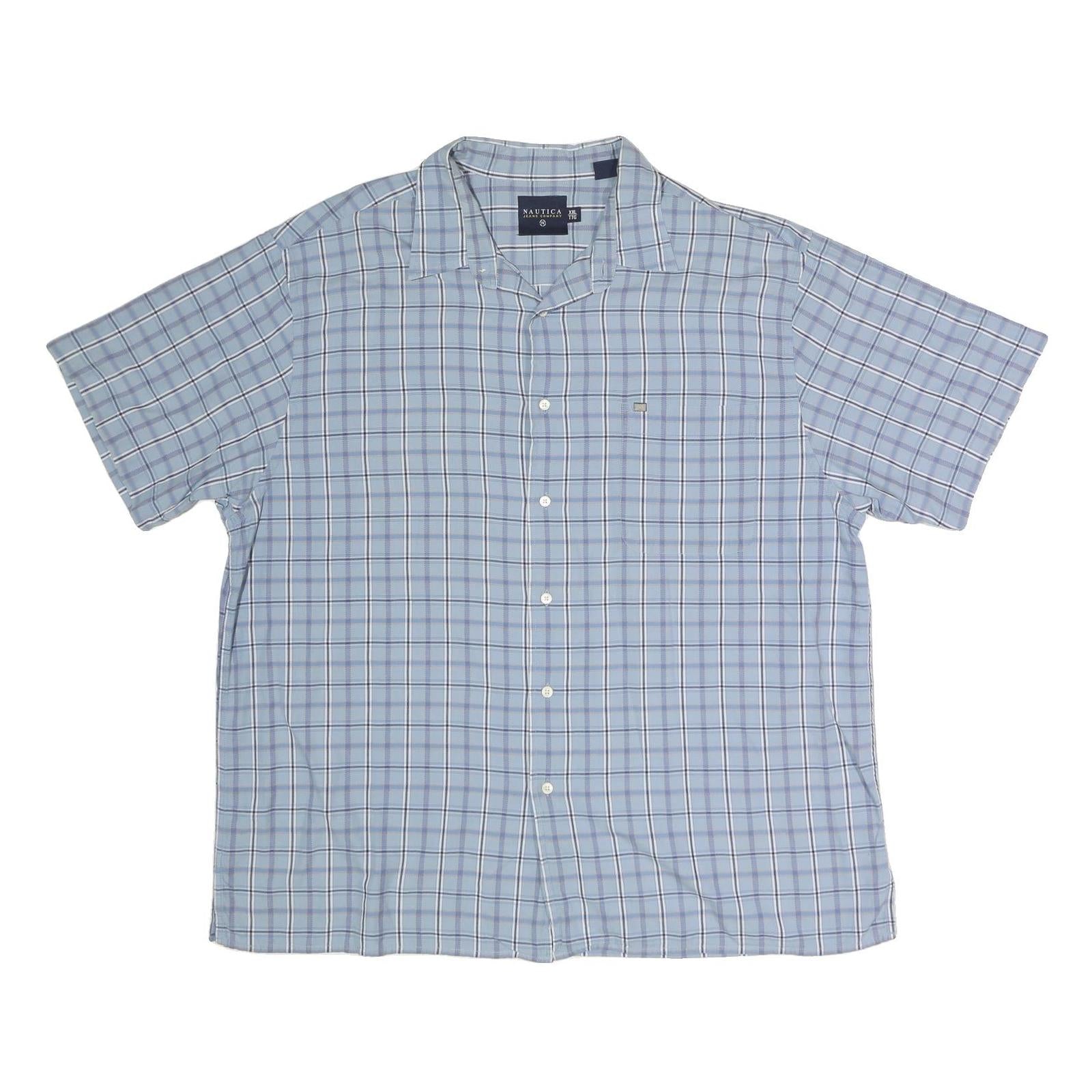 NAUTICA Mens Blue & White Check Short Sleeve Shirt 2XL Cotton Blend Casual