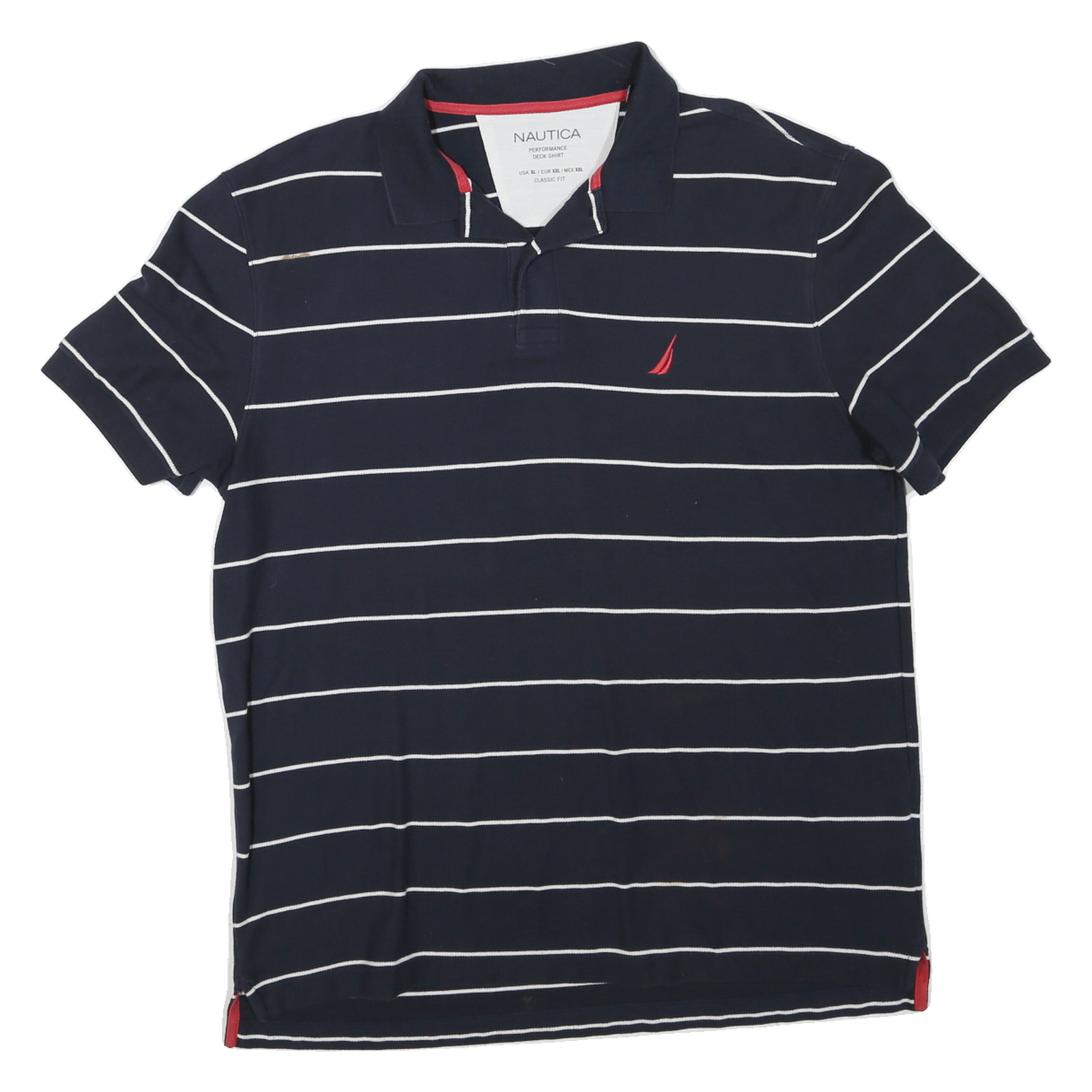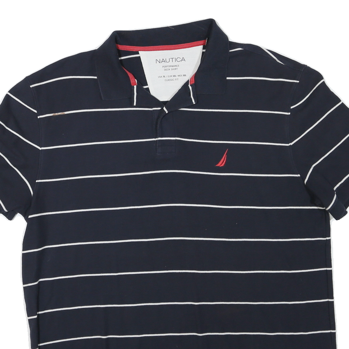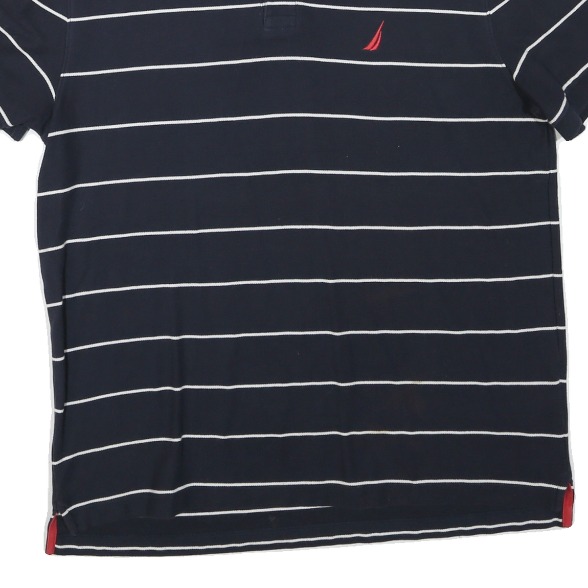 NAUTICA Mens Navy Blue & White Striped Short Sleeve Polo Shirt XL Cotton Blend