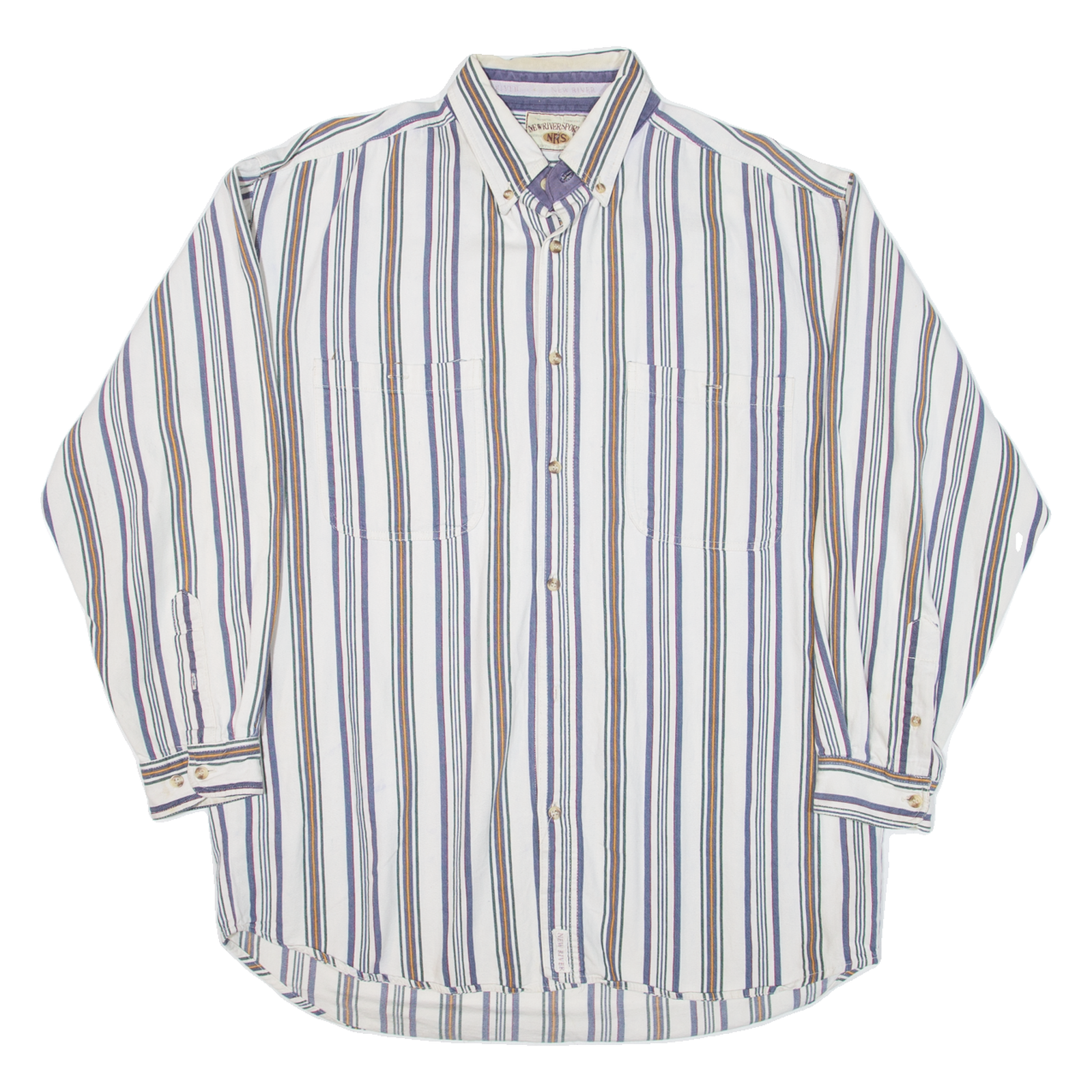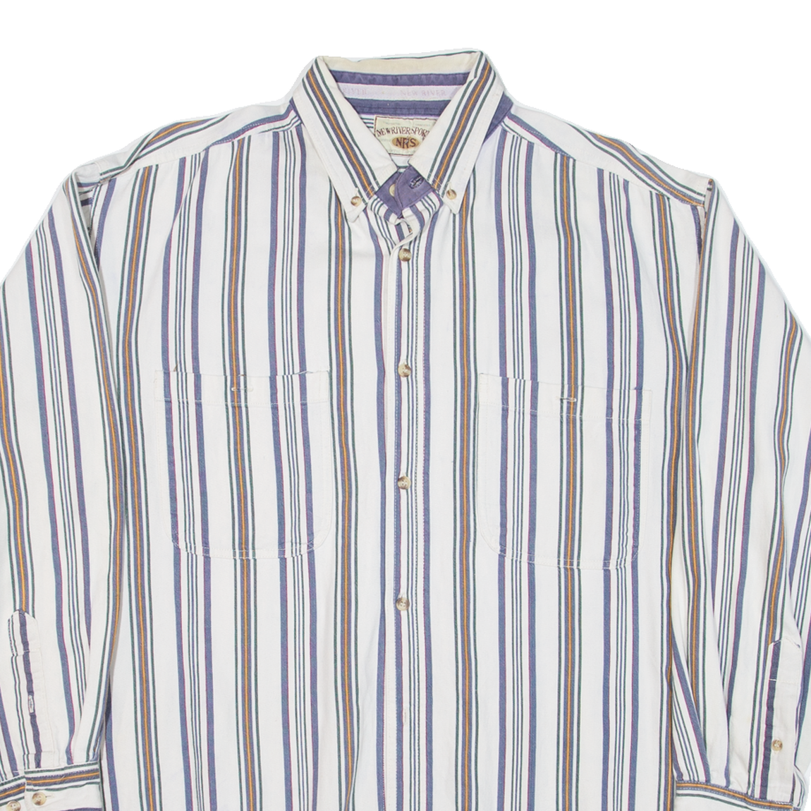 NEW RIVER SPORTS Mens Shirt Blue Striped Long Sleeve L
