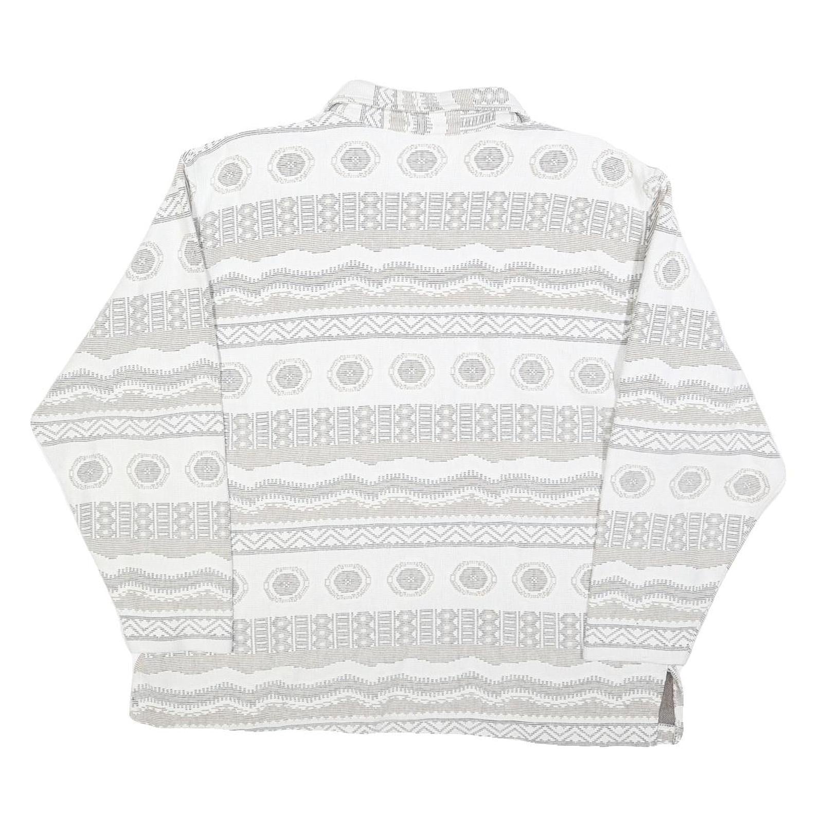 NEWPORT Womens White & Grey Patterned Collared Sweatshirt L Cotton Blend Long