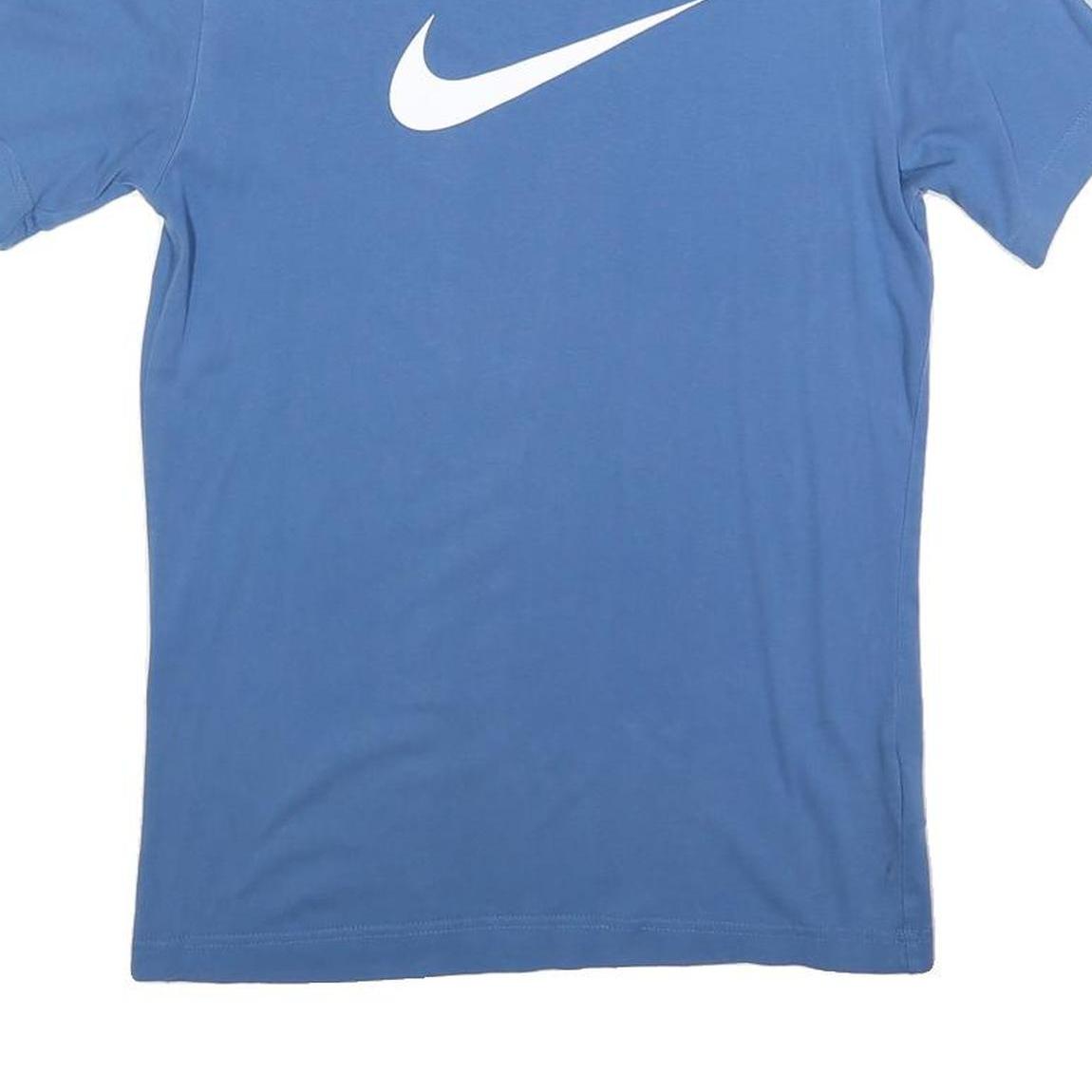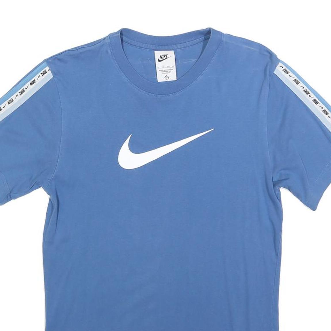 NIKE Mens Blue White Logo Tape Sleeve Graphic T-Shirt XS Crew Neck Short Sleeve