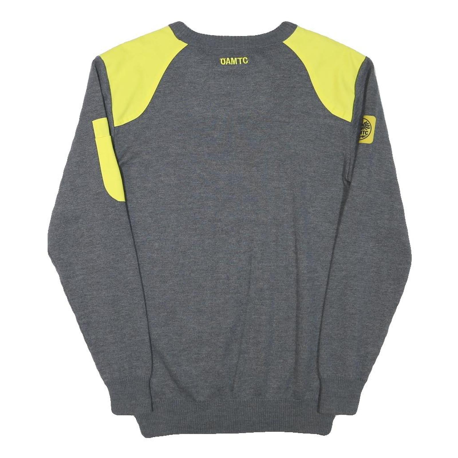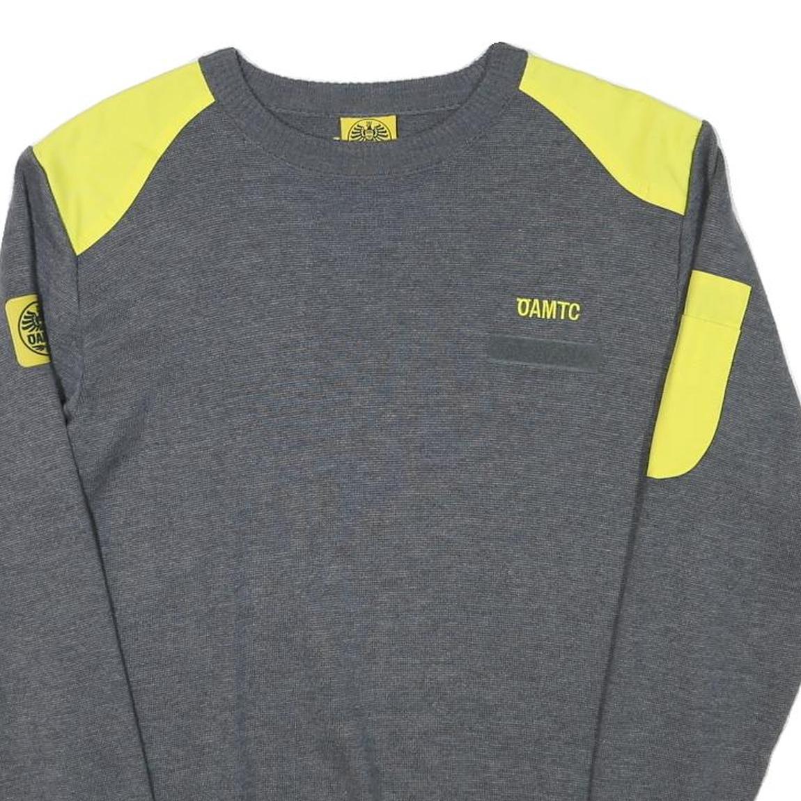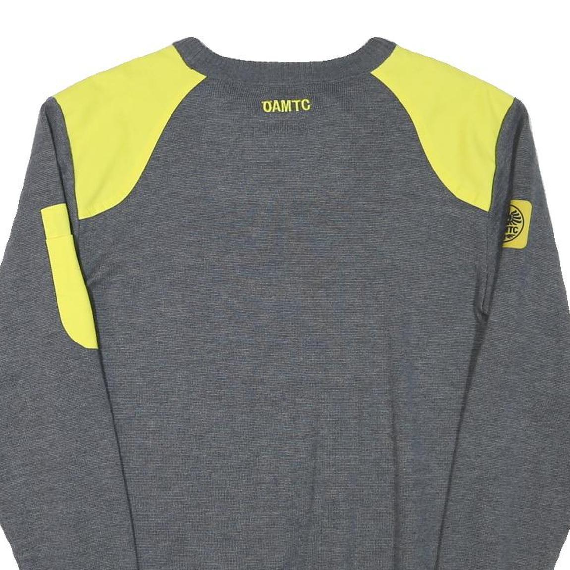 OAMTC Mens Grey & Yellow Plain Jumper Crew Neck Basic Knit M Cotton Blend