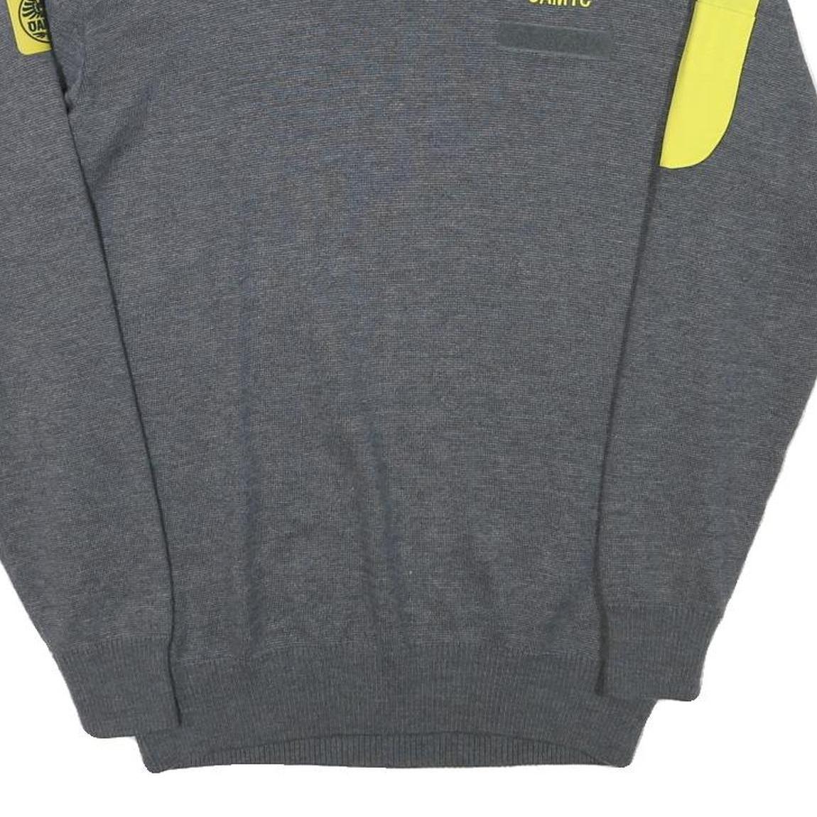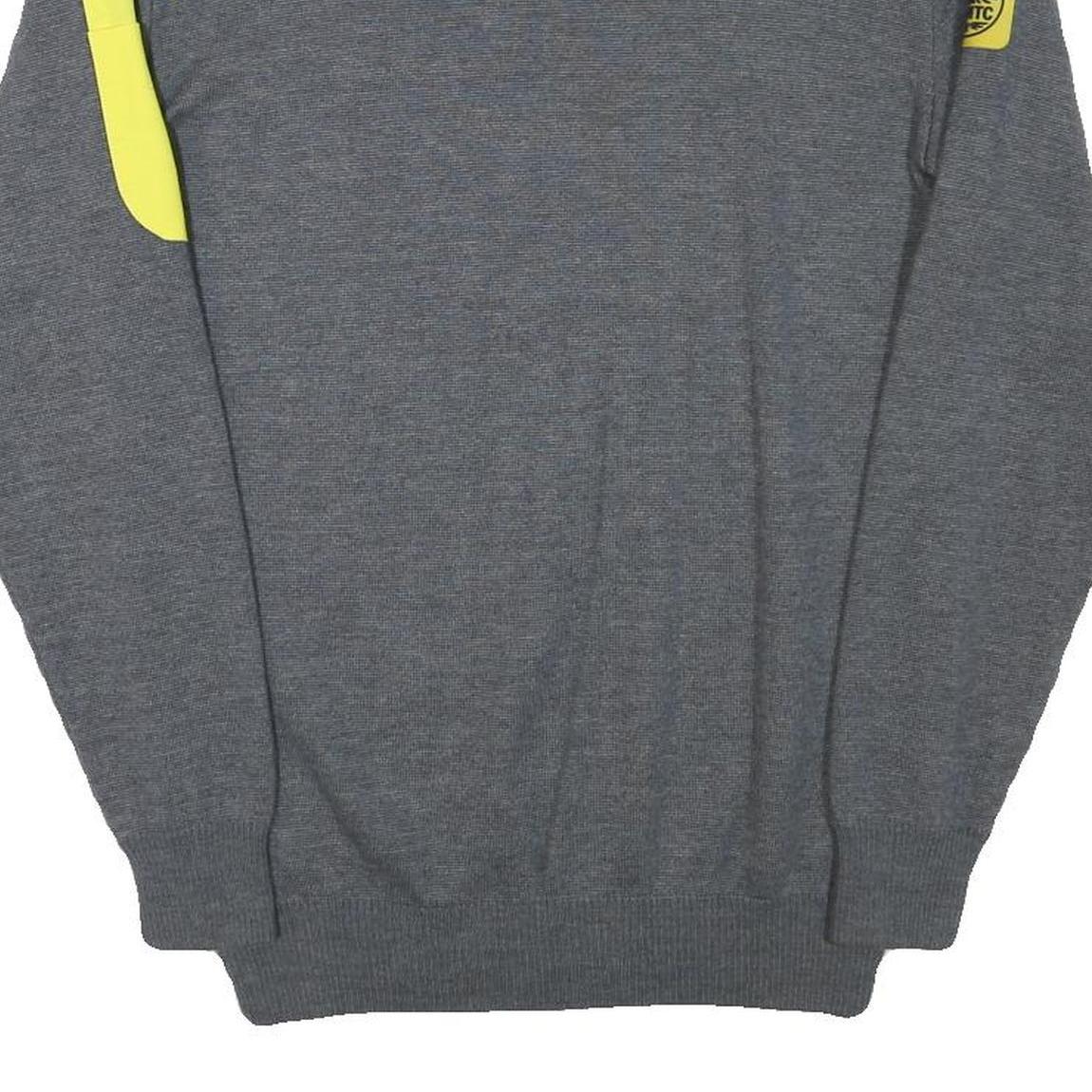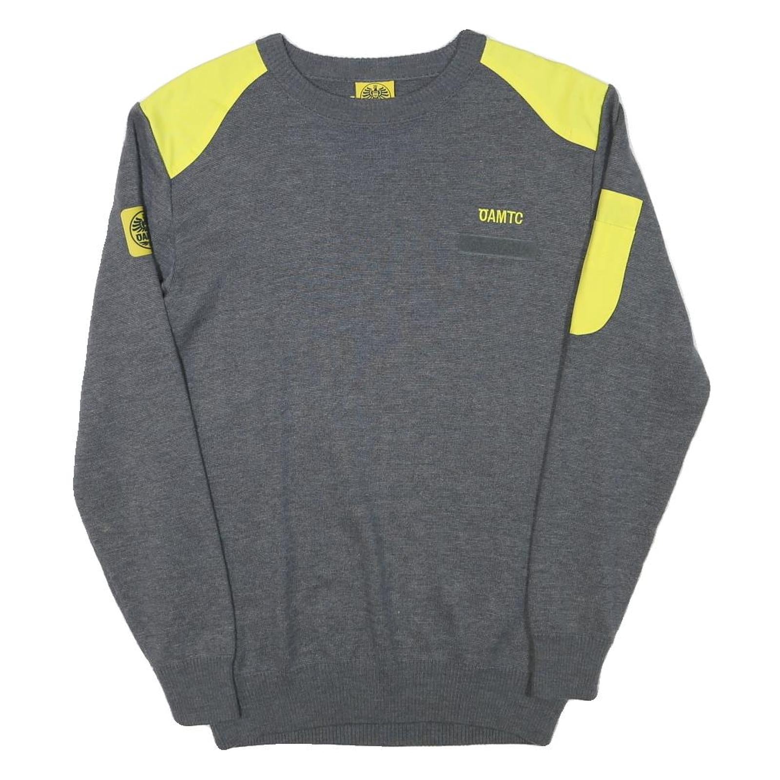 OAMTC Mens Grey & Yellow Plain Jumper Crew Neck Basic Knit M Cotton Blend