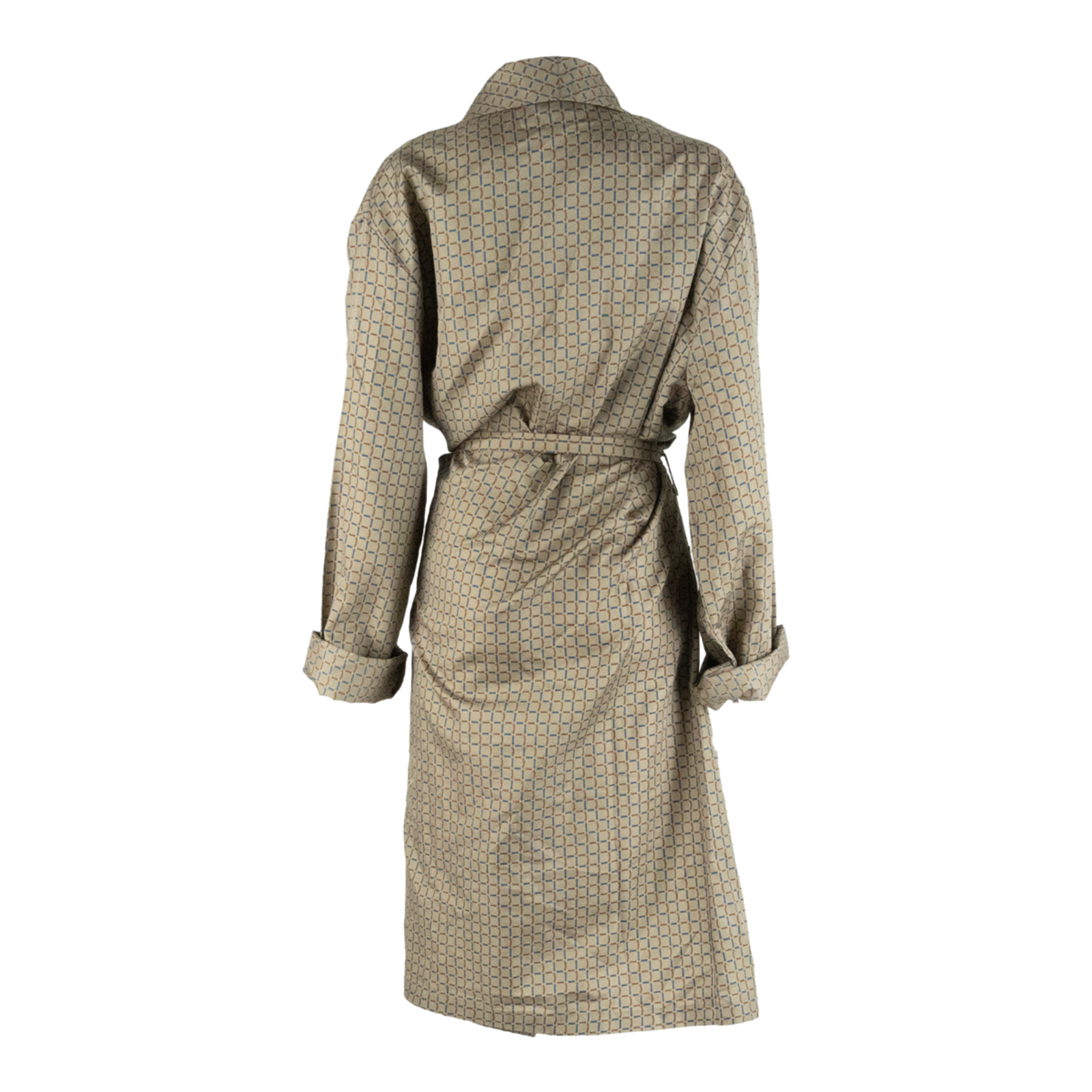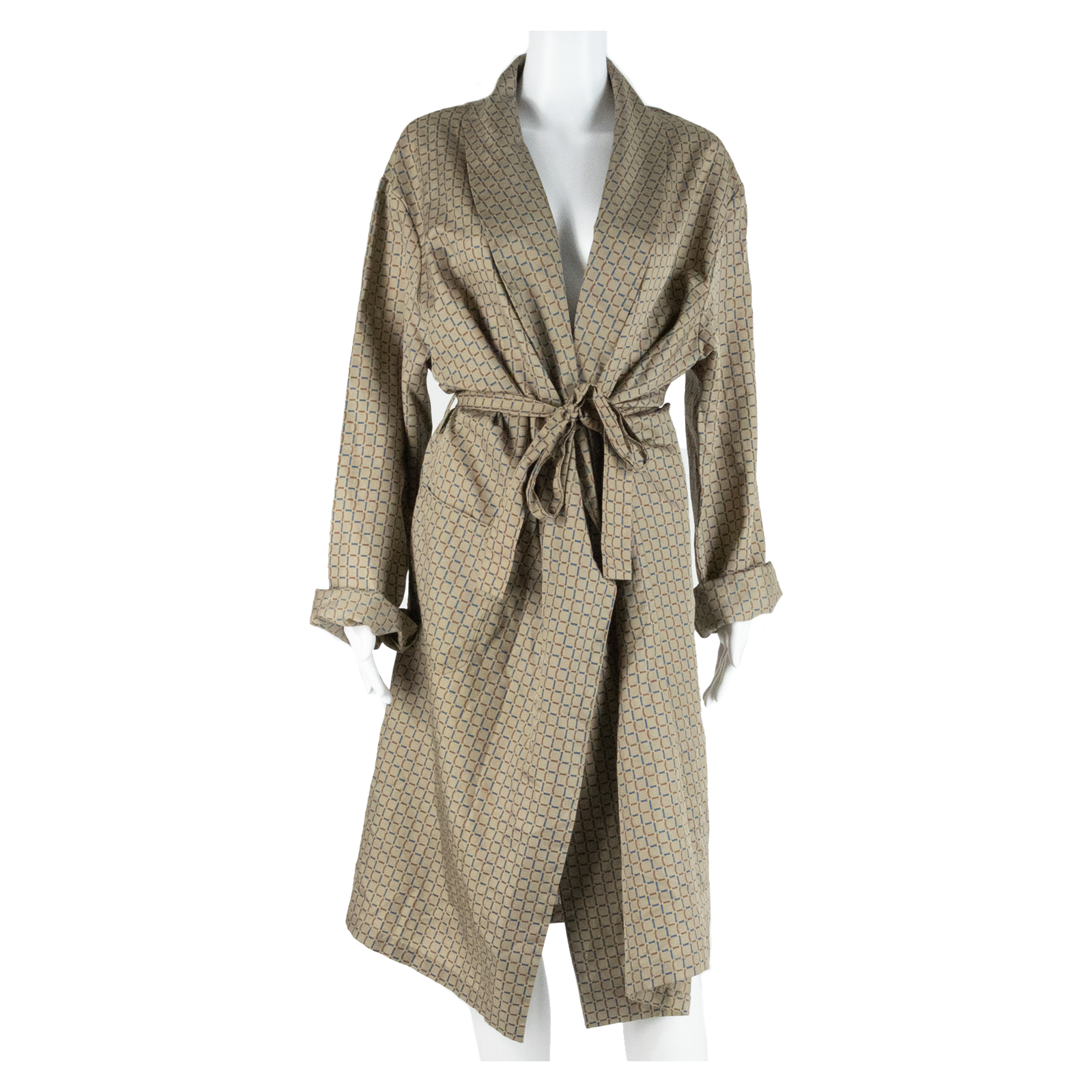Open Belted Womens Day Dress Brown Geometric Long Sleeve Long L