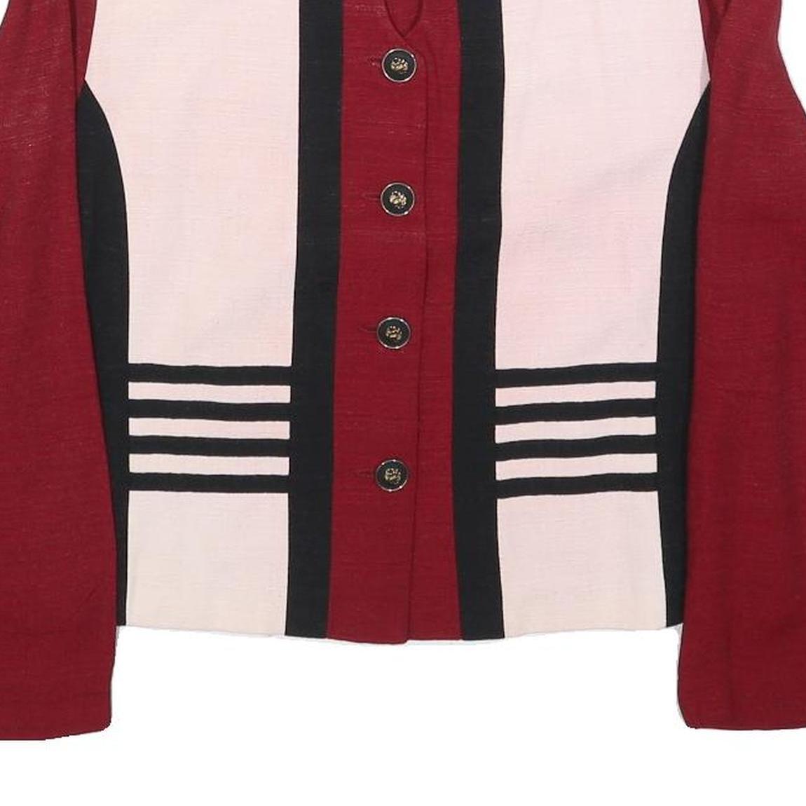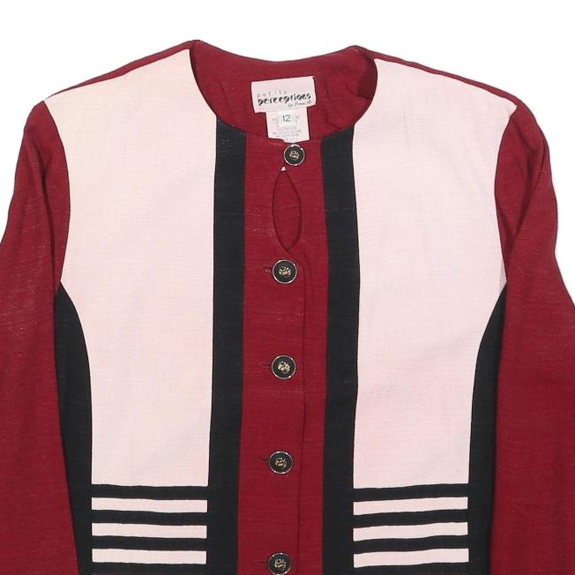 PERCEPTIONS Womens Red & Cream Striped Button Jacket M Acetate Classic Stylish